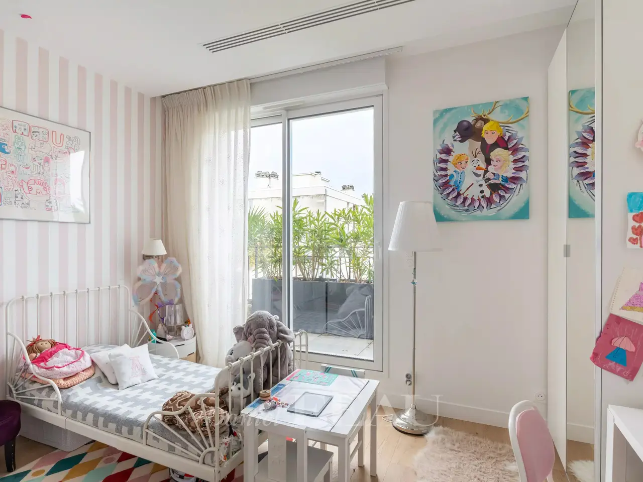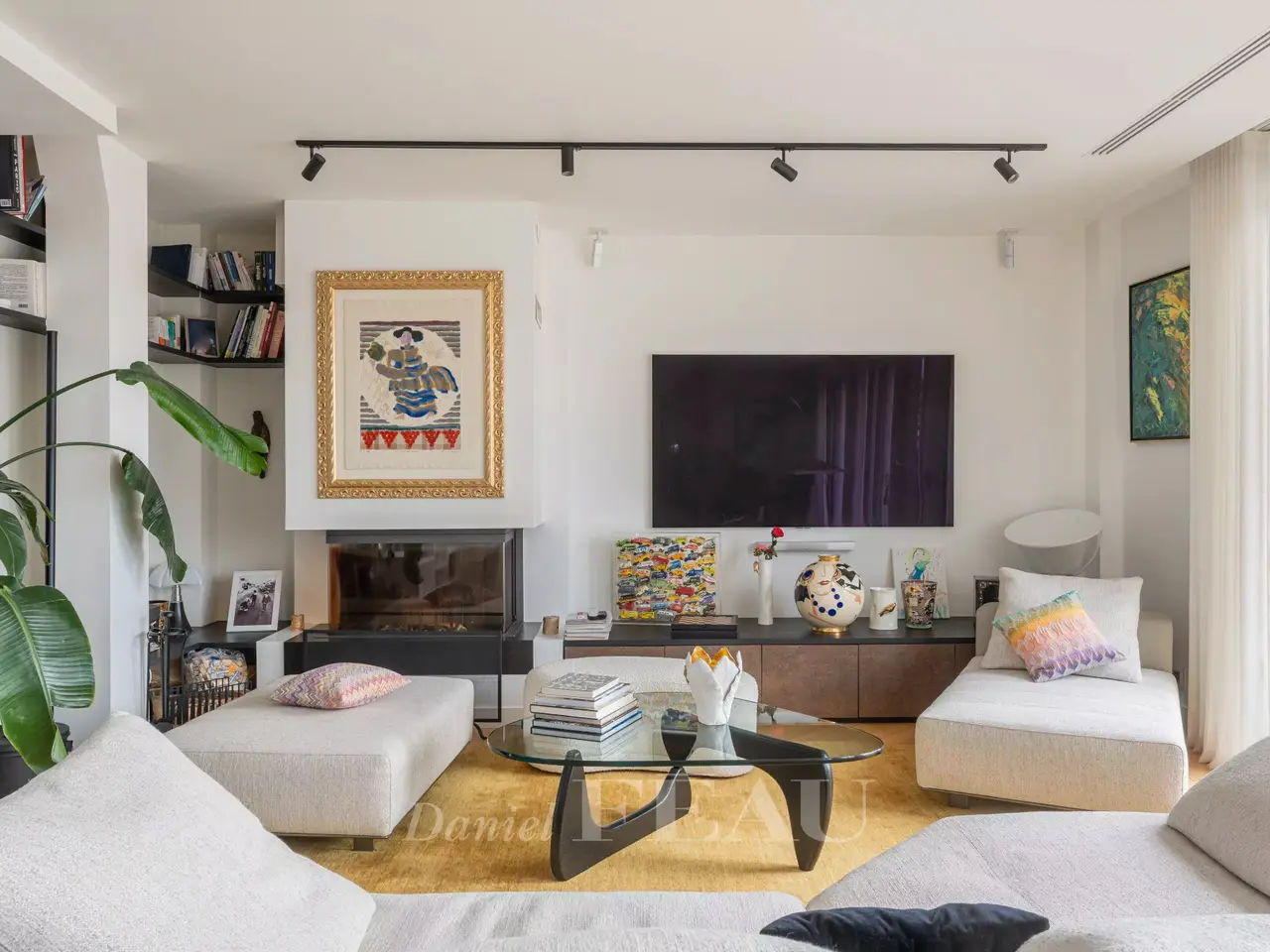 Saussaye neighbourhood. This superb split-level apartment is on the 4th and 5th floors of a revamped private mansion located in a peaceful and secure private street. It includes a double living/reception room with a fireplace opening onto a wide balcony, a separate kitchen, a bedroom with a shower room, a guest wc and a utility room. The lower floor comprises a master suite with a bathroom, a wc and dressing rooms, three further bedrooms, a bathroom, a shower room and a separate wc. The apartment also benefits from a roof terrace. With a cellar, a basement parking space and a second outdoor parking space.