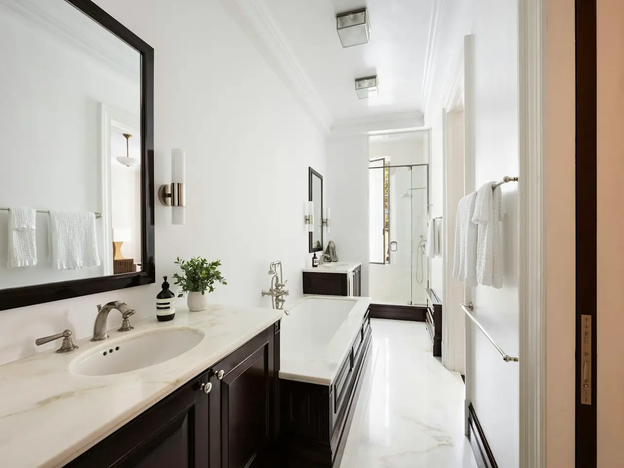 Exceptional Historic Townhouse in Treadwell Farm Impeccably maintained and move-in ready, this four-story single-family townhouse in pristine condition, features nearly 5,000 square feet of elegant living space (including cellar) and a stunning south-facing garden. This remarkable 1870 residence sits on the coveted south side of East 62nd Street, a tranquil tree-lined block within the distinguished Treadwell Farm Historic District. This home showcases the perfect marriage of historic charm and modern luxury, having been thoughtfully updated while preserving its architectural integrity. Garden Level The garden level welcomes you through both formal and service entrances. The formal dining room features floor-to-ceiling windows and elegant French doors that open directly to the professionally landscaped garden, originally designed by renowned landscape artist Edwina Von Gal. The spacious chef's kitchen boasts premium appliances including Sub-Zero refrigeration, Miele dishwasher, and a sophisticated reverse-osmosis water filtration system. Custom cabinetry extends into the butler's pantry, where a private elevator provides access to all floors for maximum convenience. Parlor Floor The parlor floor showcases gracious entertaining spaces with over 11-foot ceilings. The light-filled living room overlooks the serene garden, while an intimate mahogany-paneled library provides a quiet retreat facing the tree-lined street. Enhanced with five zone-zone climate control, every detail has been considered for effortless and modern living. Third Floor - Primary Suite The primary bedroom is a sanctuary of natural light, featuring three large south-facing windows and a striking 19th-century working fireplace. The luxurious en-suite includes a spacious dressing room with custom built-ins, leading to a marble-appointed bathroom with double vanities, soaking tub, and oversized dual-head shower. A versatile north-facing room, currently utilized as an office, completes this private floor. Fourth Floor Two additional bedrooms occupy the top floor, including a sun-drenched room with charming Juliet balcony overlooking the garden. The front bedroom features a marble fireplace, walk-in closet, and private en-suite bathroom. Cellar & Mechanicals The approximately 930-square-foot cellar provides abundant storage, powder room, and laundry facilities. Naturally lit through front window, the space is dry and meticulously maintained. All mechanical systems are in excellent condition. Notable Features - Four exquisite wood-burning fireplaces with variable fan inducers - Five-zone air conditioning - Comprehensive humidification system for art preservation - Private elevator servicing all floors - Air rights available for fifth-floor expansion This is a rare opportunity to own a timeless townhouse in one of Manhattan's most cherished historic districts. A truly exceptional home of character, comfort, and pedigree.
