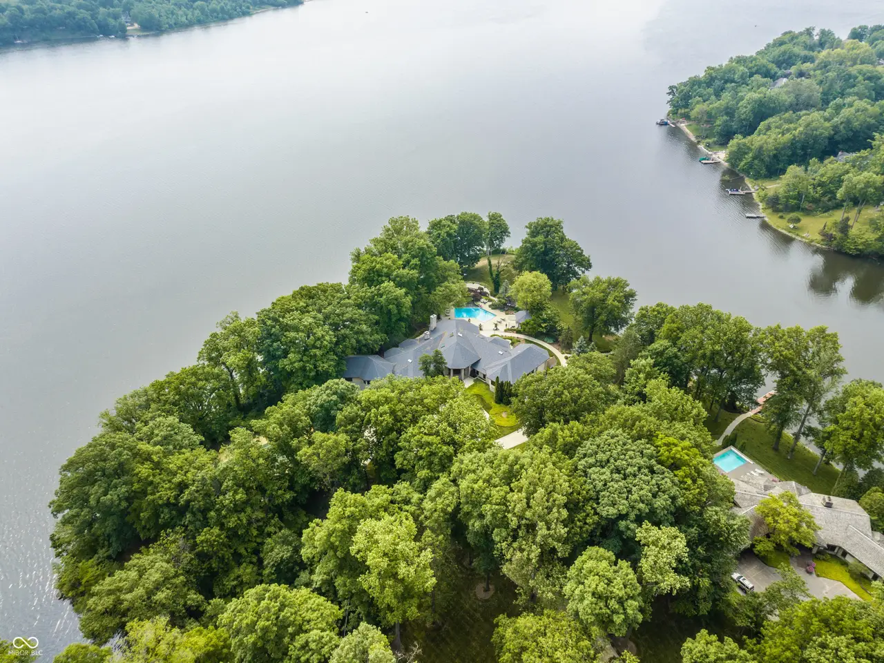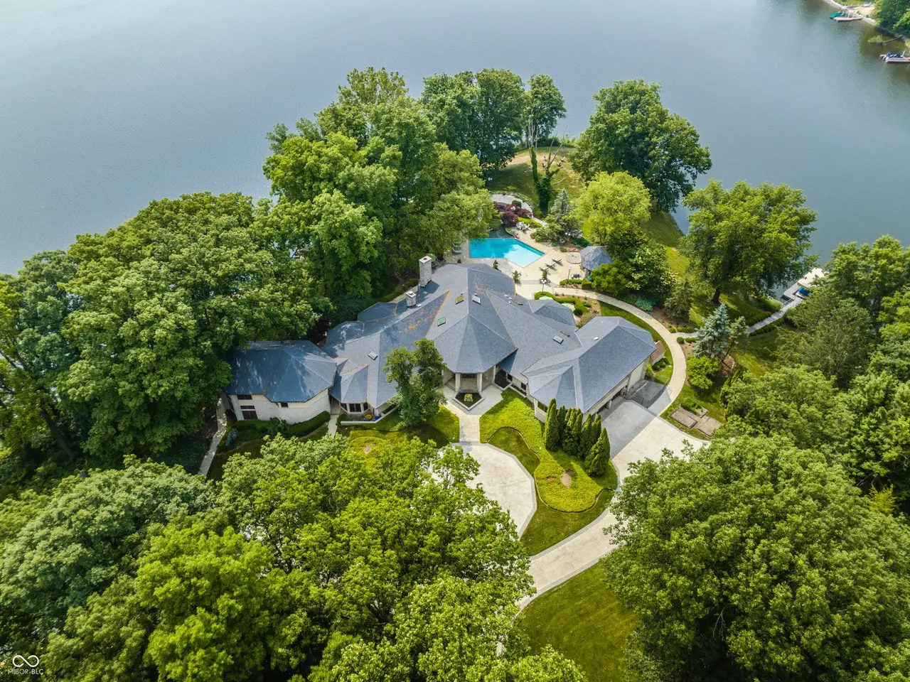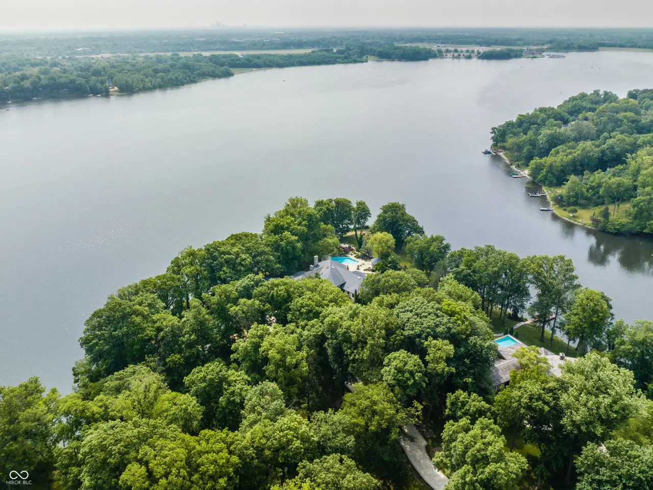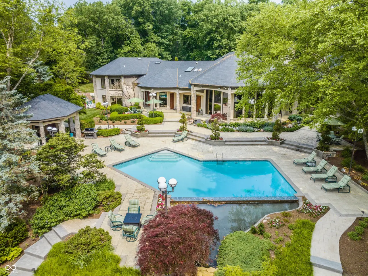 Exclusivity at its finest, this gated estate expands over 5.5 acres and is perfectly situated to capture breathtaking, panoramic views with 1,250 feet of water frontage on Eagle Creek Reservoir. The lush oasis creates the feeling of a serene, private sanctuary featuring a koi pond that spans the back of the home, Gunite swimming pool & spa w/cabana & tennis court w/cabana. A spacious great room welcomes guests w/expansive bay windows that brighten the room, which also features a vaulted ceiling w/exposed wooden beams, built-in aquarium, fireplace & adjoining bar area with access to the backyard retreat. Cozy den embellished with wood-paneled walls, built-ins & marble fireplace. Gourmet kitchen boats upscale appliances and a sun-washed breakfast area.