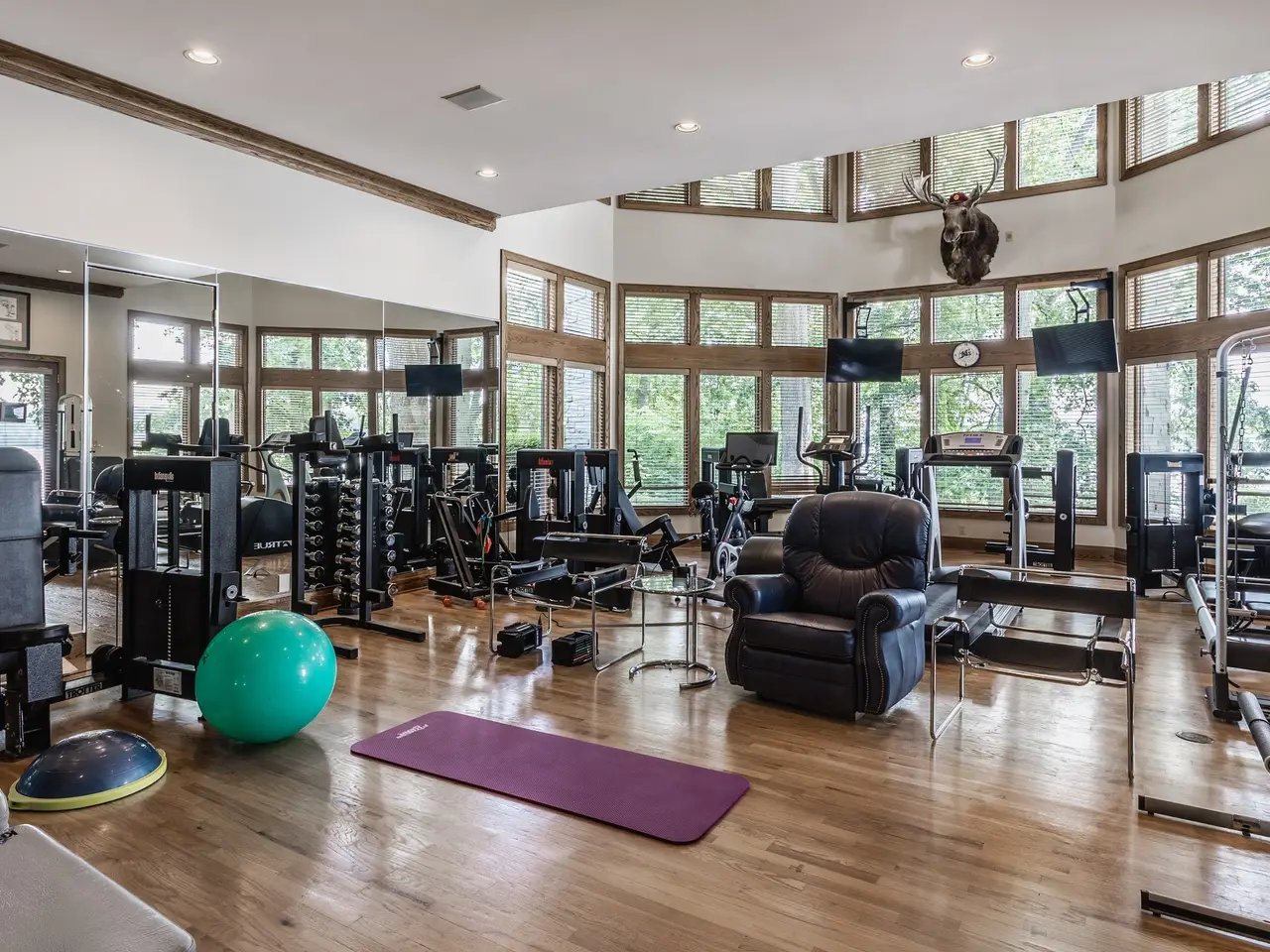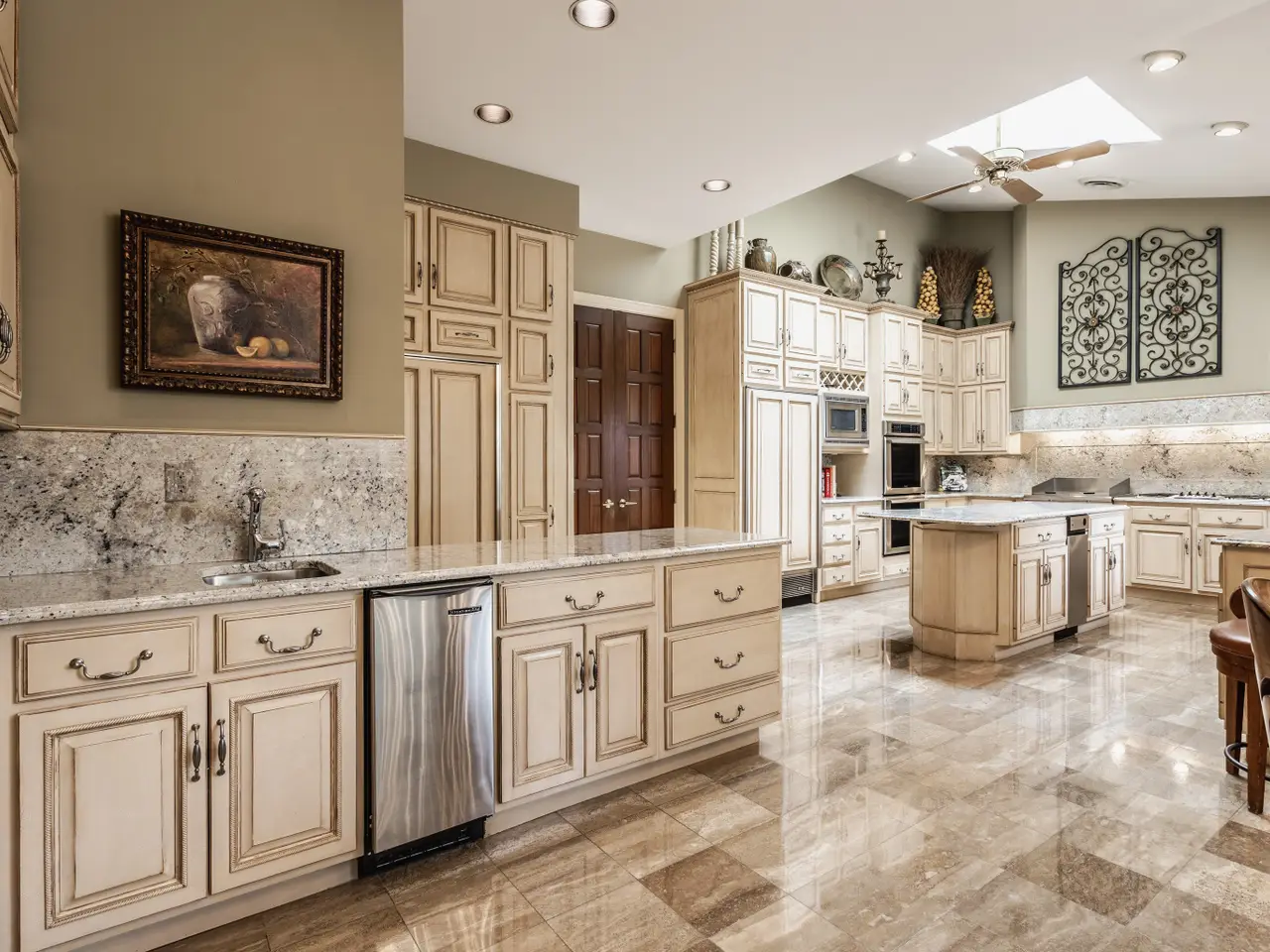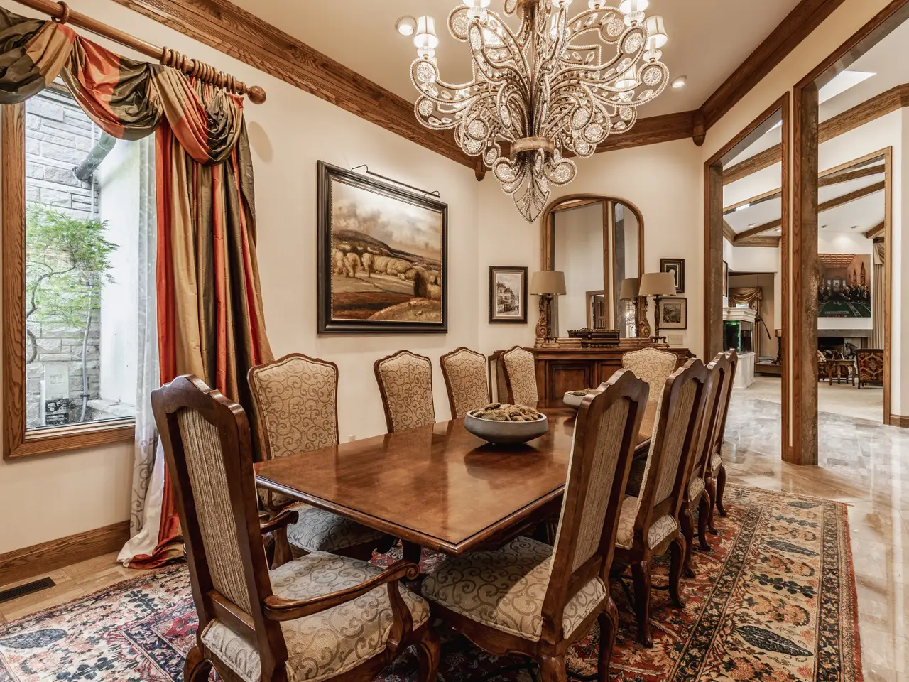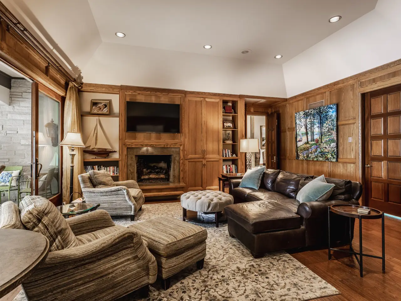 Exclusivity at its finest, this gated estate expands over 5.5 acres and is perfectly situated to capture breathtaking, panoramic views with 1,250 feet of water frontage on Eagle Creek Reservoir. The lush oasis creates the feeling of a serene, private sanctuary featuring a koi pond that spans the back of the home, Gunite swimming pool & spa w/cabana & tennis court w/cabana. A spacious great room welcomes guests w/expansive bay windows that brighten the room, which also features a vaulted ceiling w/exposed wooden beams, built-in aquarium, fireplace & adjoining bar area with access to the backyard retreat. Cozy den embellished with wood-paneled walls, built-ins & marble fireplace. Gourmet kitchen boats upscale appliances and a sun-washed breakfast area.