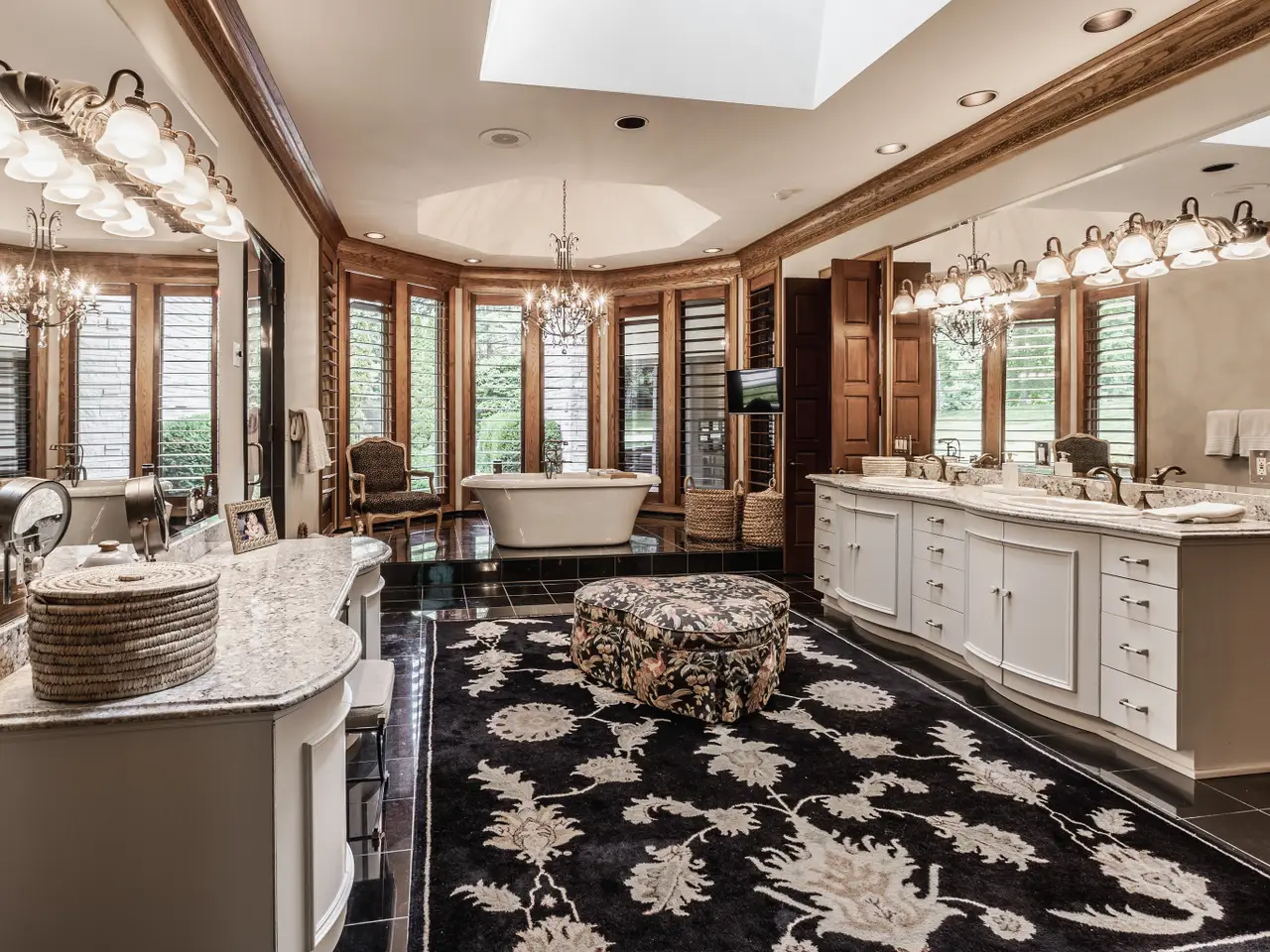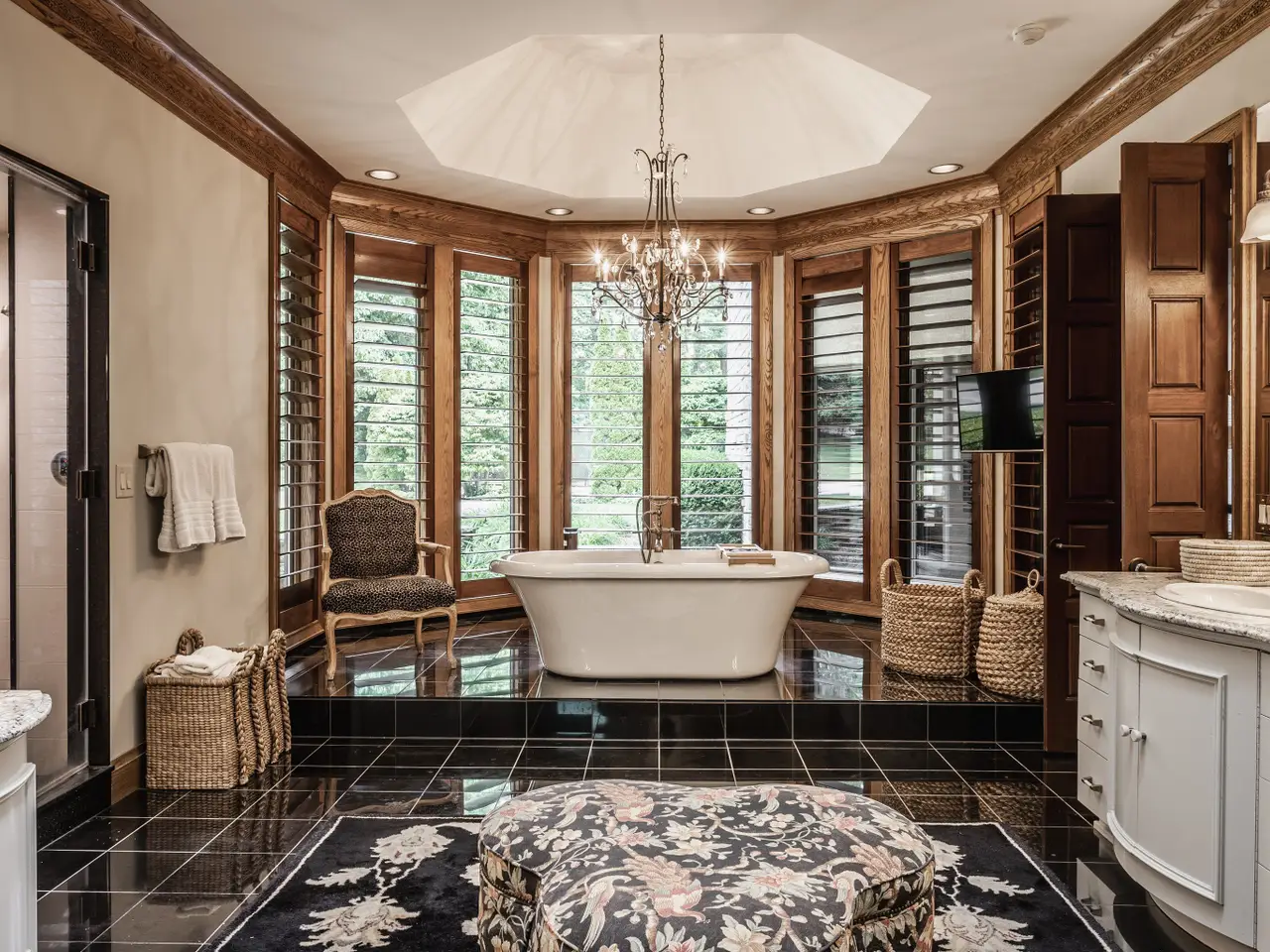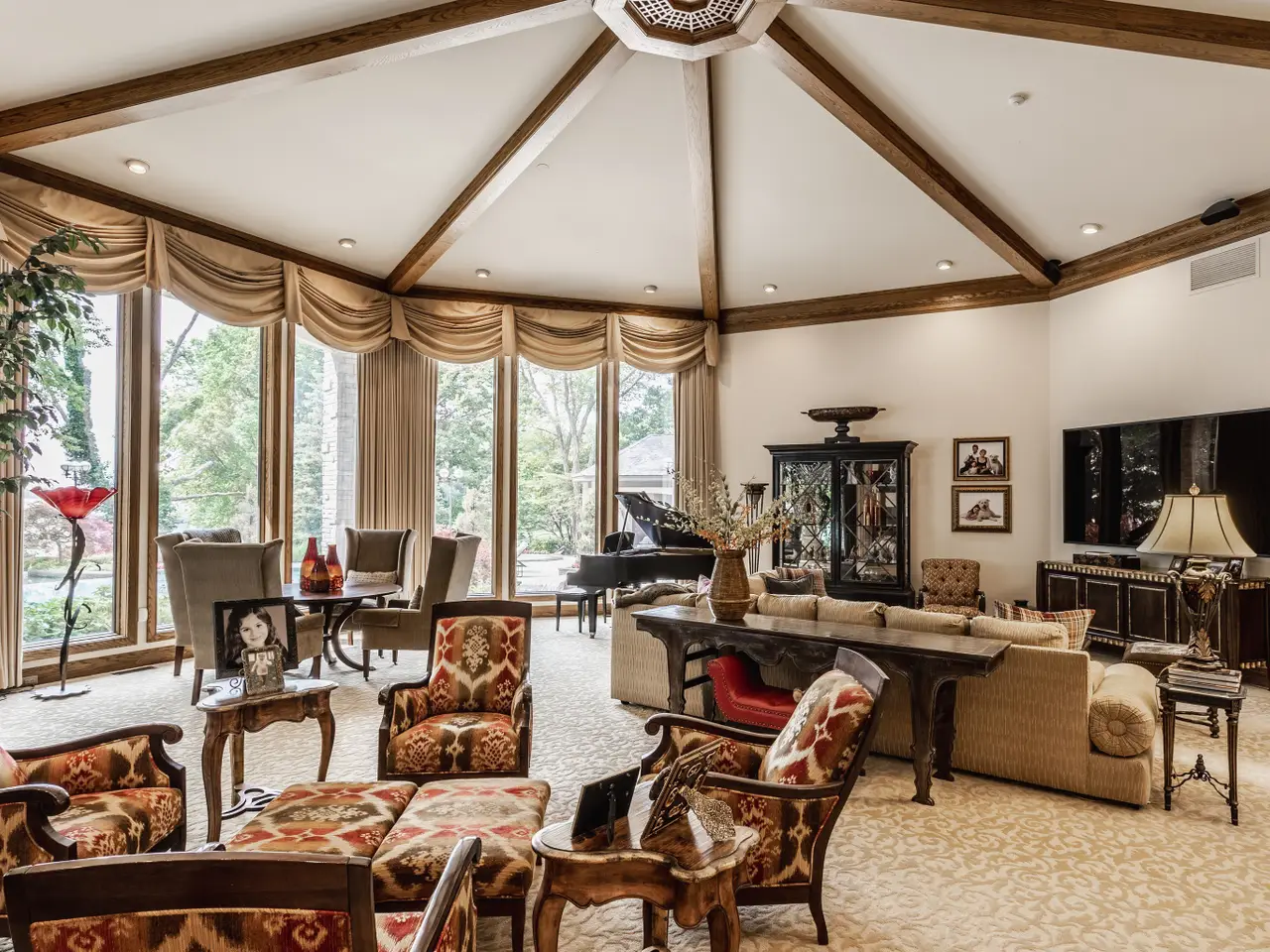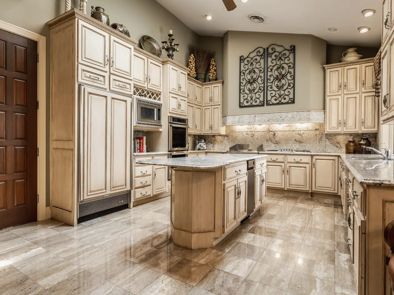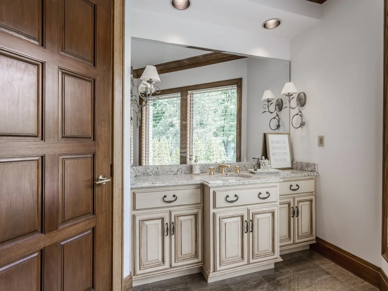 Exclusivity at its finest, this gated estate expands over 5.5 acres and is perfectly situated to capture breathtaking, panoramic views with 1,250 feet of water frontage on Eagle Creek Reservoir. The lush oasis creates the feeling of a serene, private sanctuary featuring a koi pond that spans the back of the home, Gunite swimming pool & spa w/cabana & tennis court w/cabana. A spacious great room welcomes guests w/expansive bay windows that brighten the room, which also features a vaulted ceiling w/exposed wooden beams, built-in aquarium, fireplace & adjoining bar area with access to the backyard retreat. Cozy den embellished with wood-paneled walls, built-ins & marble fireplace. Gourmet kitchen boats upscale appliances and a sun-washed breakfast area.