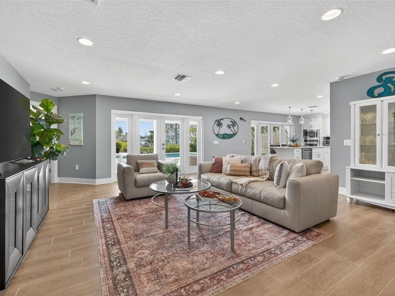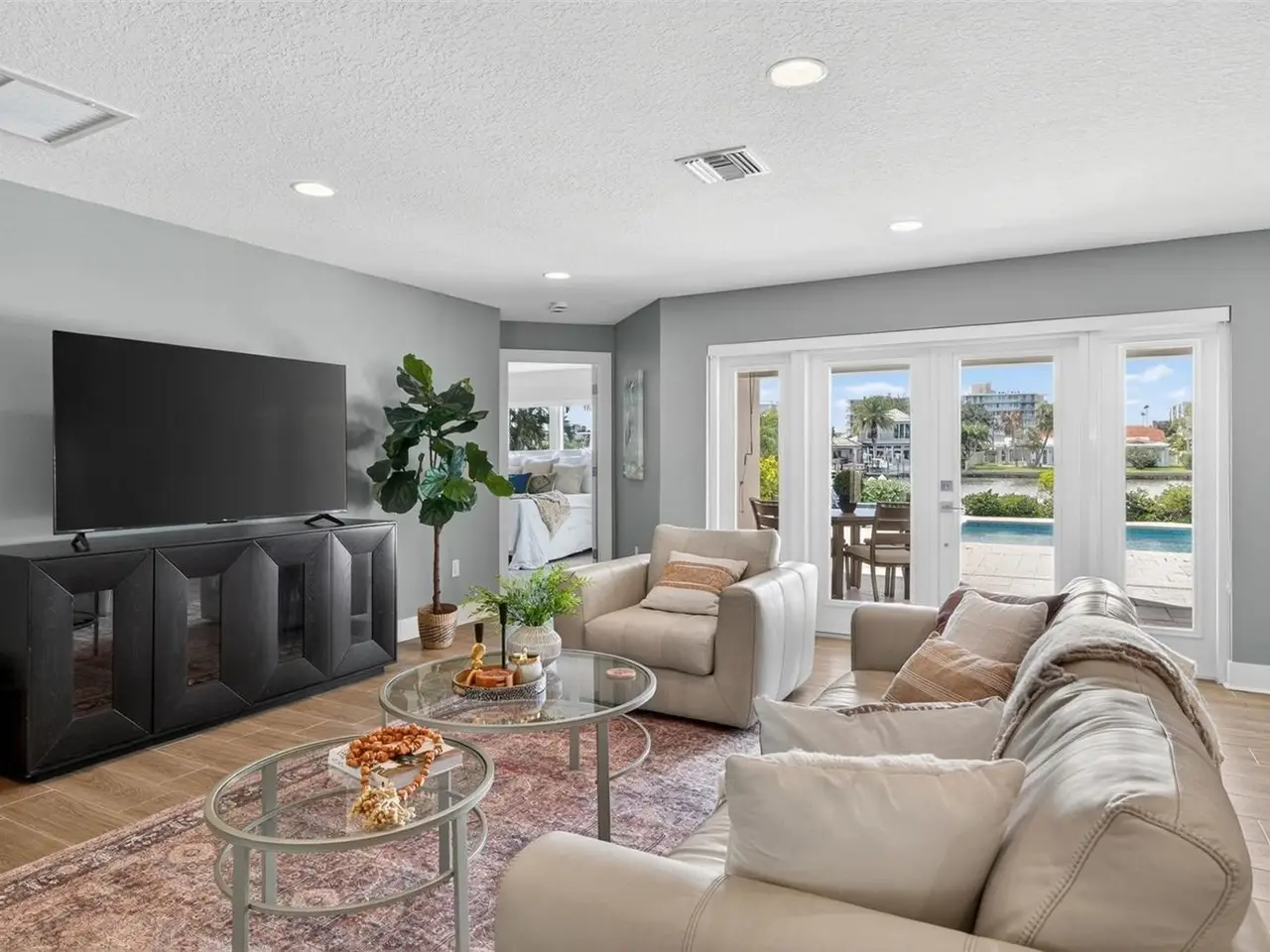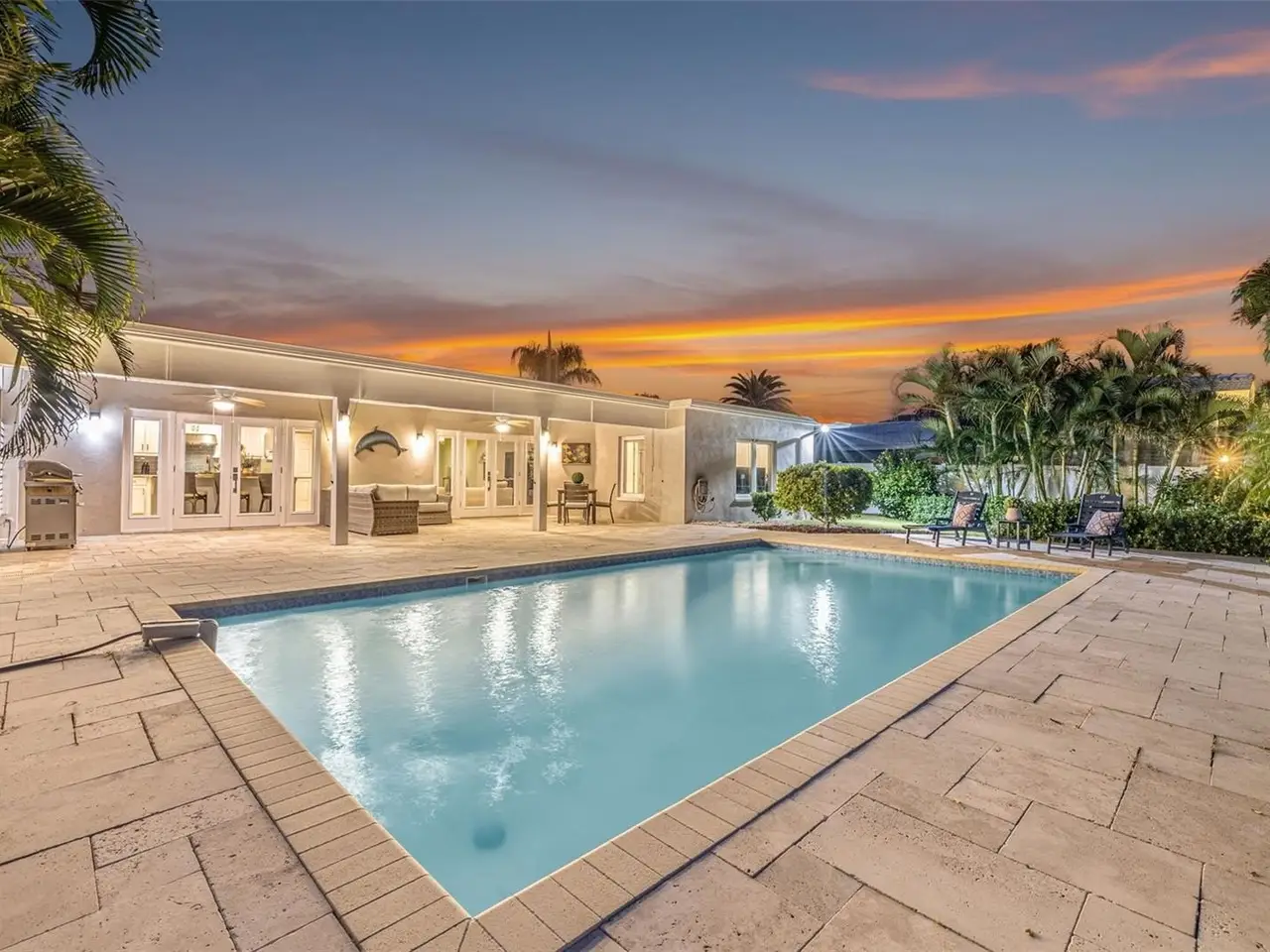 Under contract-accepting backup offers. Experience waterfront living at its finest in this beautifully remodeled Island Estates residence. With three bedrooms, two bathrooms, and refined finishes throughout an airy, open layout, the home is designed to make every day feel like a vacation. Step through the front door and take in sweeping water views and light-filled living spaces, perfect for effortless coastal living and easy entertaining. The kitchen is a true centerpiece, featuring a large leathered-granite island ideal for casual dining, a 4-burner gas cooktop, sleek stainless-steel appliances, abundant storage, and captivating views that make cooking a pleasure. A split-bedroom plan ensures privacy for the primary suite, complete with a beautifully tiled shower and a quartz dual-sink vanity, while comfortable guest rooms and a large indoor laundry room add everyday convenience. Open the back doors to a resort-style backyard with a saltwater in-ground pool, a covered patio, lush tropical landscaping, and seamless canal vistas. Your private dock includes 30-amp electrical service, ready for a future boat lift and ideal for launching kayaks and paddleboards, so you can spend more time on the water and less time in the car. Blending luxury, function, and the best of the Island Estates lifestyle, you are just minutes to Clearwater Beach, dining, and the open water, this waterfront retreat is tailor-made for buyers who want to live where they love to play.
