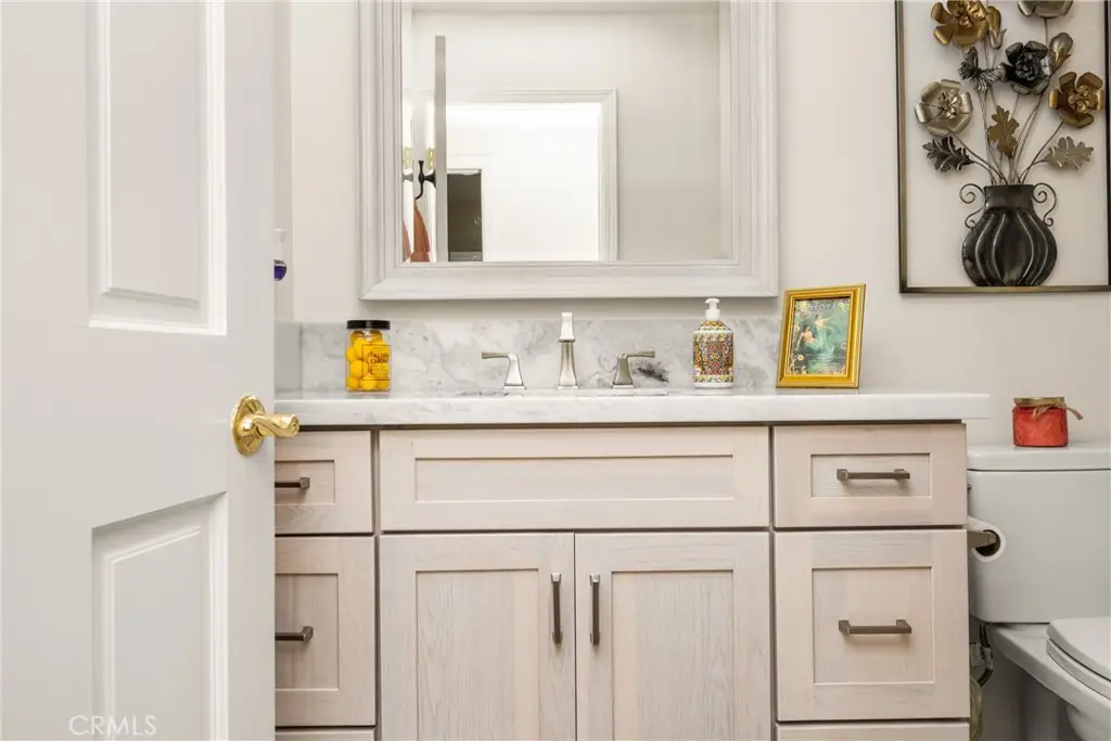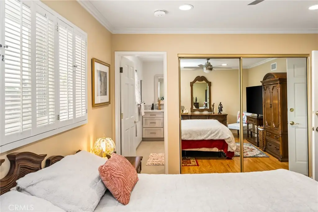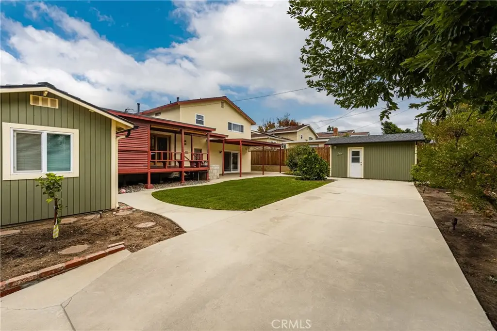 Welcome to this beautifully upgraded 4-bedroom, 3-bathroom home offering 2,121 sq ft of thoughtfully designed living space. With a downstairs bedroom and full bath, this layout is perfect for guests or multigenerational living. At the heart of the home is the Designer Chef's Kitchen, featuring premium appliances: Sub-Zero Dacor refrigerator, Dacor double oven with warming drawer, Wolf 6-burner cooktop, Bosch dishwasher, and Dacor convection microwave. Enjoy the gorgeous Quartzite countertops, vegetable prep sink, and custom pull-out shelving make this a dream kitchen for any culinary enthusiast. All bathrooms have been tastefully updated with elegant Kraft Maid birch wood cabinetry, adding warmth and sophistication throughout the home. The home boasts 3/4-inch Hickory wood floors, recessed lighting and ceiling fans perfect for those warm summer days. Outside, entertain in style under the custom - built covered patio, perfect for alfresco dining. The expansive backyard is a private oasis featuring mature Hass avocado, orange, lime, and kumquat trees, plus a convenient slab sink for barbequing. On opposite sides of the yard, you'll find two custom built 8x16 sheds complete with insulation, drywall, windows, and 3-amp wiring offers exceptional additional space. Additional highlights include RV parking with remote controlled gate access, Noritz tankless water heater, reverse Osmosis water system, a Vertex security system, with multiple cameras for added coverage, newer ductwork, and a 3-year-old composition shingle roof with 50-year warranty. A rare find that blends luxury finishes, thoughtful upgrades, and versatile outdoor space - this home is truly the total package!