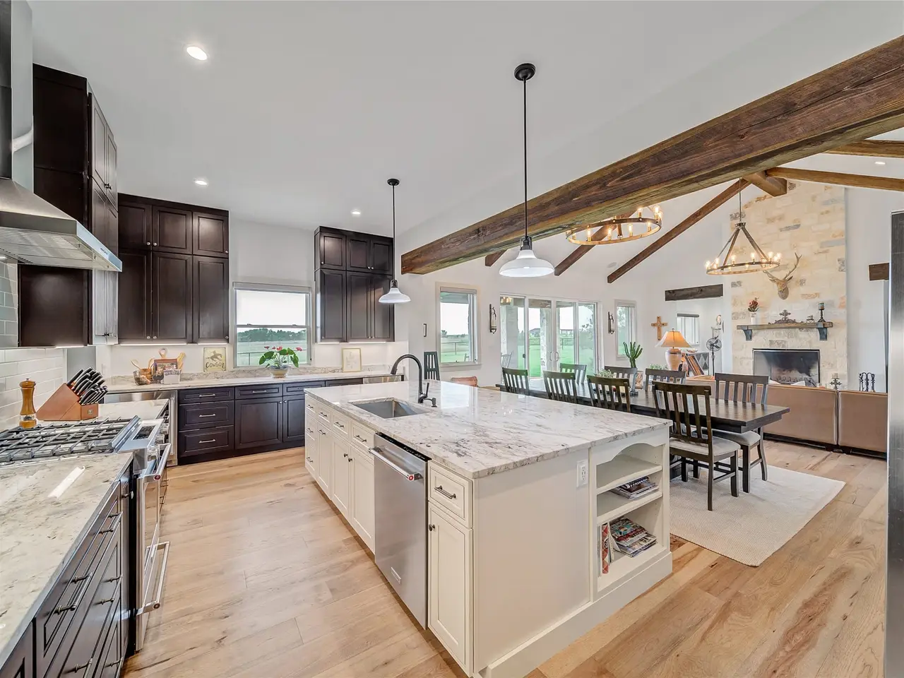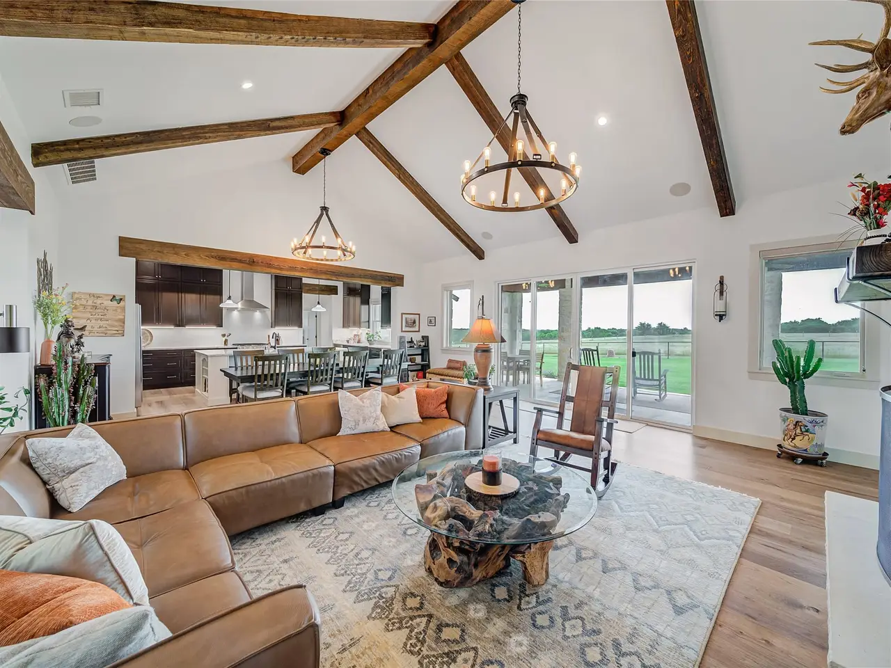 HILLTOP LUXURY WITH PANORAMIC COUNTRYSIDE VIEWS - Perched high above the road on 10 private fenced ag-exempt acres, minutes from Lake Ray Roberts. This gated custom 2,730 sq ft home was thoughtfully designed in 2020 by the owner-builder to capture sweeping panoramic views of the rolling countryside. Set back on a gentle hill, the property offers both seclusion and serenity in a setting reminiscent of the Texas Hill Country's natural beauty. Inside, the home features 3 spacious bedrooms, 2.5 baths, a dedicated study and a three-car oversized garage. The open-concept layout centers around a chef's dream kitchen complete with a large granite island, 5-burner range, dual ovens (gas and electric), a wine fridge, and a separate beverage fridge. With a blend of modern and hill-country style design, every detail of the home reflects style and functionality. Native, drought-tolerant landscaping surrounds the property, while outdoor living spaces, like the fire pit, invite you to relax and take in the sunsets. For the craftsman or hobbyist, the estate includes: A large shop with an epoxied floor - perfect for auto projects, woodworking, or your next creative pursuit. Additional space with 12 overhead doors for equipment and tractor storage. Space for an RV up to 35 feet. Built with energy efficiency in mind, the home features high-performance appliances, 6-inch walls, engineered hardwood floors, spray foam insulation and other energy-saving systems to keep utility costs low. Don't miss this rare opportunity to own a truly special hilltop retreat that blends luxury, practicality and endless views.