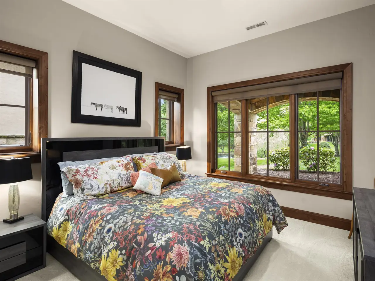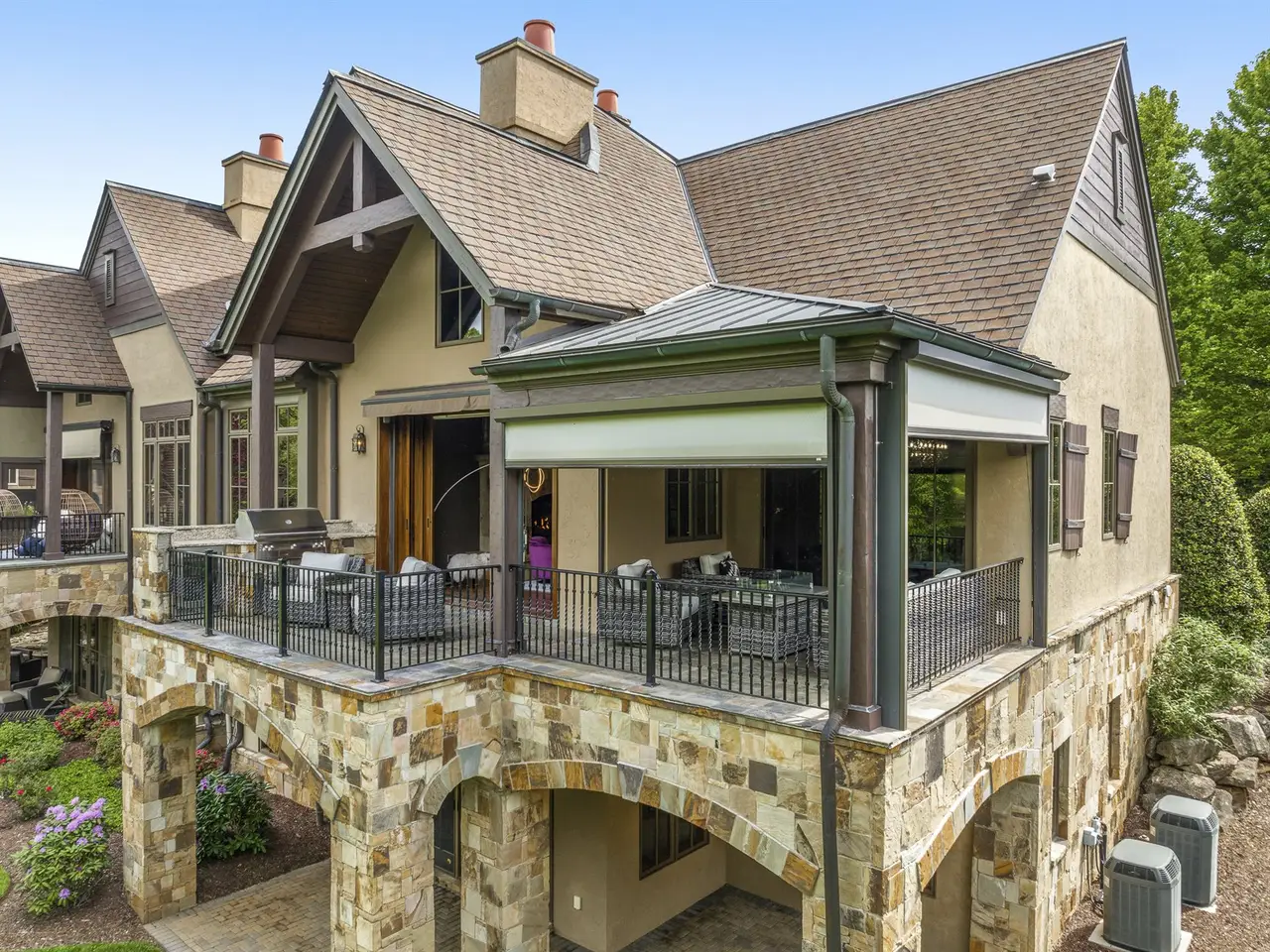 This beautifully updated stone townhome blends rustic charm with modern elegance and smart home features. Located just one minute from the gates and close to the Clubhouse and the Jack Nicklaus Signature Golf Course and tavern grill, it offers serene views of green space, water features, and mountains. The main level features open living, a gourmet kitchen with Wolf and Subzero appliances, and a spacious primary suite with vaulted ceilings and a recently renovated spa-style bath retreat! Enjoy year-round outdoor living with a covered porch, terrace, and remote-controlled screens. Downstairs offers two guest suites, a steam shower, and a private patio. Meticulously maintained with custom finishes throughout. New HVAC is being installed. This is mountain living at its finest and is being offered turn-key and fully furnished with the exception of a few personal items. See agent for the list of exceptions. Membership available.
