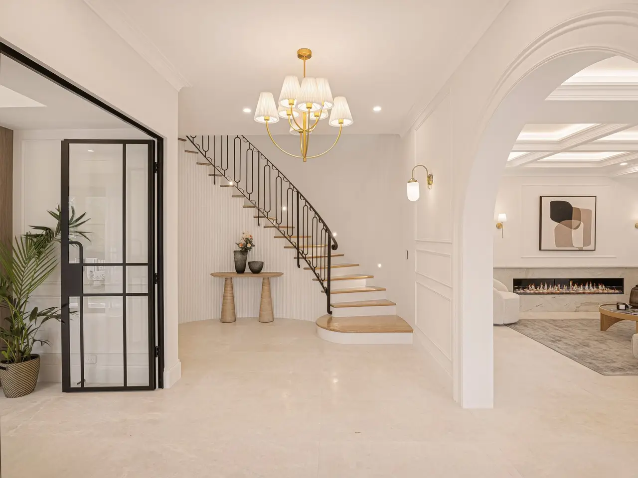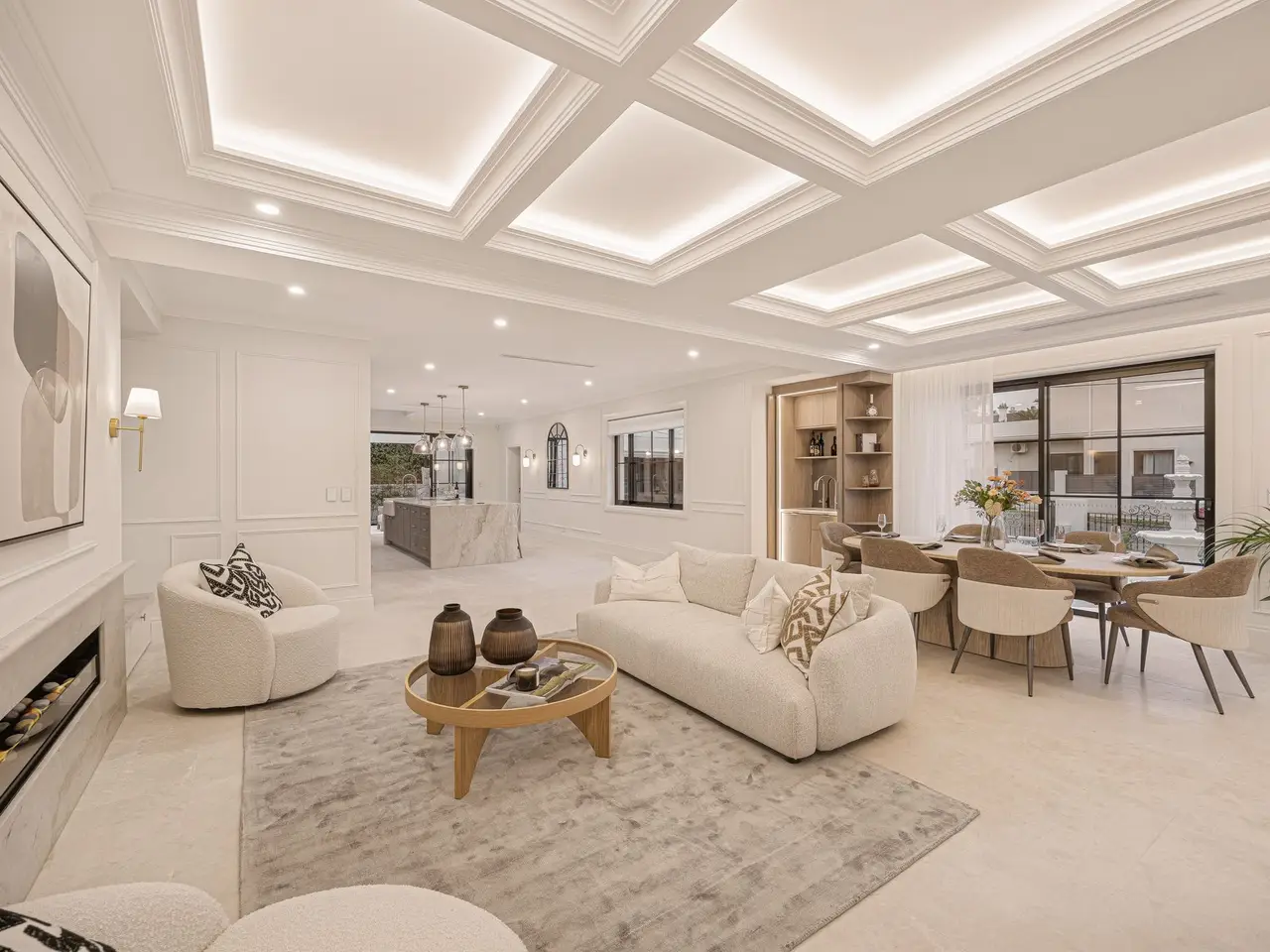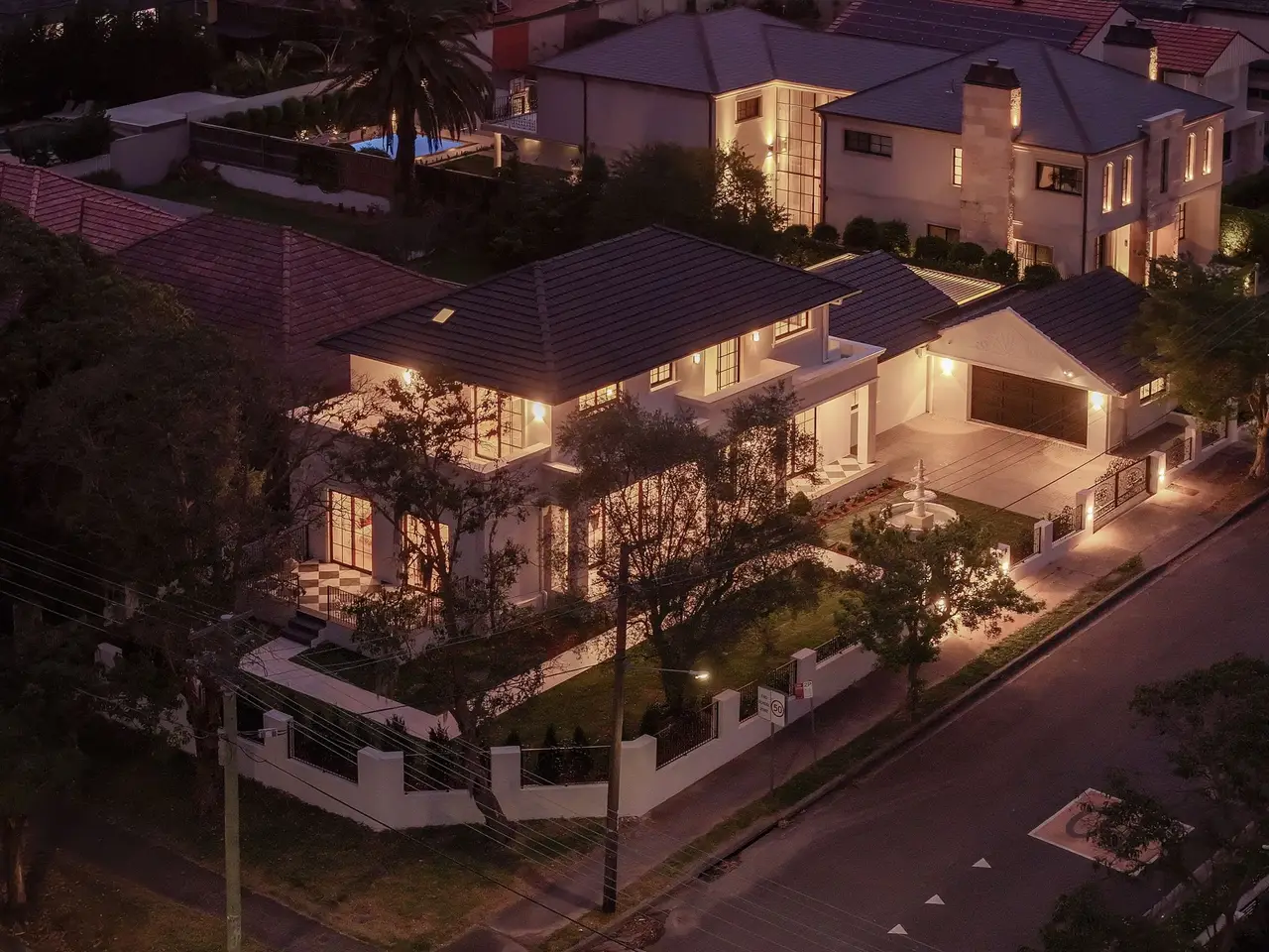 Commanding a prestigious position within Strathfield's exclusive Golden Mile, this state-of-the-art residence fuses architectural mastery with contemporary design and provincial-inspired elegance. Recently transformed to an impeccable standard, it reveals a flawless interplay of space, light and refined craftsmanship across a collection of living zones. A sequence of French doors invites seamless transition to beautifully landscaped gardens, where fountains, courtyards and private balances create an idyllic setting for entertaining. This grand home delivers unparalleled comfort and sophistication, just 400m from Strathfield Station, cafés, and elite schools. - Grand interiors enhanced by chandeliers, detailed ceilings and a custom fireplace - Abundant natural lighting throughout, enhances the overall appeal of the aesthetic interiors - Dual outdoor flow to an open-air terrace, manicured garden and child-friendly yard - Effortless transition to a Pergola-covered alfresco terrace with an outdoor kitchen - Marble gourmet kitchen boasts premium gas & Miele appliances, walk-in pantry and bespoke joinery - Five deluxe bedrooms, each fitted with either built-in robes, balconies or ensuites - Master bedroom features a custom built-in, double ensuite and a private balcony - Luxurious fully tiled bathrooms with walk-in showers, dual basins and a soaking tub - Porcelain tiles, French doors, ducted air-conditioning, marble finishes throughout - Double automatic garage with internal access, ample off-street driveway parking - Grand double-door entry framed by manicured hedges and statement landscaping - Coveted Golden Mile setting, steps to Strathfield Plaza, transport and elite schools