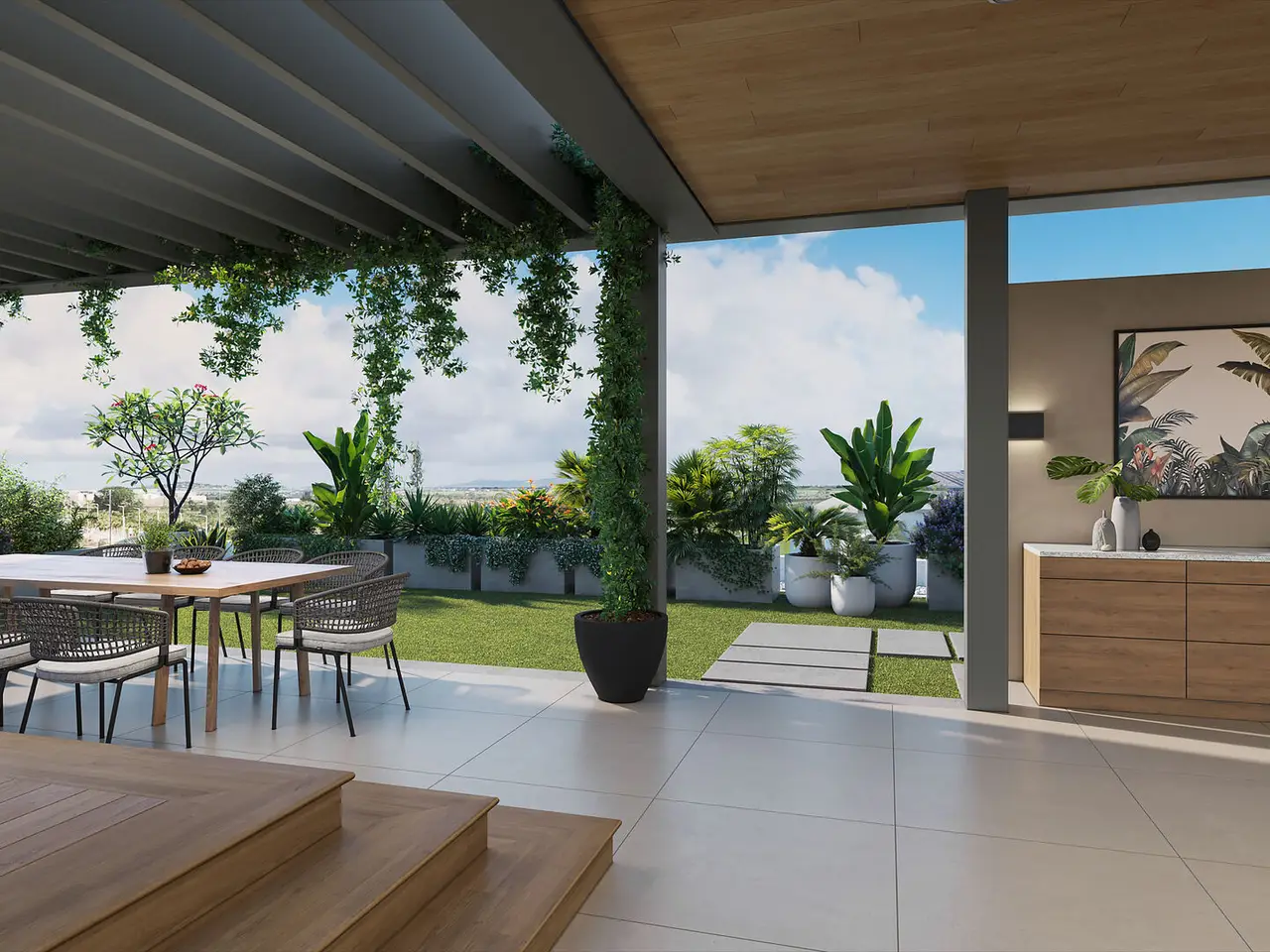 This exceptional 4-bedroom penthouse of 329 m² is a rare gem in Phase 5 of Mont Choisy La Réserve, offering an extraordinary lifestyle that combines space, elegance, and tropical serenity. Situated on the top floor of an exclusive residence, the penthouse enjoys panoramic views over the lush gardens, the golf course, or the distant mountains—all within a calm and secure environment. Designed for seamless living, the interior features vast open spaces that are filled with natural light and connect effortlessly to the outdoors. The expansive main living area includes a stylish lounge, a refined dining space, and a fully equipped modern kitchen, all opening onto a generous panoramic terrace—ideal for entertaining, dining al fresco, or relaxing in privacy. A private pool or jacuzzi can be added as an option. The layout includes: A spacious master suite with walk-in closet, en-suite bathroom, and direct access to the terrace Three additional bright and well-appointed bedrooms, each with built-in wardrobes and contemporary bathrooms A sleek designer kitchen with central island, pantry, and separate laundry room Guest WC and ample integrated storage throughout A panoramic outdoor terrace offering generous lounge and dining areas with potential for a private plunge pool The finishes are sophisticated and high-end: polished concrete-effect floors, natural timber details, soft neutral palettes, and refined textures throughout. Every element has been carefully curated to create a refined yet relaxed atmosphere that reflects the spirit of upscale island living. As a resident of Phase 5 at Mont Choisy La Réserve, you’ll enjoy access to a full range of premium on-site amenities: An 18-hole championship golf course designed by Peter Matkovich A state-of-the-art wellness and leisure centre with gym, yoga, tennis, paddle, sauna, and solar-heated swimming pool A 50-hectare nature reserve with trails, wildlife, and organic farming Fine dining at the gourmet La Potinière restaurant Easy access to the pristine Mon Choisy Beach A vibrant smart city including the C-Care private clinic, international schools, boutiques, cafes, and coworking spaces This property is available to foreign buyers and qualifies for Mauritian residency under the Smart City Scheme. With its expansive living areas, exceptional privacy, and elegant design, this penthouse represents a truly unique opportunity to experience luxury tropical living at one of Mauritius’ most prestigious addresses.