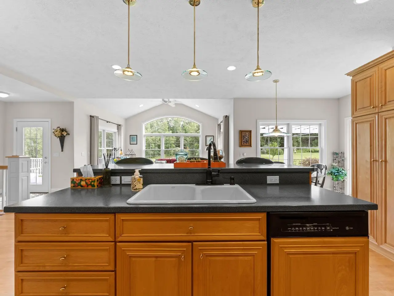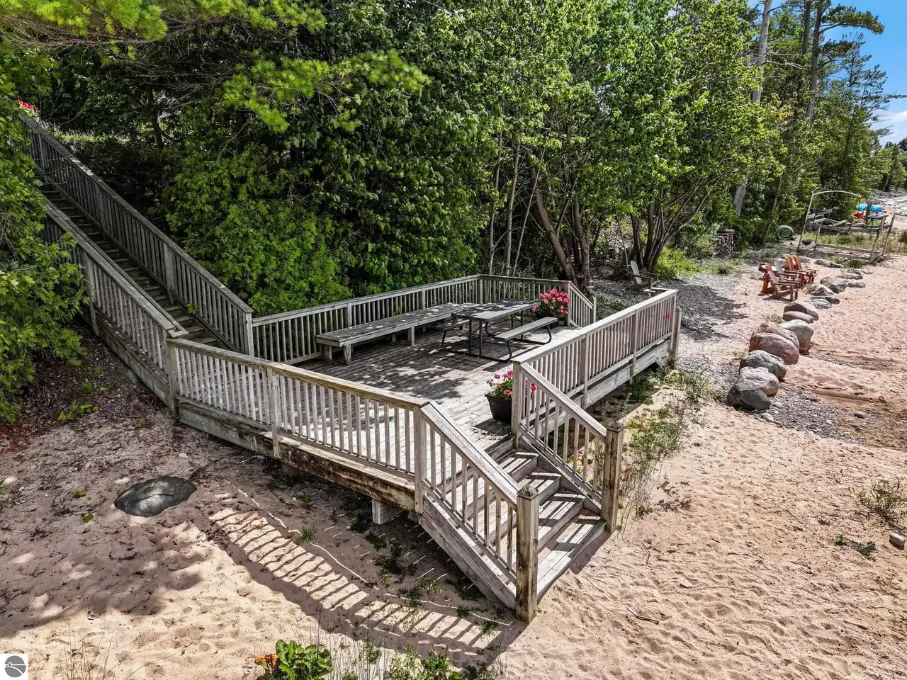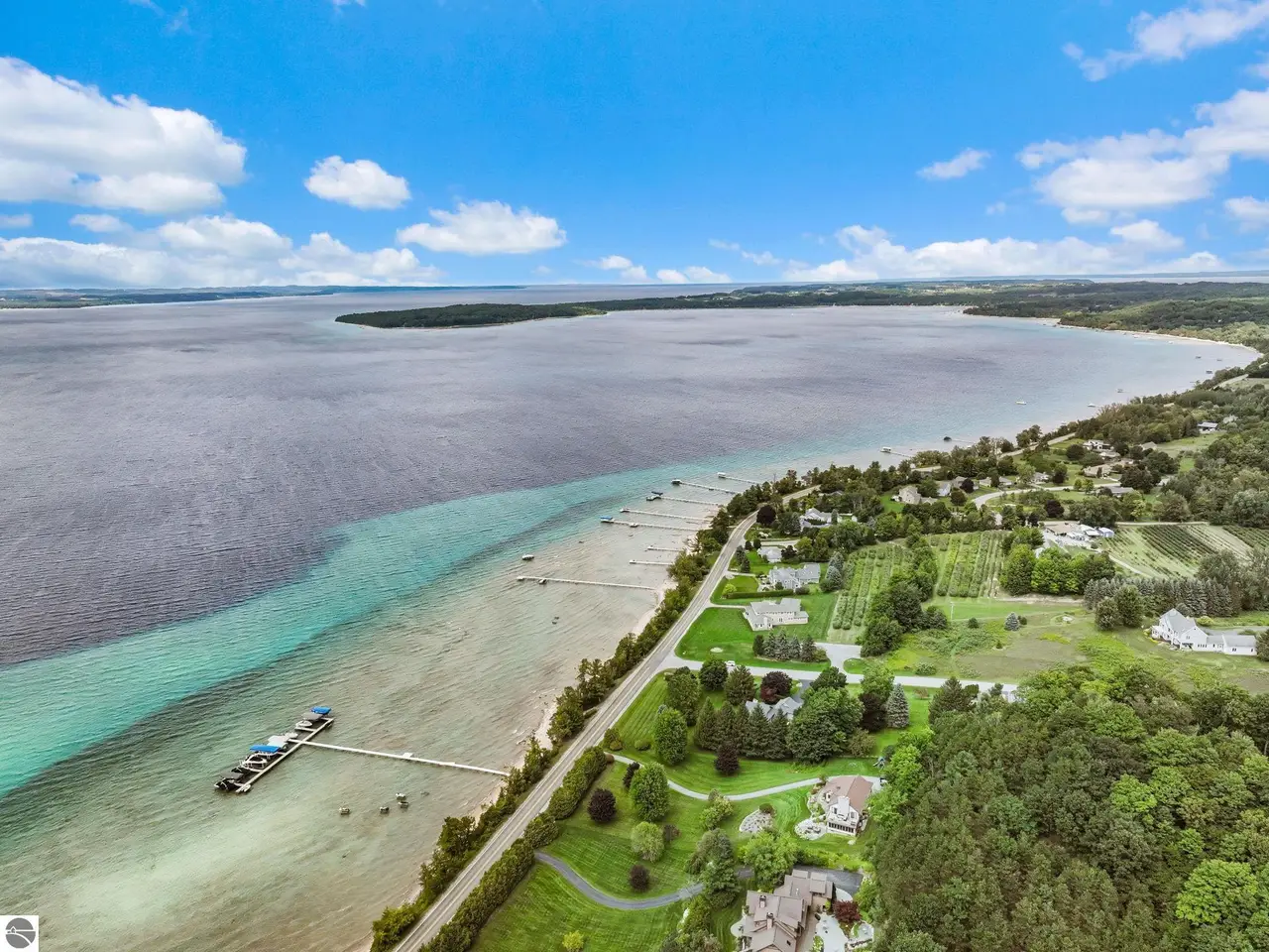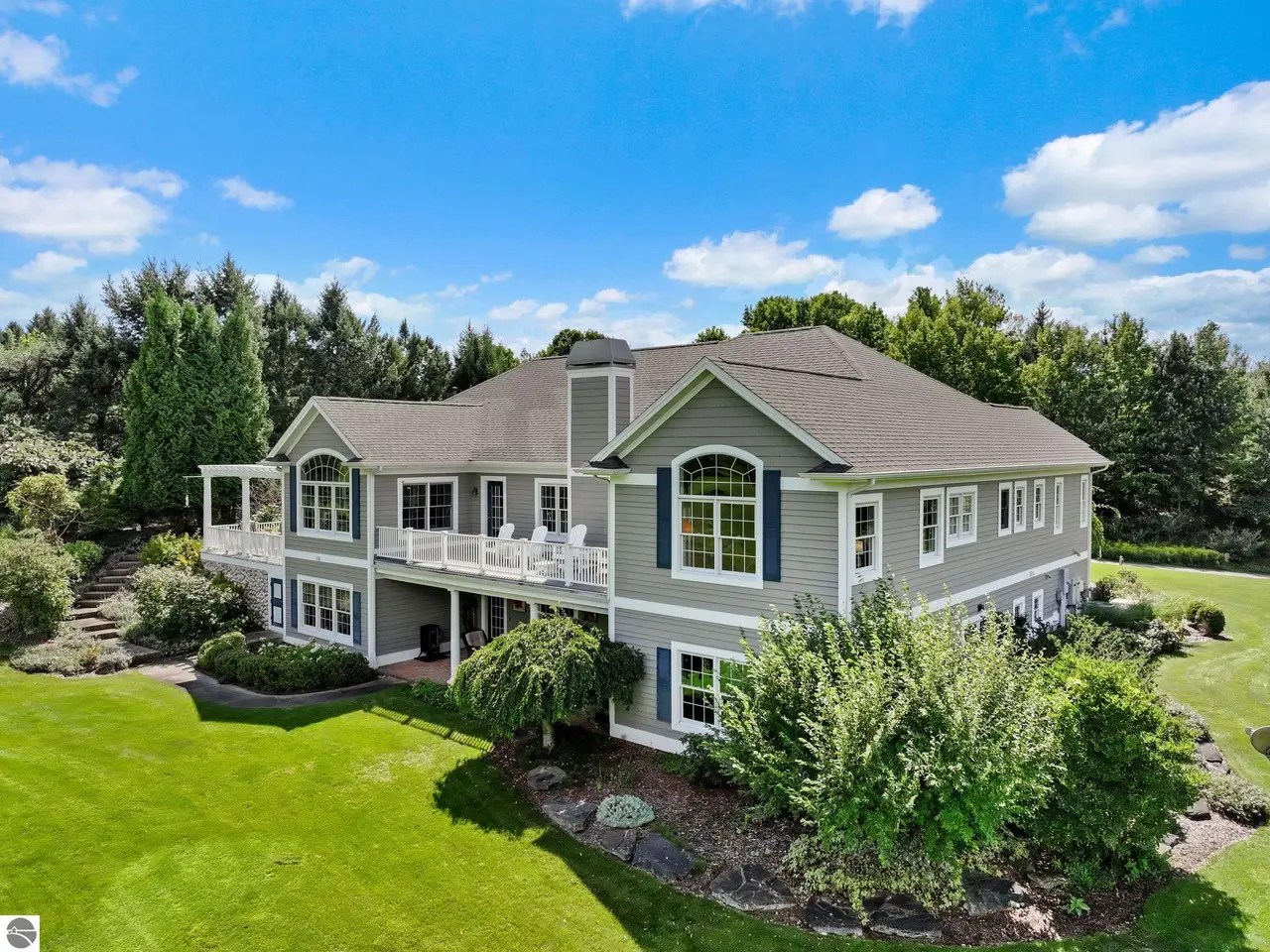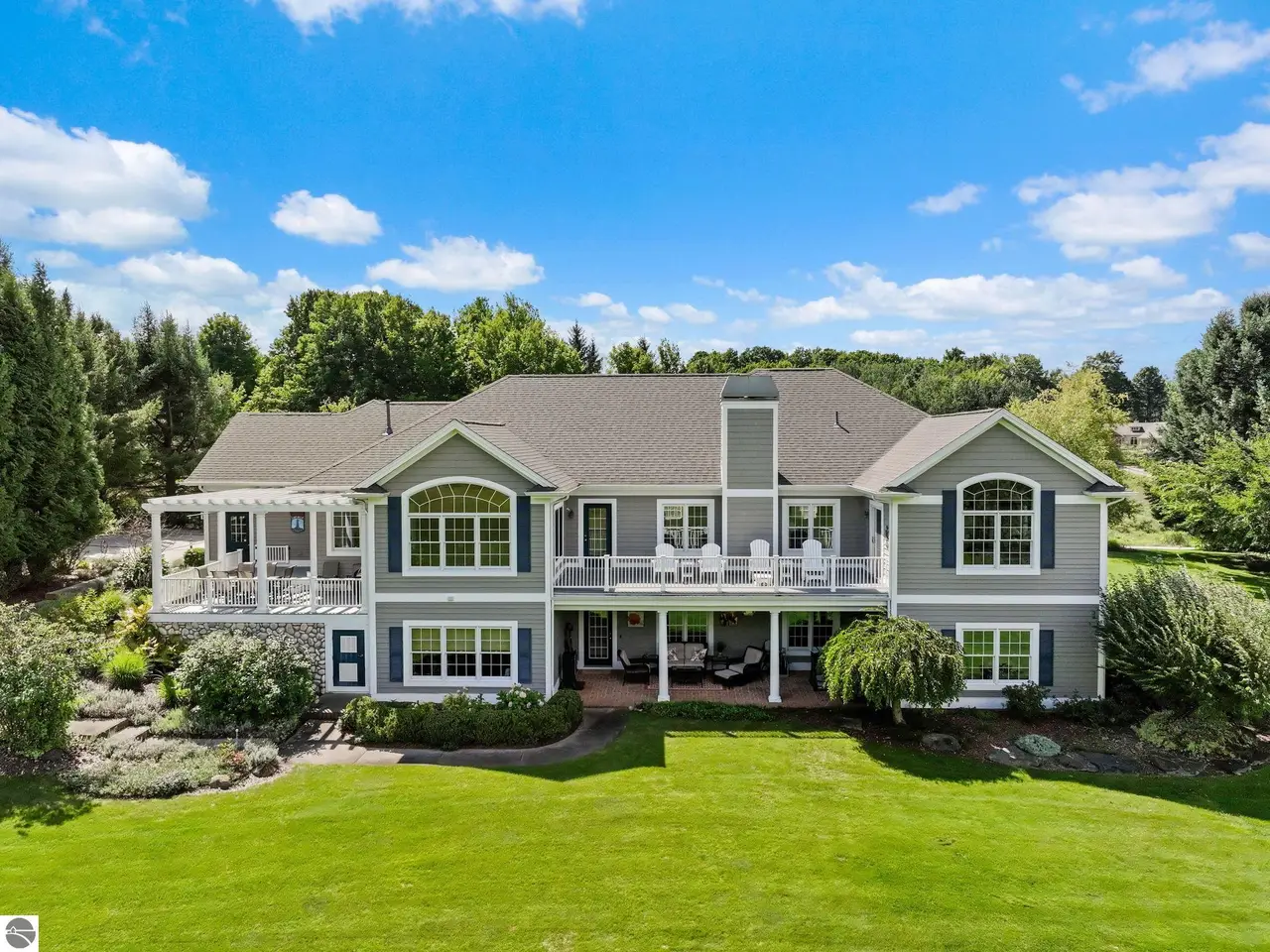 Welcome to life on Old Mission Peninsula! This builder's home sits on nearly 3 acres in the highly desirable Old Mission Estates subdivision, offering over 700 feet of shared, sandy West Bay frontage with docking privileges. The main floor flows effortlessly between everyday comfort and gracious entertaining, with oversized windows filling each space with natural light. The open kitchen overlooks a casual family room and dining nook that opens to a tiered composite deck shaded by a pergola and surrounded by manicured landscaping. For more formal gatherings, host dinner parties in the bright dining room or cocktails by the gas fireplace in the living room, complete with French doors leading to another expansive deck and rolling backyard views. The main-floor primary suite features a walk-in closet and spa-like bath with whirlpool tub and separate shower. An additional bedroom, den, laundry, and mudroom complete the easy-living main floor design. The lower level is designed for fun and flexibility with soaring ceilings, big windows, a second gas fireplace, full kitchen, craft/workshop space, and two private bedroom suites -- ideal for a mother-in-law setup, guest retreat, or growing family. This home comes loaded with extras, including a heated 4-car attached garage with drain, surround sound in most rooms, central vacuum system, and a Generac whole-home generator for peace of mind. Old Mission Estates also offers generous common areas, a welcoming neighborhood atmosphere, and access to the sparkling waters of West Bay. Bring your boat, your sand toys, and your love of Northern Michigan living -- this stunning home has it all. Come see it for yourself today!