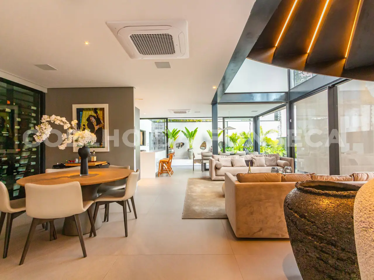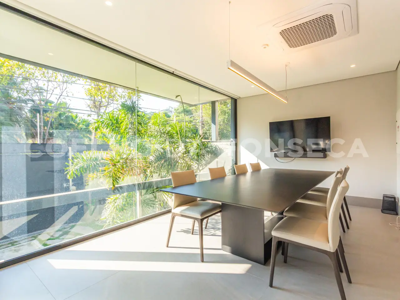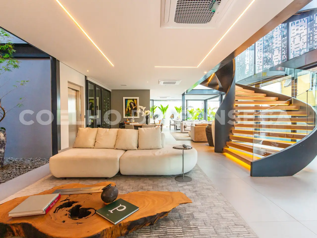 New contemporary residence, just a few steps from Ibirapuera Park, fully furnished and equipped, for sale with a closed gate. Designed by an internationally renowned architect, the house features straight-line architecture, with exposed concrete and large glass openings that promote integration with the outside and plenty of natural light. The spaces are spacious, well distributed and designed for sophisticated living. The living room, facing the heated swimming pool, has as its focal point a sculptural staircase in metal and glass structure. An open and fully equipped kitchen, dining room and toilet make up the social area with fluidity and elegance. The private area has four suites, all with custom closets by Artigiano. The master suite includes a small living room. A living room with home theater, gourmet kitchen and a large terrace with a view of the park complete the program with versatility and comfort. Among the technical differences: Lutron automation, Sonos sound system, Luxion lighting, Amorim blinds, central air conditioning, Montele elevator and Huawei generator. All the rooms were furnished with pieces from Artefato, creating a high-quality set, ready for immediate use. Underground garage for six vehicles. House in the Jardim Luzitânia neighborhood with 700m² of built area, 4 bedroom(s), 4 suite(s), 6 parking space(s), 6 bathroom(s).