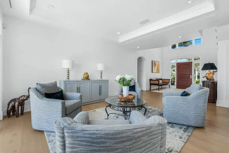Gorgeous waterfront home on Hurricane Harbor in The Moorings - less than a mile to the private Moorings Beach. Enjoy the delightful wide bay southern exposure views from every room & breathtaking sunset every evening. Open floor plan providing one level living on the first floor & plenty of room for guests. 20' vaulted ceiling foyer with a grand staircase and balcony, opening to unobstructed water views. This home is a seamless blend of elegance, tropical warmth, and traditional touches. A mix of fine wood trim craftsmanship and modern Florida living. Entertaining and cooking is a pleasure in the updated kitchen with large island, bar, wine cellar & walk in pantry. Wolf, Sub-Zero and Dacor appliances. This home has been extensively upgraded. Secured with electric storm shutters. New roof. The seawall has been replaced in 2021. Take your choice to sip morning coffee from the breakfast nook, lanai or pool deck as you overlook the bay and swaying palms! This is truly your own self-contained resort and yet super close to all amenities. Short boat ride to the Gulf via Doctors Pass. Come see this amazing home and make it yours.