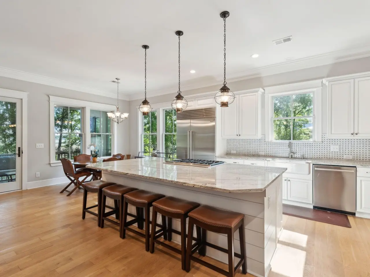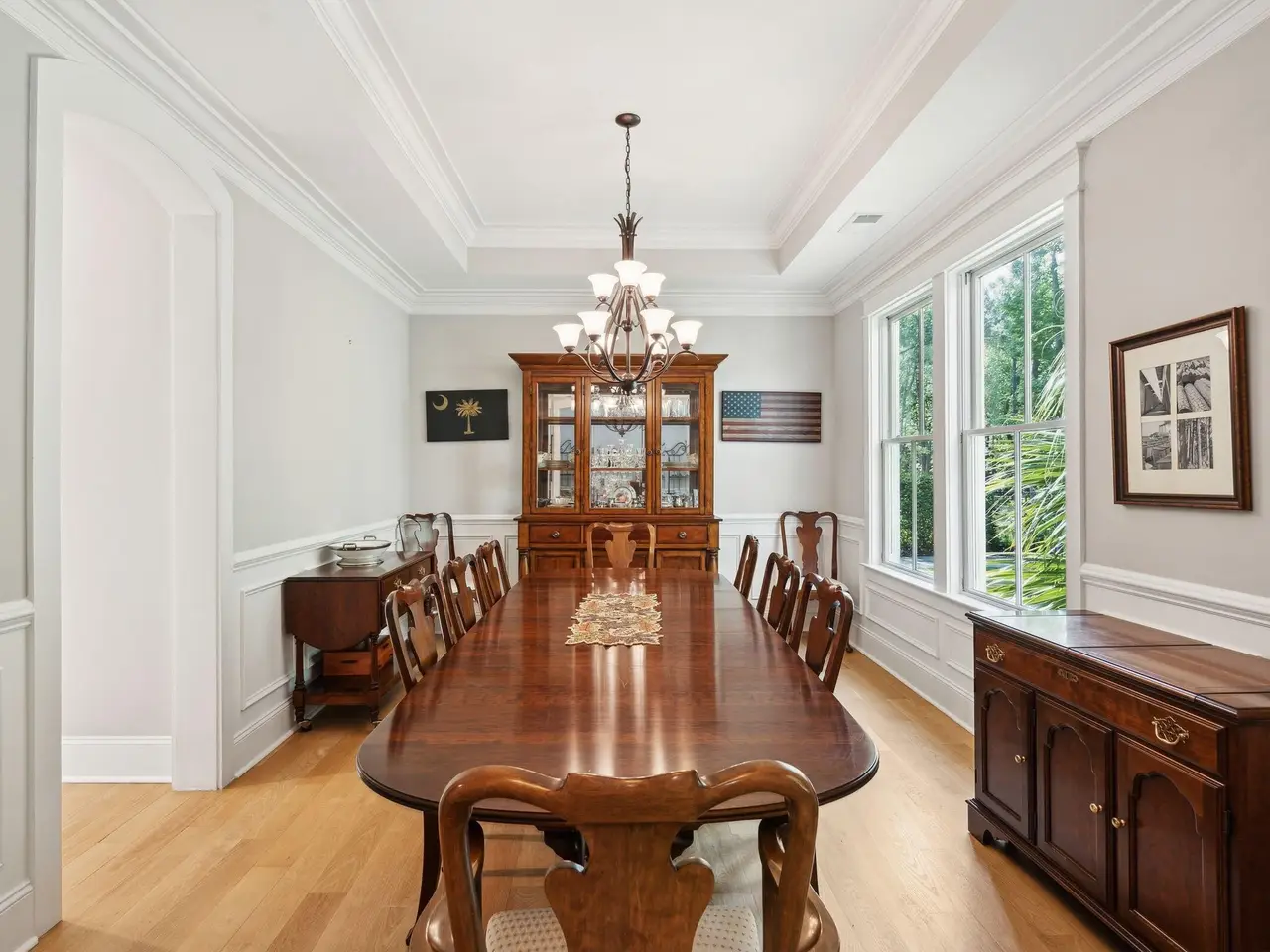 Breathtaking Marsh Views on the Wando River - Private 3-Acre Estate in Gated Pepper Plantation. Enjoy the ultimate Lowcountry lifestyle on 3 private acres overlooking the Wando River in the gated community of Pepper Plantation. Tucked at the end of a quiet cul-de-sac, this 5-bedroom, 5-bath custom-built home delivers elegance, privacy, and sweeping marsh-to-river views. The elevated, three-story home is designed for easy living and effortless entertaining. As you approach, a beautifully landscaped yard and wooded entry offer unmatched seclusion. The solid mahogany front door opens into a sun-drenched interior featuring white oak hardwood floors, high ceilings, and a seamless flow of space. A formal dining room and study flank the foyer, while the expansive great room and chef's kitchen span the rear of the home, capturing spectacular views. The kitchen is outfitted with top-tier appliances including a 48" Sub-Zero refrigerator, Wolf double ovens and gas cooktop, farmhouse sink, and granite countertops. A generous breakfast nook is wrapped in windows and overlooks the water, the perfect spot for family meals or morning coffee. The main-level primary suite is a private sanctuary with panoramic views of the Wando River, dual walk-in closets, and a spa-inspired bathroom with double vanities, walk-in shower with rain head, and soaking tub. An additional guest suite and full bath are also located on the ground floor. Upstairs are three additional bedrooms, one with an en suite bath, and two sharing a Jack & Jill, plus a large bonus room ideal for a media room, playroom, office or sixth bedroom. The ground level features a climate-controlled bonus space with a full bath, ideal for a home gym, artist's studio, or guest suite. The 3-car garage offers epoxy-coated floors, a workshop area, and ample storage. Step outside to your own private oasis. The screened-in porch with wood-burning fireplace opens to a spacious backyard with a travertine-surround saltwater pool, all framed by moss-draped oaks and uninterrupted marsh views. Enjoy outdoor dining, evening sunsets, or weekend gatherings in this truly exceptional setting. Additional features include: - 3-stop elevator - Whole-home generator - Standing seam metal roof - Impact-rated windows and doors - Fenced backyard with direct bathroom access from pool area Pepper Plantation is an exclusive enclave of custom homes offering privacy, natural beauty, and unique amenities. Residents enjoy an equestrian-style setting with a training track, riding trails, and a picturesque pavilion overlooking a freshwater lake, perfect for weddings, events, or community gatherings. Located just 12.5 miles from Isle of Palms beach and 15 miles from downtown Charleston, this community offers the perfect blend of quiet Lowcountry living with Charleston convenience.