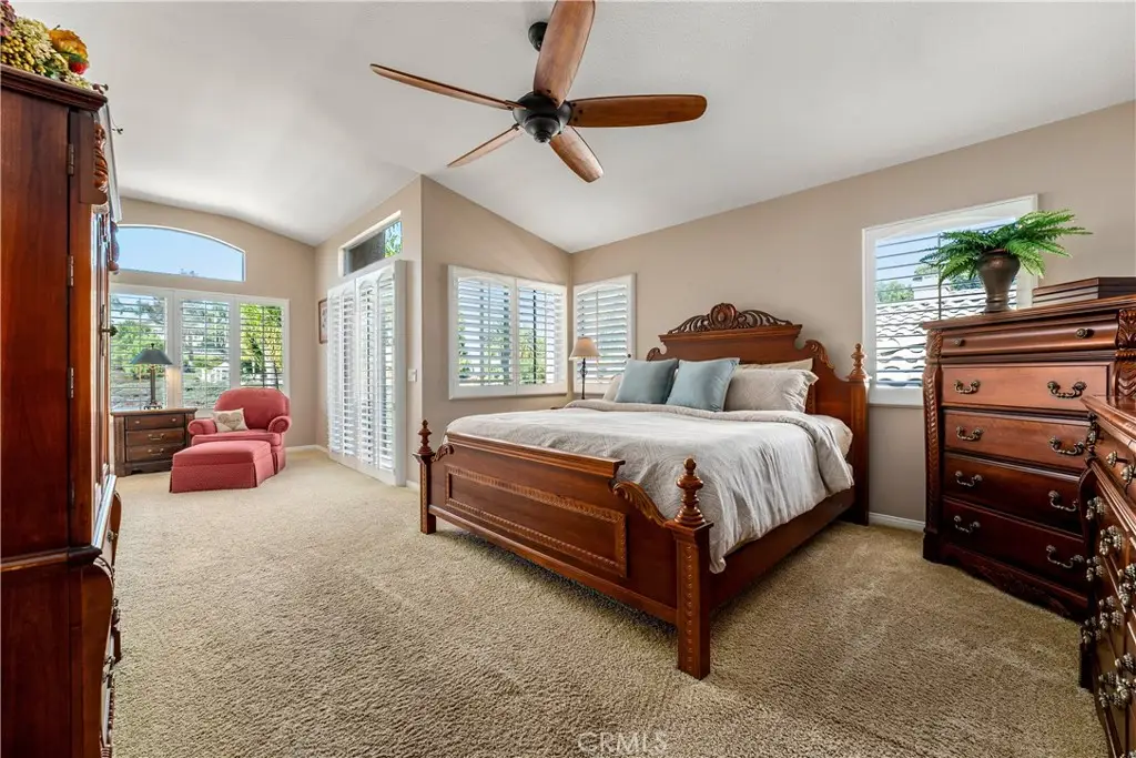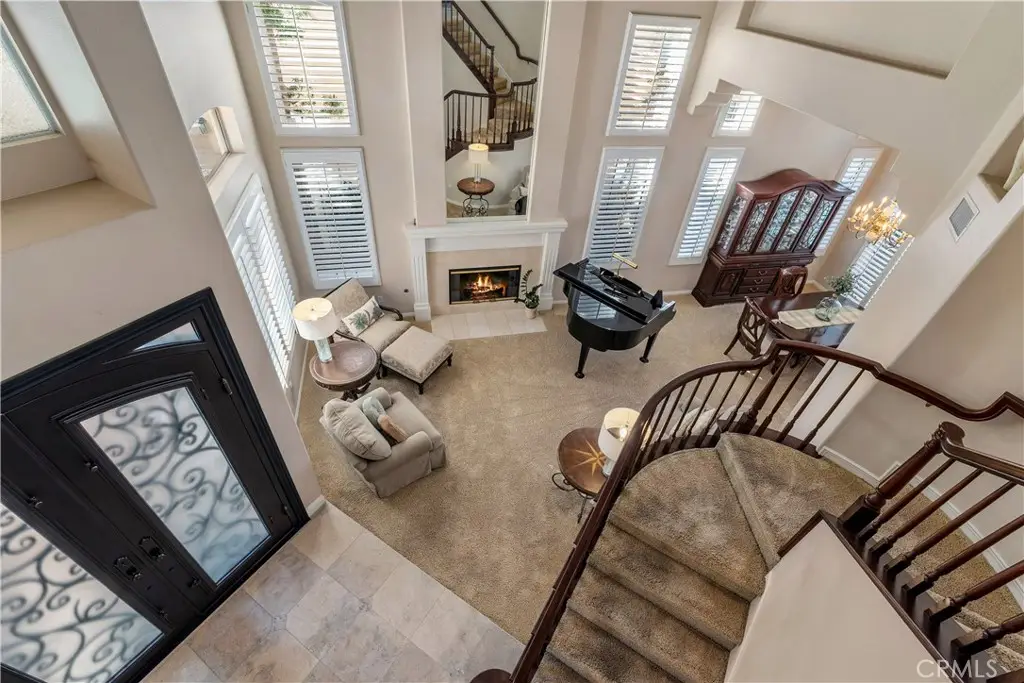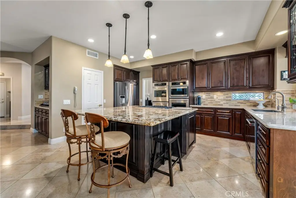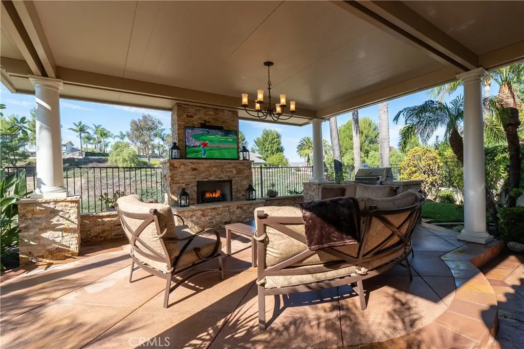 823 Cottontail Lane, Anaheim Hills 5 Bedrooms | 3 Baths | 3-Car Garage | Canyon View| Welcome to this beautifully upgraded view home in the hills of Anaheim. From the moment you arrive, the impressive curb appeal stands out with a front courtyard highlighted by a large fountain, and a colored concrete driveway accented with slate. Enter through elegant custom iron double doors into a welcoming foyer with fossilized Portuguese limestone floors. To the left, the formal living room features a custom fireplace mantel, mirrored wall, and crown molding. The adjoining formal dining room offers wood shutters and a sliding glass door that opens to the backyard patio, creating a seamless indoor/outdoor flow. The upgraded kitchen is a chef's delight with rich cabinetry, granite counters, tile backsplash, and an oversized island with bar seating and a five-burner cooktop. High-end Thermador appliances include three ovens and a microwave. Recessed and pendant lighting illuminate the space. The kitchen opens to the inviting family room complete with a brick fireplace, custom mantel, and a granite-topped wet bar--perfect for entertaining. The main level also includes a bedroom and an upgraded three-quarter bath, plus a convenient laundry room with sink. Upstairs, the spacious primary suite features double door entry, a retreat, ceiling fan, walk-in closet, and a private balcony to take in the serene canyon views. A double-sided fireplace warms both the retreat and the luxurious primary bath with dual vanities, upgraded cabinetry, recessed lighting, chandelier, a jetted tub, separate shower, and private toilet room. Three additional bedrooms--one currently used as a bonus room--share a well-appointed hall bath with dual sinks and a tub/shower combination. Step outside to a stunning backyard designed for entertaining, complete with an alumawood patio cover, outdoor fireplace, chandelier, mounted TV, BBQ island, and a soothing fountain--all set against a tranquil canyon backdrop. Additional features include wood shutters on all windows, a whole-house water softener and filtration system, and dual-zone heating and air conditioning for year-round comfort. Close to award winning schools, shopping, restaurants and freeways