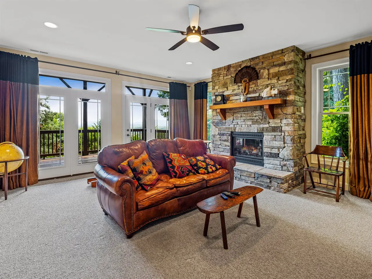 The views from this beautiful home will take your breath away. Sit on one of the 3 decks & enjoy majestic mountain views. The Biltmore House is in clear view! In the winter, you can see downtown Asheville. You will notice the exceptional quality & attention to detail throughout this home. Walk into a large foyer & vestibule, enjoy the large, designer kitchen, gather in the great room with soaring ceilings & stone fireplace & enjoy family gatherings in the dining room. The primary bedroom has a wall of windows so you wake up to the sun rising over the mountains. There are two guest bedrooms, a bath & another deck on the upper level. The basement level has another stone fireplace, family room, office/4th bedroom, laundry room, lots of storage & another large deck to enjoy outdoor living. The 3.26 acre lot is wooded and serene.