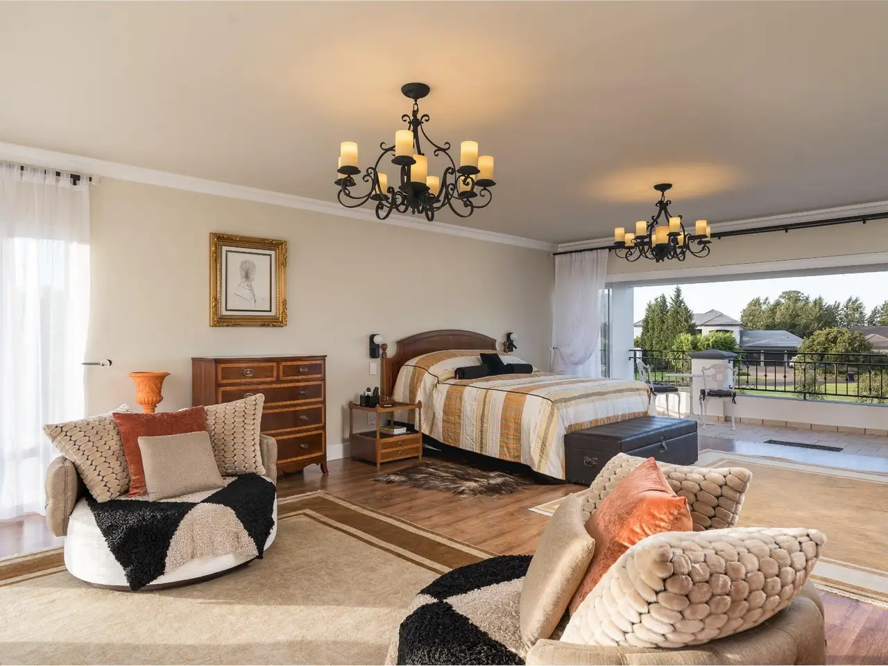 Cocooned between a serene Fynbos Reserve and manicured parklands lies this remarkable residence, offering breathtaking views of the Simonsberg mountains. Panoramic windows frame these stunning vistas, creating a seamless connection between indoor and outdoor ambiance. Designed with both elegance and practicality in mind, the open-plan kitchen, living, and dining areas are perfect for modern living. Custom cabinetry made from reclaimed railway sleepers compliments the black granite of the breakfast nook, which takes centre stage in the kitchen and allows one to gaze at the mesmerizing views. The space is further enhanced by a walk-in pantry, scullery/ laundry and French doors that open to a private courtyard garden. The northern side of the home cleverly offers an an undercover patio, accessed via French doors and spanning the entire frontage , effortlessly linking the sunlit interiors to the surrounding natural beauty, while offering protection from the wind. A beautifully landscaped garden framed by lush hedges offers an expansive pool, fabulous firepit and direct access to a stunning green belt. Downstairs also hosts a formal lounge with wood burning fireplace and a guest bedroom featuring its own private patio. The master suite is exceptional in size and comforts and enjoys sweeping views from both sides. A true sanctuary, complete with a spacious dressing room, luxurious en suite bathroom, underfloor heating and a private balcony. There are two additional en suite bedrooms upstairs, one of which offers a spa bath and sauna in the bathroom. Additionally, a North facing home office opens onto the balcony, offering more mountain views. Finishing off this incredible home are 3 garages, a CCTV and motion-sensor system, outdoor lighting for security, heat pump & automated pool cover for energy efficiency and solar power system with batteries & inverter. Set in one of Val de Vie EstateGÇÖs most sought-after locations, this home blends refined luxury with functional design and natural beauty, making it one of the most desirable properties on Val de Vie Estate. The home is sold fully furnished and includes valuable artwork and bespoke furniture, as well as appliances. Further details can be provided on request.
