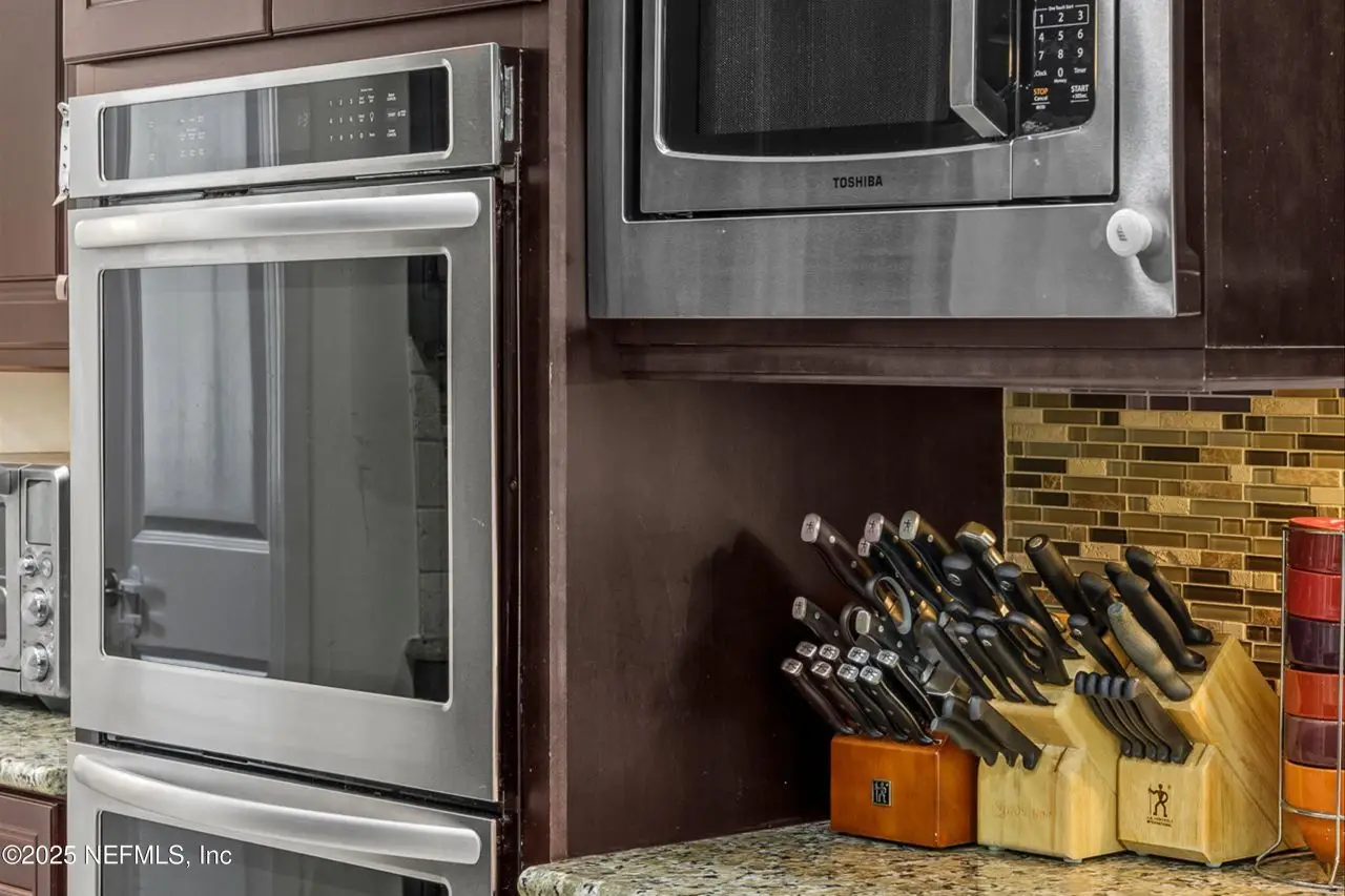 Step into a world of luxury and sophistication with this stunning Toll Brothers Anastasia home, located in the prestigious Coastal Oaks neighborhood of Nocatee. As you approach the property, the elegant paver driveway leads you to a grand entryway, setting the stage for the opulence that lies within. Upon entering, you'll immediately be captivated by the spacious, open floor plan, highlighted by soaring 12-foot ceilings and abundant natural light. The first floor features a gourmet kitchen designed for the discerning chef, complete with upgraded appliances, a gas cooktop, convection oven, underlighting under cabinets, granite countertops, a large island, a walk-in pantry, and a butler's pantry with a built-in wine chiller. The kitchen seamlessly flows into a spacious family room with a gas fireplace and surround sound system, making it perfect for both relaxation and entertaining. Step out onto the covered, extended- screened lanai with an outdoor kitchen and firepit, where you can enjoy serene preserve views and entertain guests in style. The expansive backyard offers plenty of space for a pool, creating a private oasis for you to enjoy. On the second floor, discover a versatile loft/bonus room with a bar, a large bedroom, and a full bathroom. This area provides ample space for family gatherings or guests. The master suite is a true retreat, featuring bay windows with a sitting area offering private views of the preserve, a luxurious ensuite with a tile garden tub, separate double vanity sinks, a separate shower with a rainfall showerhead, and two custom closets. Additional highlights of this exceptional home include beautiful light fixtures, a three-car garage with golf cart plug, a plumbed water softener system, New Roof 2024, 2 new HVAC system 2024. The home also includes a separate, tucked-away laundry room with a sink, washer, dryer, and cabinetry. AND SOOO MUCH MORE!Coastal Oaks at Nocatee offers a 24-hour manned gated entrance and resort-style amenities, including a residents' club with swimming pools, a fitness center, tennis courts, a soccer field, and scenic trails. Living here feels like being on vacation 365 days a year, with easy access to Splash Water Parks, kayak launches, greenway trails, and planned community events. To experience this exceptional lifestyle, schedule your private tour today. Seller is a licensed loan officer and may offer competitive financing options to qualified buyers. Buyer is not required to use seller's financing services.