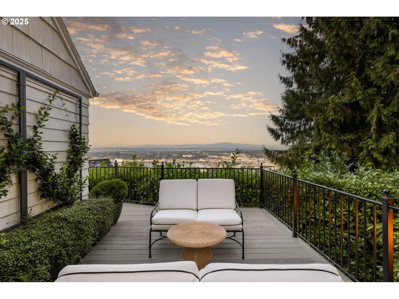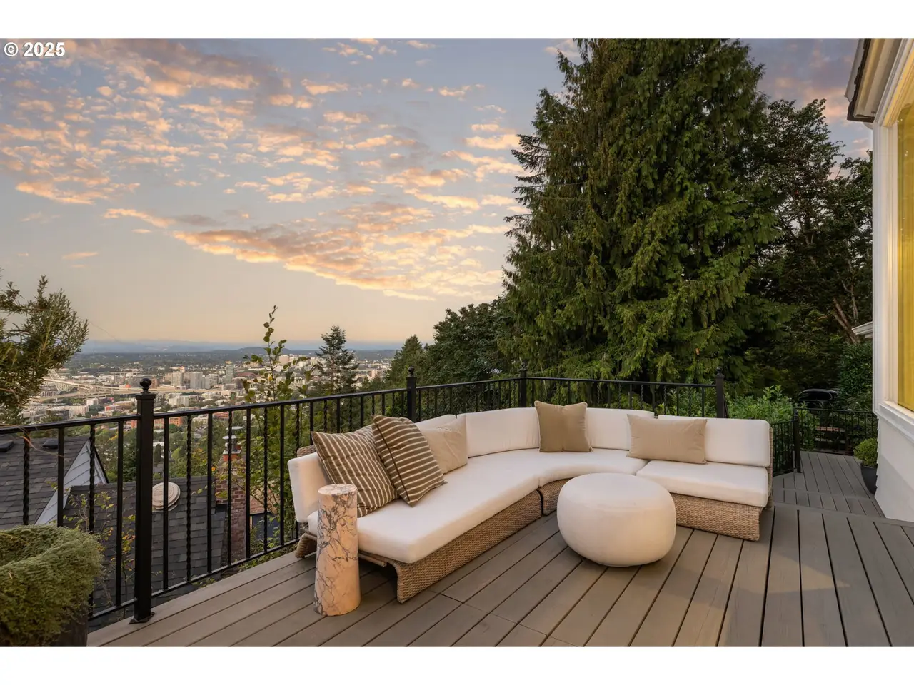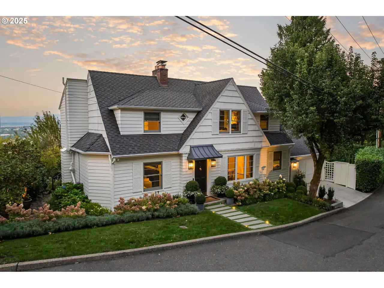Experience timeless elegance reimagined. Perched in Portland's coveted Kings Heights, this 1939 traditional has been meticulously restored by Maison Inc. to the highest modern design standards while fulfilling the owners mission in honoring its original character. Sweeping city vistas frame Mt. St. Helens and Mt. Adams, setting the stage for refined living. Every detail has been considered: all-new plumbing, electrical, and Lutron-controlled lighting; custom cabinetry; and hand-selected finishes of the finest quality. The chef's kitchen showcases slab Calcutta marble, bespoke cabinetry, and a charming built-in dining nook. Venetian plaster walls in the formal dining room, a marble fireplace surround, and custom millwork lend warmth and sophistication. Thoughtfully reimagined for today's lifestyle, the living room opens to an expansive cedar deck with iron railing crafted to mirror the original design. Landscaped grounds feature smart irrigation, exterior lighting, and a gas fire pit line, creating an inviting outdoor retreat. A true testament to design and craftsmanship, this home blends classic tradition with modern luxury in one of Portland's most desirable neighborhoods. [Home Energy Score = 2. HES Report at https://rpt.greenbuildingregistry.com/hes/OR10199223]