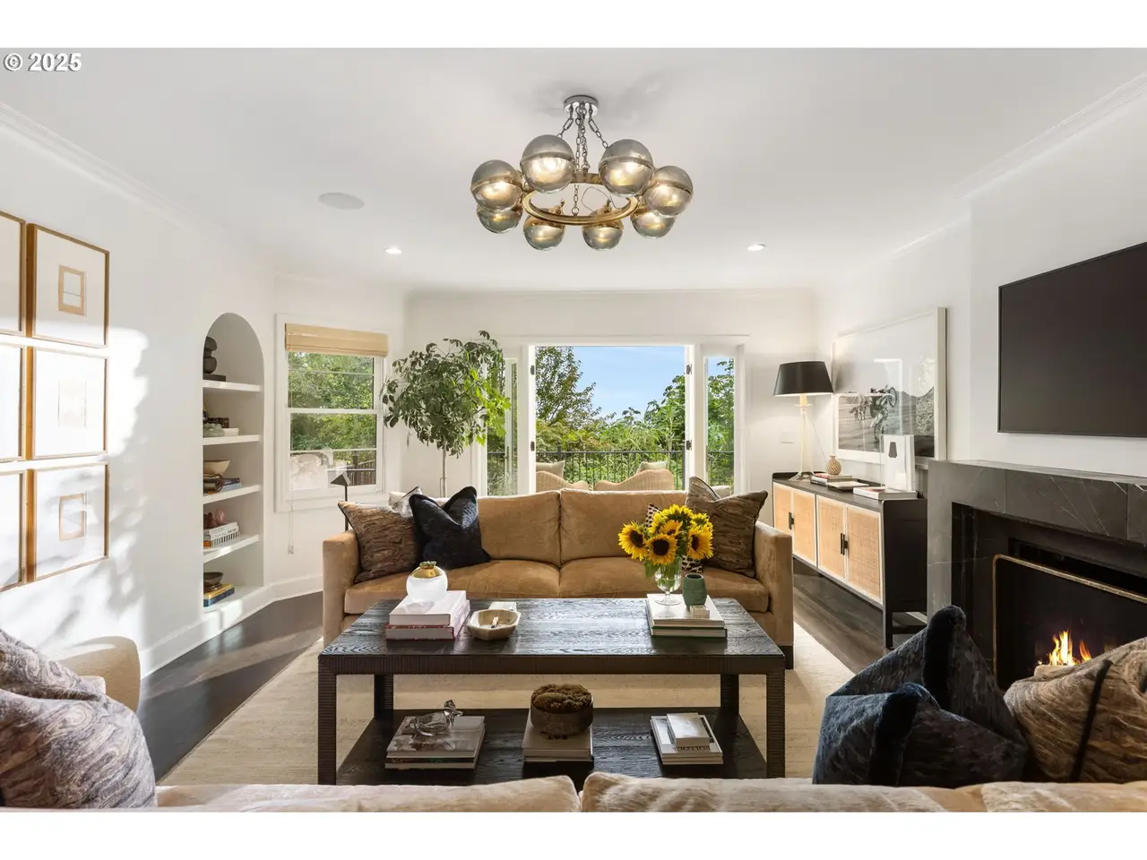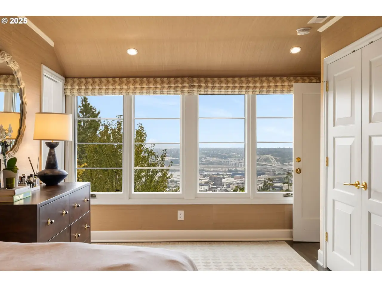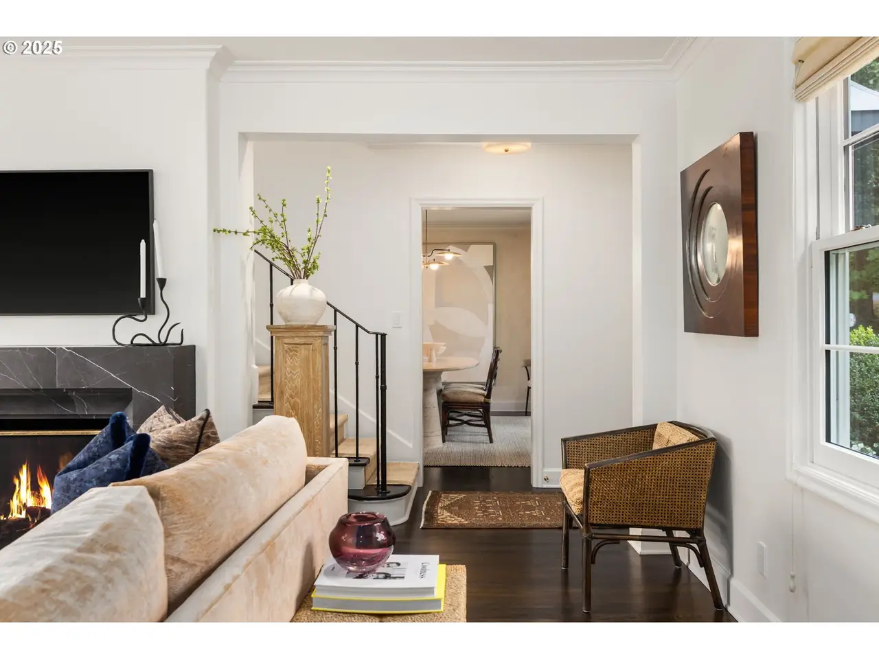 Experience timeless elegance reimagined. Perched in Portland's coveted Kings Heights, this 1939 traditional has been meticulously restored by Maison Inc. to the highest modern design standards while fulfilling the owners mission in honoring its original character. Sweeping city vistas frame Mt. St. Helens and Mt. Adams, setting the stage for refined living. Every detail has been considered: all-new plumbing, electrical, and Lutron-controlled lighting; custom cabinetry; and hand-selected finishes of the finest quality. The chef's kitchen showcases slab Calcutta marble, bespoke cabinetry, and a charming built-in dining nook. Venetian plaster walls in the formal dining room, a marble fireplace surround, and custom millwork lend warmth and sophistication. Thoughtfully reimagined for today's lifestyle, the living room opens to an expansive cedar deck with iron railing crafted to mirror the original design. Landscaped grounds feature smart irrigation, exterior lighting, and a gas fire pit line, creating an inviting outdoor retreat. A true testament to design and craftsmanship, this home blends classic tradition with modern luxury in one of Portland's most desirable neighborhoods. [Home Energy Score = 2. HES Report at https://rpt.greenbuildingregistry.com/hes/OR10199223]