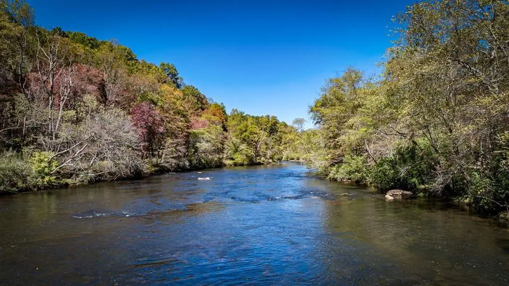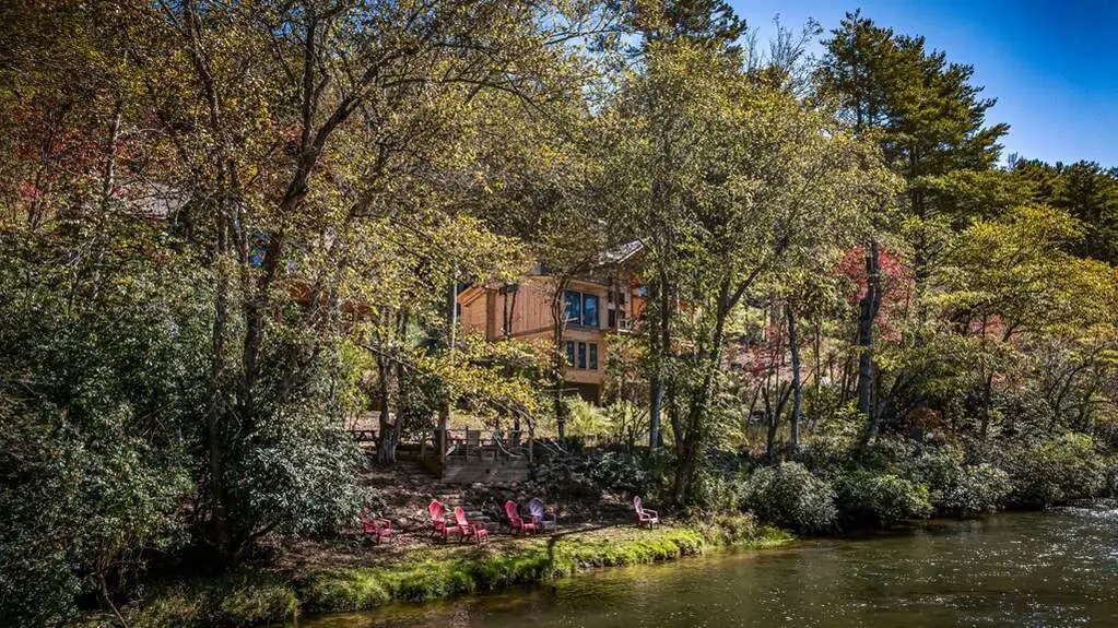 Carefully designed to bring you a luxurious river living experience, this newly constructed retreat is beyond captivating. You'll be greeted by the sounds and scenes of the glistening Toccoa River and quickly notice that this rustic yet elegant retreat was built with just that in mind. Both indoors and out you'll appreciate the balance of mixed materials that create a warm and relaxing environment. Outdoors you'll find two levels of covered decking that overlook the water complete with a stone fireplace on each level, along with access to the water's edge, and landscaping that has been thoughtfully planned to elevate first impressions. Indoors the modern finishes and rustic elements work together to bring you a cozy and stylish living space. The main level offers an open great room with soaring ceilings and a stone fireplace and leads right to the main level covered deck, the kitchen and dining area are just off the great room with fantastic prep and storage space, the primary suite which also features the washer and dryer, and additional ensuite. On the terrace level you'll find a secondary living room complete with wet bar and fireplace, as well as two additional bedrooms and bathrooms + flex/office space and access to the lower-level porch and to the water. This modern rustic showstopper is the ultimate space to entertain and sleep guests, yet when they're all gone it still offers an intimate feel. Other highlights include granite countertops, stainless appliances, tile showers, custom cabinetry, and more. You'll enjoy the best of both worlds - submerging yourself in the great outdoors and what the mountain and river life have to offer while also enjoying easy and quick access to amenities galore - it's just minutes to downtown Blue Ridge and McCaysville, Old Toccoa Farm Golf Club, Lake Blue Ridge, and more. This dreamy haven is one you don't want to let pass you by. It's all in the details at River Chase Way...