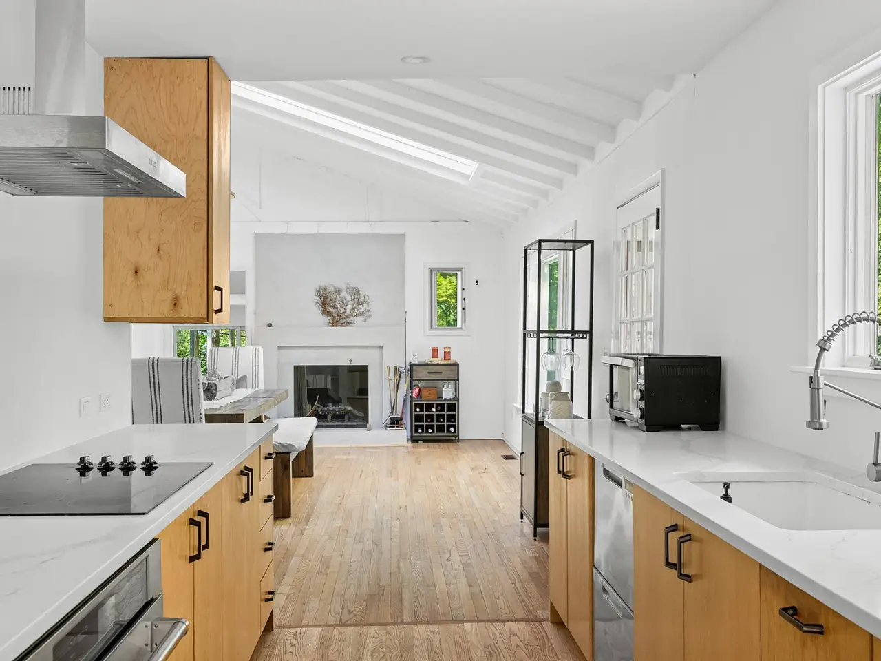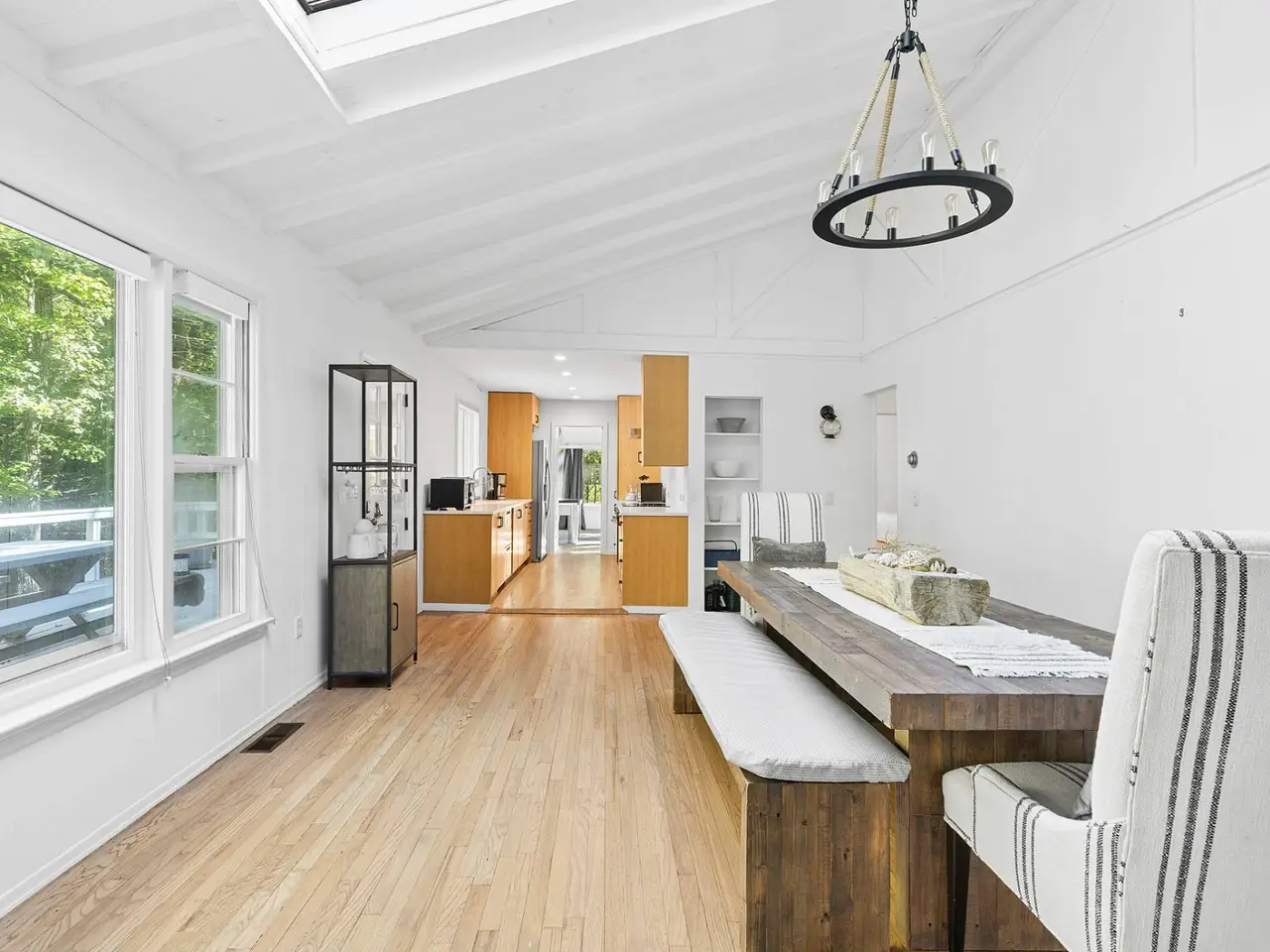 Set on desirable Whalebone Landing Road, this four-bedroom, two-bath home offers sweeping water views and effortless access to a sandy bay beach. This residence is designed for both relaxation and entertaining, with an open first floor layout that includes the kitchen, living room, guest bedrooms, family room, and expansive exterior decking. The second-floor private primary suite features a spa-like bath and its own outdoor deck, creating a secluded retreat within the home. Outdoors, there is ample room for a pool to complement the surrounding landscape. Just two properties to Little Peconic Bay. Perfectly located just minutes from Sag Harbor, Bridgehampton, and Southampton Village-without Route 27 traffic this home combines the serenity of bay access with the convenience to everything the Hamptons has to offer. A rare chance to enjoy sunsets, sandy shores, and the best of coastal living.