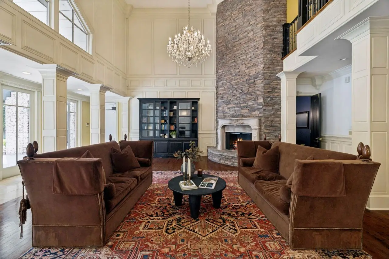 Welcome to Hilltop Manor, an architectural showpiece perched atop a scenic hill in Belle Rive, one of Brentwood's most established and desirable neighborhoods. Perfectly positioned at the end of a quiet cul-de-sac, this stunning estate offers unmatched privacy while being just minutes from top-rated schools, scenic parks, premier shopping, and Brentwood's finest dining. Light-filled and beautifully designed, this residence showcases detailed crown moldings, soaring ceilings, and elegant finishes throughout. The spacious floor plan is ideal for both everyday living and grand entertaining, with seamless indoor-outdoor flow and breathtaking views. A dedicated work-from-home study exudes sophistication and warmth, wrapped in rich Ralph Lauren-style wood paneling, custom built-in bookshelves, and timeless architectural details - a space that elevates productivity and inspires creativity. The formal dining room is equally impressive, evoking the pages of Veranda magazine with its refined elegance and inviting atmosphere, making it the perfect setting for memorable gatherings. The lower level serves as a complete retreat with its own full kitchen, media room, professional-grade recording studio, and private entrance - ideal for guests, extended family, or creative workspaces. For added convenience, a private elevator connects the lower level to the main floor, opening directly into the kitchen to make transporting groceries and daily essentials effortless. Luxury amenities abound, including a resort-style swimming pool and spa, lush professional landscaping, and a welcoming outdoor fireplace seating area designed for unforgettable evenings with family and friends. Combining timeless design, exceptional amenities, and an unbeatable location, Hilltop Manor is a rare opportunity to own a private oasis in the heart of Brentwood.
