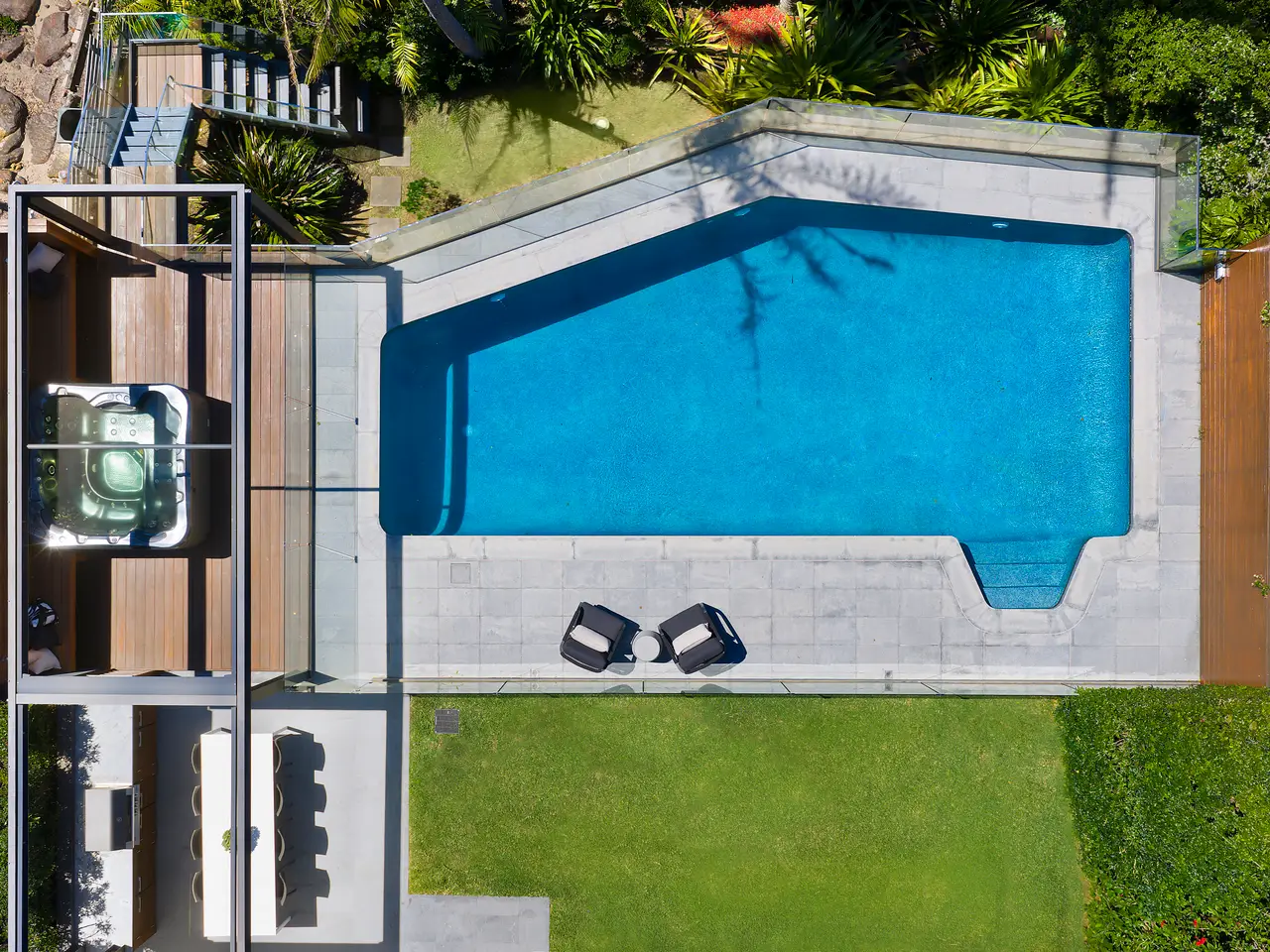 Masterfully designed and crafted to an impeccable standard, this north-facing home showcases refined craftsmanship, layered natural timbers and striking architectural form framed by sweeping valley and ocean vistas. Across five bedrooms, a home theatre, office and gymnasium, every detail reflects precision and a seamless harmony of comfort and sophistication. A series of luxurious entertaining zones evoke a private resort feel, flowing from the top-floor cocktail lounge to the alfresco balcony above the heated pool and the lower terrace with jacuzzi and outdoor kitchen, each setting the scene for your best summer yet. A place to savour golden afternoons and laughter that lingers, shaped by considered composition and contemporary refinement. Moments to village shops, schools, playgrounds, golf club, tennis courts, cinema and express city buses. - Architect-designed and crafted to an impeccable standard - North-facing with sweeping valley and horizon ocean vistas - Five bedrooms plus cinema room, office and gymnasium - Refined craftsmanship, layered natural timbers throughout - Striking dual gas fireplace and setup with ducted air-con - Glass-to-glass corner window, reading nook bench seat - Theatre room for movie/sports nights, bespoke cabinetry - Breakfast bench, mirrored splashback, two dishwashers - Zip tap, microwave oven, warming tray, Vintec wine fridge's - Five spacious bedrooms, desks, built-ins and ceiling fans - Master suite with walk-in robe, ensuite, unfolds to balcony - Waterfall shower, heated rails and underfloor heating - Multiple entertaining zones with a resort-style ambience - Top-floor cocktail lounge capturing panoramic views - Alfresco balcony with vergola, set above the heated pool - Lower terrace with six-person spa and outdoor kitchen - Custom 800-bottle wine cellar, wet bar and beer fridge - Alfresco with built in BBQ's, auto shades, water irrigation - Home gym/Pilates studio with gym floor and vgroove detail - Solar, under house storage, comms room and alarm system - Double automatic lock-up garage with handy internal access - Enjoy the ease & practicality of two extra off-street parking - Moments to village shops, schools, playgrounds and beaches - Close to golf club, tennis courts, cinema and express buses