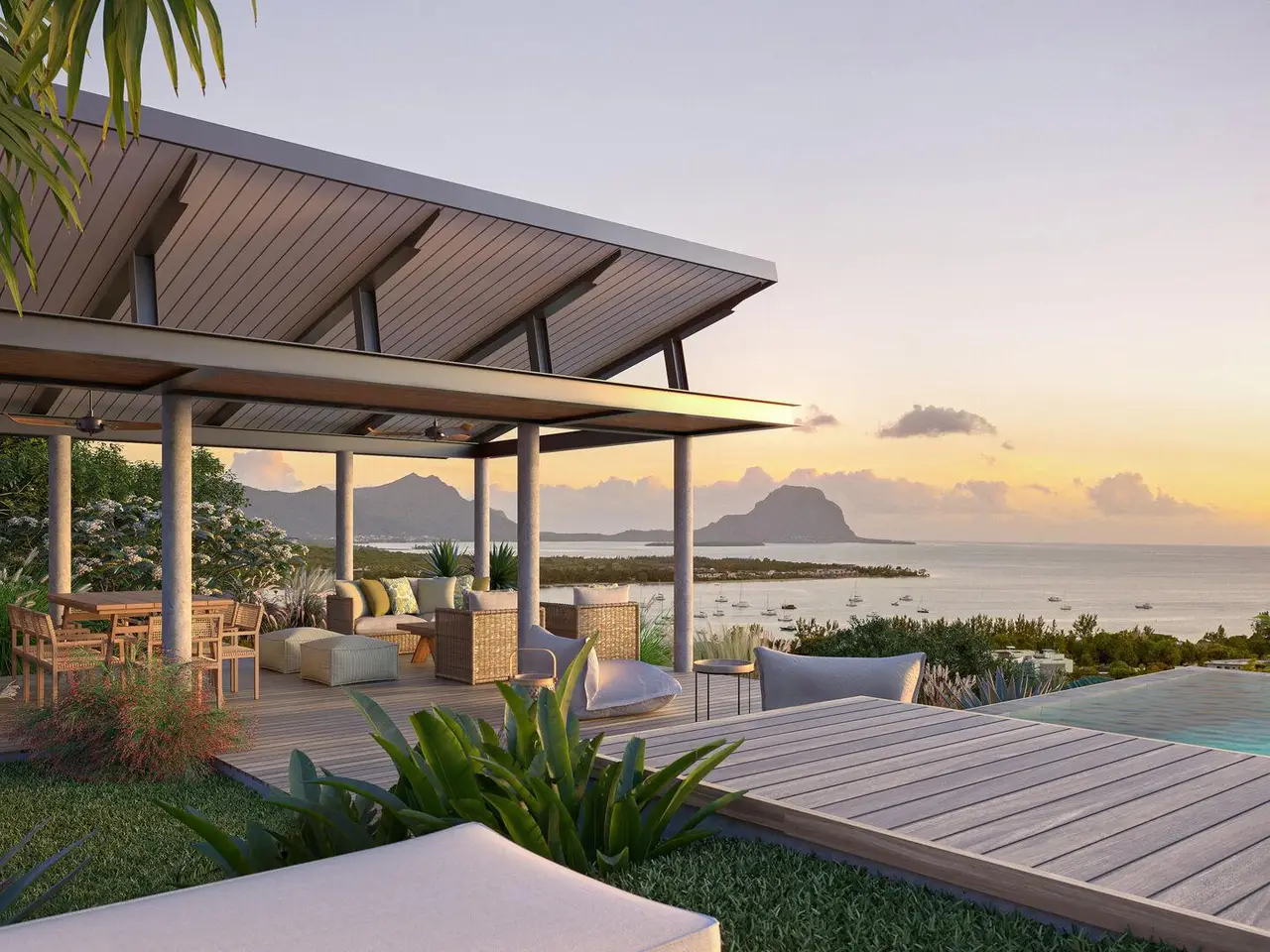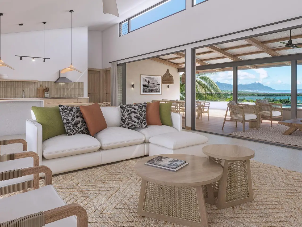 Discover the sumptuous 213 m² Blue Vista villas, located in an exceptional setting at Rivière Noire. These prestigious residences combine space, comfort and refinement, offering an ideal living environment for families and luxury lovers. The Blue Vista villas have four bedrooms, each with high quality finishes and large windows that flood the spaces with natural light. In addition to the bedrooms, each villa has a practical study, ideal for teleworking or creating a quiet reading space. A storeroom and blind add extra storage space, making day-to-day organisation easier and keeping the living spaces uncluttered and functional. The lounge and dining room provide a spacious, light-filled setting, perfect for family time or entertaining friends. The modern, fully-equipped main kitchen opens onto the living space, creating a friendly, welcoming atmosphere. A practical scullery provides extra space for preparation and storage. The villas benefit from 255 m² of private outdoor space, carefully landscaped to create an exceptional outdoor living environment. A 41 m² covered veranda lets you enjoy alfresco meals sheltered from the sun, while the pool and its decked terrace invite you to relax and socialise. A kiosk and barbecue area complete the space, perfect for outdoor entertaining and evenings out with family and friends. For added convenience, each villa also has a backyard, a carport and a separate rubbish bin, ensuring a clean and well-organised environment. The landscaped garden flows harmoniously around the project's four villas, creating a soothing green setting that respects the island's natural beauty. The Blue Vista villas are designed to offer a perfect balance between luxury and functionality. Cleverly integrated storage spaces, practical amenities and optimum site security ensure total peace of mind for you and your family. Blue Vista's 213 m² villas represent the very essence of luxury and comfort. With spacious interiors, high quality finishes and an exceptional private outdoor setting, these residences offer a unique and incomparable living experience. Living at Blue Vista means choosing a prestigious lifestyle in a magnificent natural environment. Discover the serenity and comfort of the Blue Vista villas and let yourself be seduced by this unique and prestigious location.