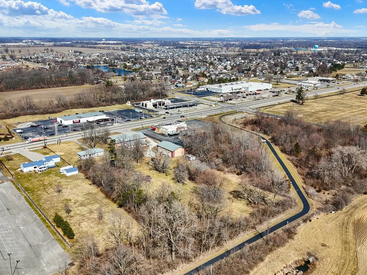 Great commercial location on the west side of Greenfield offering 1.979 acres. Parcel offers a well kept 1296 sq home along with a 3 car attached garage and a 1 car detached garage. The current structures could be used for multiple situations plus there's plenty of space for additional development. Parcel sits immediately east of a 9 screen theater and within a close proximity to multiple car lots, other commercial uses and residential developments. Zoning is National Road which allows for broad range of commercial uses including residential with commercial uses, multi-family, retail, grocery, restaurants, studios, health studios, spa, garden centers, professional offices, financial services, convenience stores, auto wash, auto service and repair, auto sales, auction facilities, self storage, commercial parking, manufacturing and additional uses (some require board of zoning approval and or development plan approval).