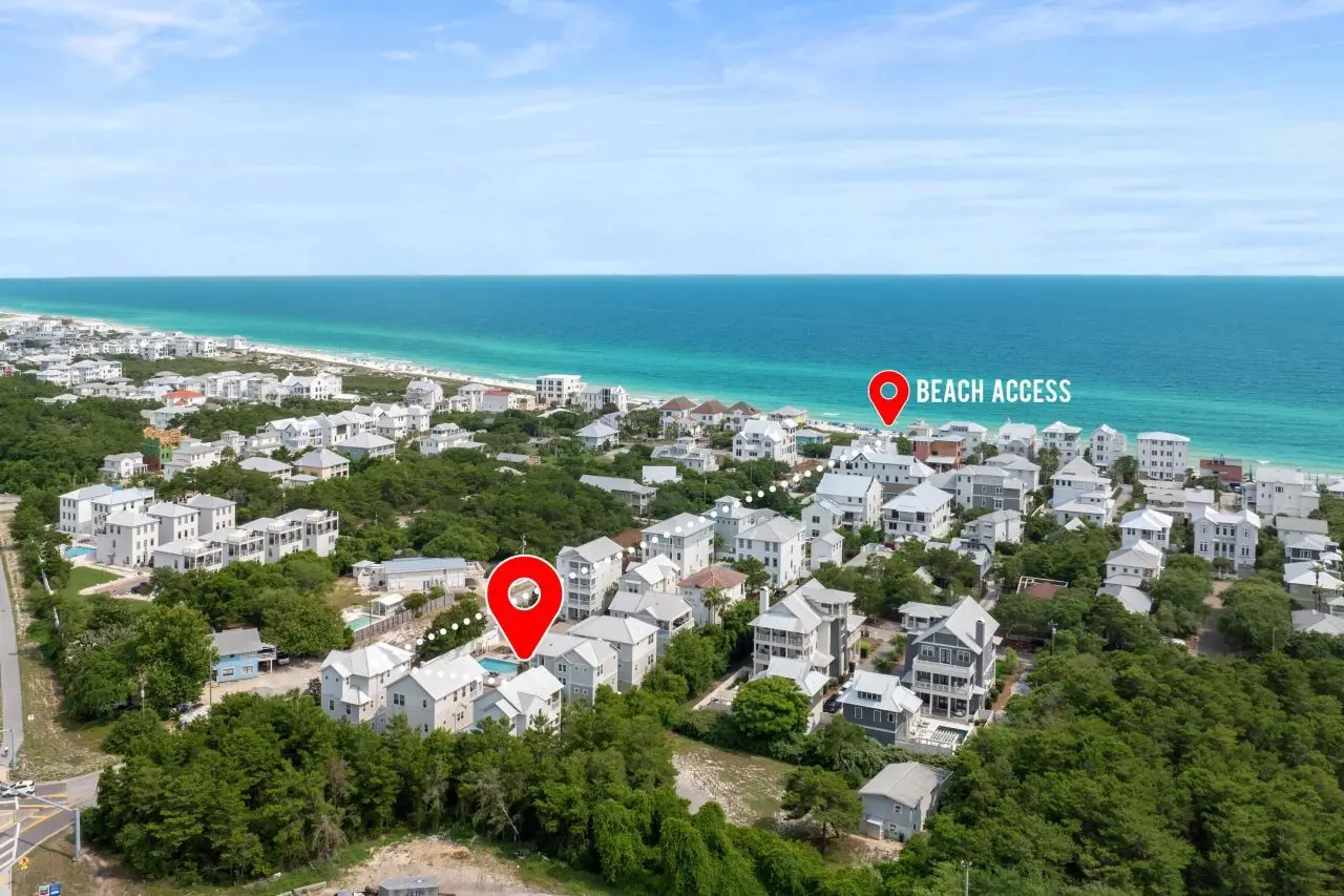 Located just 2 blocks from Wall Street Public Beach Access - a quiet, foot- and bike-only entryway to one of 30A's least crowded beaches. This 4BR/4BA home features 3 king bedrooms and a bunk room with a queen + twin-over-full. Enjoy a heated community pool, private top-floor grilling patio with peek-a-boo Gulf views, and stunning sunsets. Walking distance to 30Avenue and Rosemary Beach shops and dining. Excellent rental and investment opportunity!