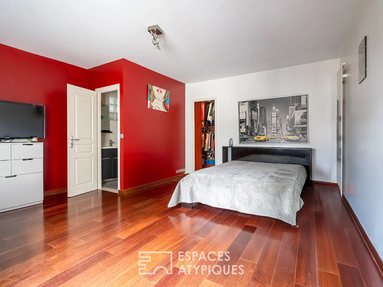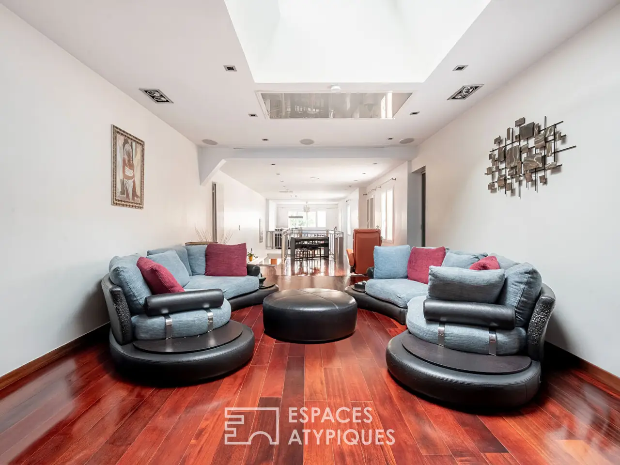Located in the sought-after Viselets district of Nogent-sur-Marne, resulting from the renovation of a former printing house, this contemporary 214 sqm loft seduces with its bold architecture and spectacular volumes. In a small co-ownership of 4 lots, behind a discreet facade, the tone is set: space, light, and comfort dominate, announcing a place designed to combine design, conviviality, and serenity.The vast reception hall, rare for a loft, reveals generous volumes and fluid circulation. A true backbone of the place, it connects the different spaces by an elegant central staircase that highlights the high ceilings and the verticality typical of this type of habitat.A first landing, bright and soothing, serves as a reception lounge or reading corner and can easily become an intimate reception area.One level higher, the light intensifies thanks to a superb skylight in the roof, providing zenithal brightness throughout the day. This natural addition enhances the interior architecture and guides you to the heart of the loft.The main living area then opens up in all its splendor: a vast volume combining the living room, dining room, and contemporary fitted kitchen. The magnificent central island, a true pivot of the space, brings family and friends together around a modern shared space. The pellet stove, both efficient and aesthetic, creates a warm and friendly atmosphere.On this same level, a modular space offers the possibility of easily creating a third bedroom or a separate office as needed. The loft also includes two superb master suites, designed to offer everyone comfort and privacy. The first has its own shower room, while the second comes with a spacious bathroom and toilet. Between the two, a large shared dressing room creates an elegant and functional link, ideal for an organized and refined daily life.A laundry room, hidden behind a sliding door, ensures practical organization of daily life, while a separate toilet completes this floor with elegance and functionality.An interior driveway allows you to park a vehicle in complete peace of mind.Located on a quiet street, close to schools, shops and only a ten-minute walk from the RER A of Nogent-sur-Marne, this property benefits from a privileged living environment, rare in the heart of the city.A successful combination of spectacular volumes, quality materials and a soothing atmosphere, this loft perfectly embodies the spirit of atypical real estate in Nogent-sur-Marne.A unique place, designed to create a real crush.RER A Nogent-sur-Marne: 10 minutes on footSchools: 2 minutes on footShops: 5 minutes on footREF. 13185Additional information* 4 rooms* 2 bedrooms* 1 bathroom* 1 bathroom* Parking : 1 parking space* 4 co-ownership lots* Property tax : 3 700 €* Proceeding : NonEnergy Performance CertificatePrimary energy consumptione : 291 kWh/m2.yearHigh performance housing*A*B*C*D*291kWh/m2.year9*kg CO2/m2.yearE*F*GExtremely poor housing performance* Of which greenhouse gas emissionsb : 9 kg CO2/m2.yearLow CO2 emissions*A*9kg CO2/m2.yearB*C*D*E*F*GVery high CO2 emissionsEstimated average annual energy costs for standard use, indexed to specific years 2021, 2022, 2023 : between 4880 € and 6660 € Subscription IncludedAgency feesThe fees include VAT and are payable by the vendorMediatorMediation Franchise-Consommateurswww.mediation-franchise.com29 Boulevard de Courcelles 75008 Paris