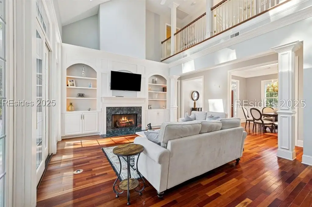 Step inside and feel instantly at home in this beautifully designed home offering the perfect blend of space, flexibility, and character that today's buyers are looking for. Featuring 4 bedrooms, 4.5 baths, a private office, bonus room, and a 3-car garage, this thoughtfully planned home delivers comfort and function in every corner. The spacious gourmet kitchen opens to a charming family room, creating an ideal setting for entertaining or everyday living. Impressive 20-foot ceilings in the living room, custom built-ins, expansive storage, multiple pantries, and walk-in closets showcase the meticulous attention to detail from the collaboration between the owner/designer and a premier local builder. Enjoy long, picturesque views of the 14th hole of The Indigo Run Golf Club with protected wooded vistas beyond. Updates include a new roof in 2024, fresh interior paint, new Café Series oven and dishwasher, custom built-ins in the primary closet, and a landscaping refresh for enhanced curb appeal. Nestled in the highly sought-after Golf Club community of Indigo Run, this home offers both privacy and convenience - 10 minutes to shopping, dining, and Hilton Head's beautiful beaches. Discover a home where craftsmanship, comfort, and location come together seamlessly.