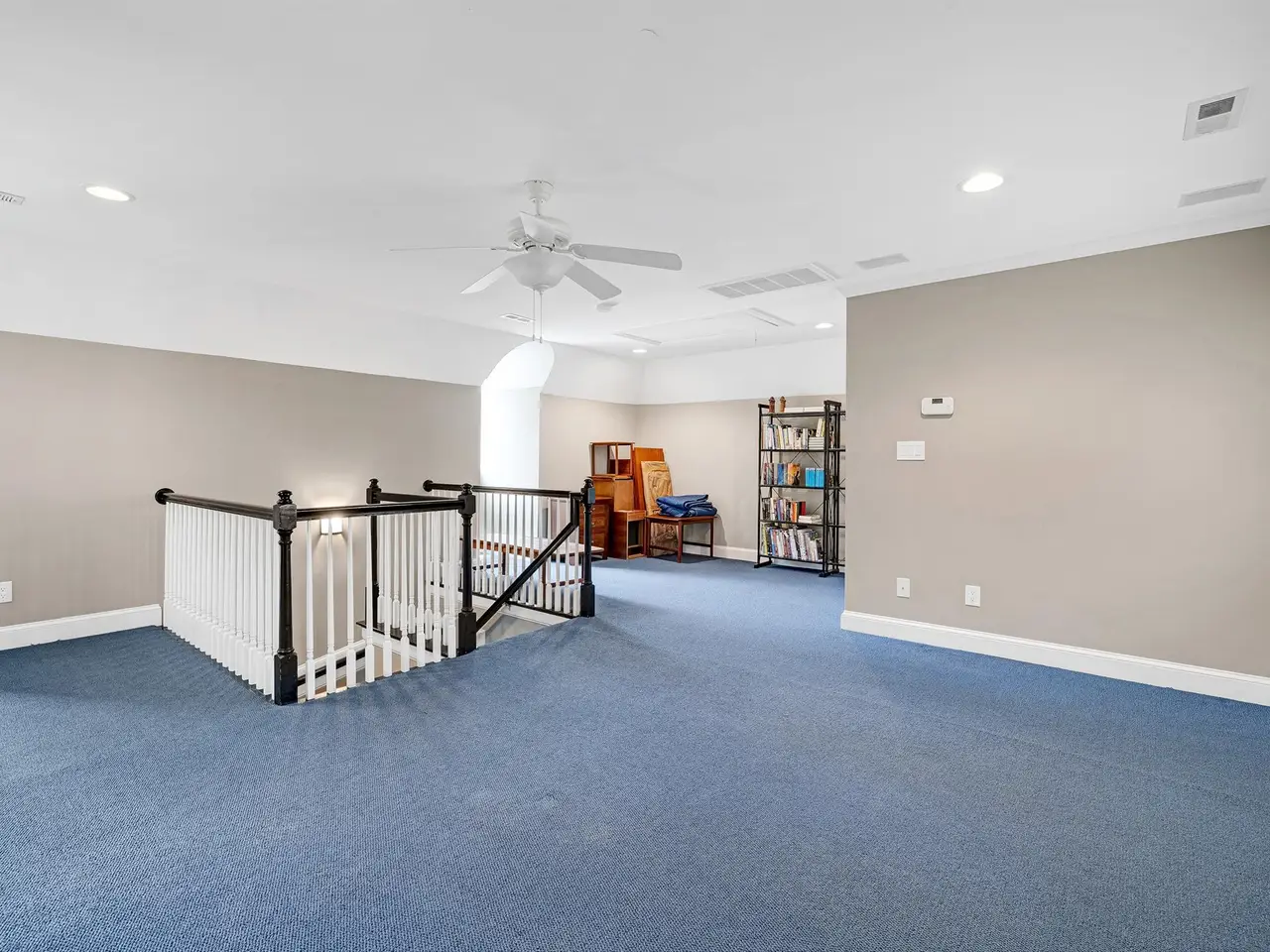 Versatile living/billiards room with built-ins