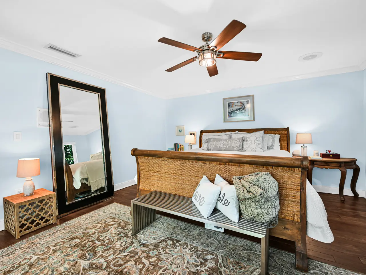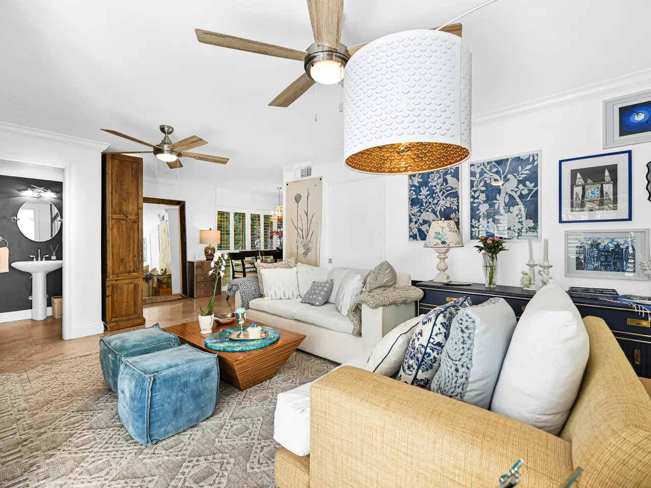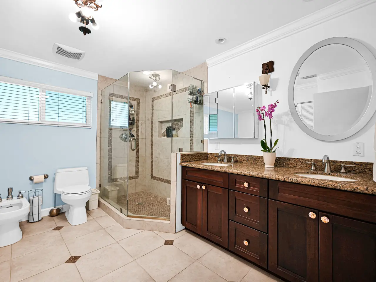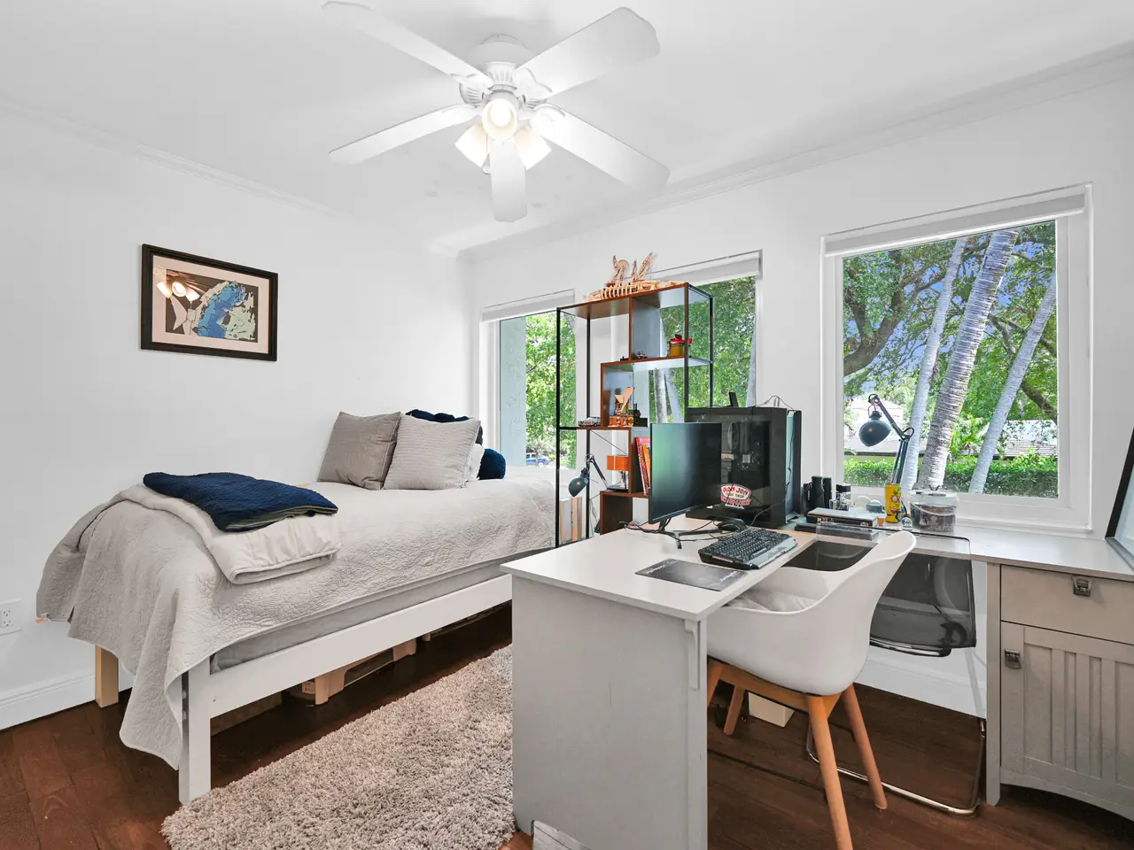Located on a lush, tree-lined corner lot in Coral Gables, this beautifully updated mid-century modern home offers a perfect blend of timeless design and everyday comfort. A double-height entry and floating staircase set the tone for light-filled interiors with warm wood floors, crown molding, and plantation shutters. The home features formal and casual living spaces ideal for entertaining. The upstairs suite includes a private balcony and a spa-inspired bath, while the additional bedrooms provide ample space for family, guests, or home offices. Portion of the garage has been converted into a fifth bedroom, perfect for use as maid or in-laws quarters. Just minutes from top-rated schools, parks, and the best of Downtown Coral Gables, this elegant residence offers style, space, and privacy.
