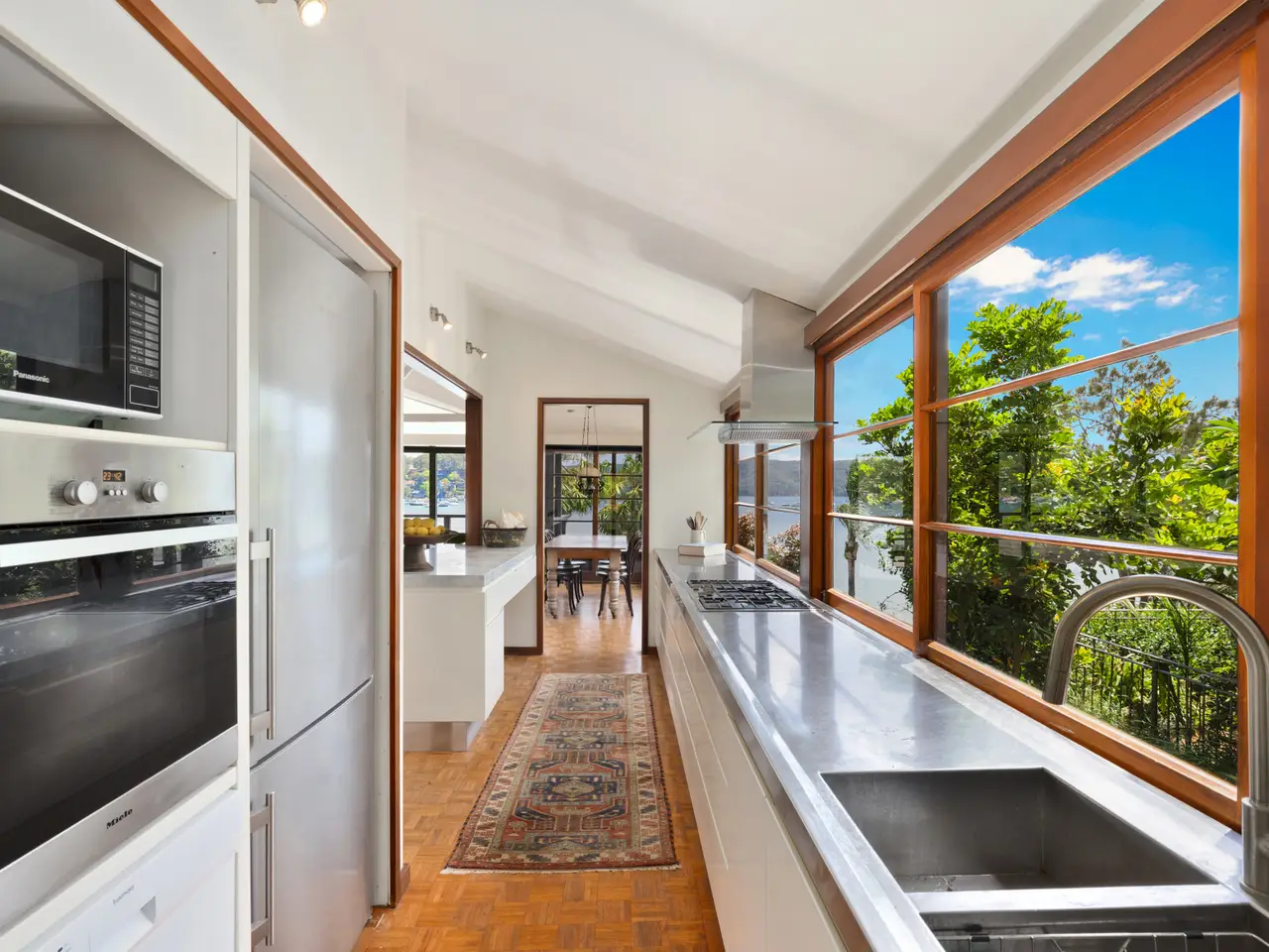 Par excellence. It's not a term to throw around lightly, but this waterfront beauty is well-deserving of the title; architecturally designed by Geoffrey Watson, the home is at once earthy, simple and luxurious. The interiors are framed by polished timber, sandstone and glass; these organic textures combine with its clean, uncluttered lines as a complement to the stunning Pittwater backdrop. Vast banks of mullioned doors open the home entirely to waterfront decks, resort-style pool and finished boathouse. An impressive entertainer, the gleaming chef's kitchen features a polished marble island and stainless steel benchtops, Miele appliances plus butler's pantry; the lower level is fully self-contained and perfect for weekend guests – it's also DA approved as a fulltime or holiday rental. In addition, the boathouse and its surrounding deck and lawns are an absolutely captivating spot for entertaining, right on the waterfront. - Stunning design, inside and out; polished timber and sandstone - Privately sited on the waterfront parcel; dazzling Pittwater views - Fluid, open layout, mullioned sliding doors to the expansive decks - Ground level is a fully self-contained suite offering dual entrances - Streamlined kitchen with butler's pantry and European appliances - Enormous saltwater pool, level lawns, guest suite in the boathouse - DA approval for dual-occupancy or holiday letting on lower level - Master with ensuite and deck access; all bedrooms include built-ins - Finished studio under the double garage + ample offstreet parking - Wood fireplace, parquetry and hardwood floors, Japanese soak tub - Exquisite sandstone pathways and terraces right to the waters' edge