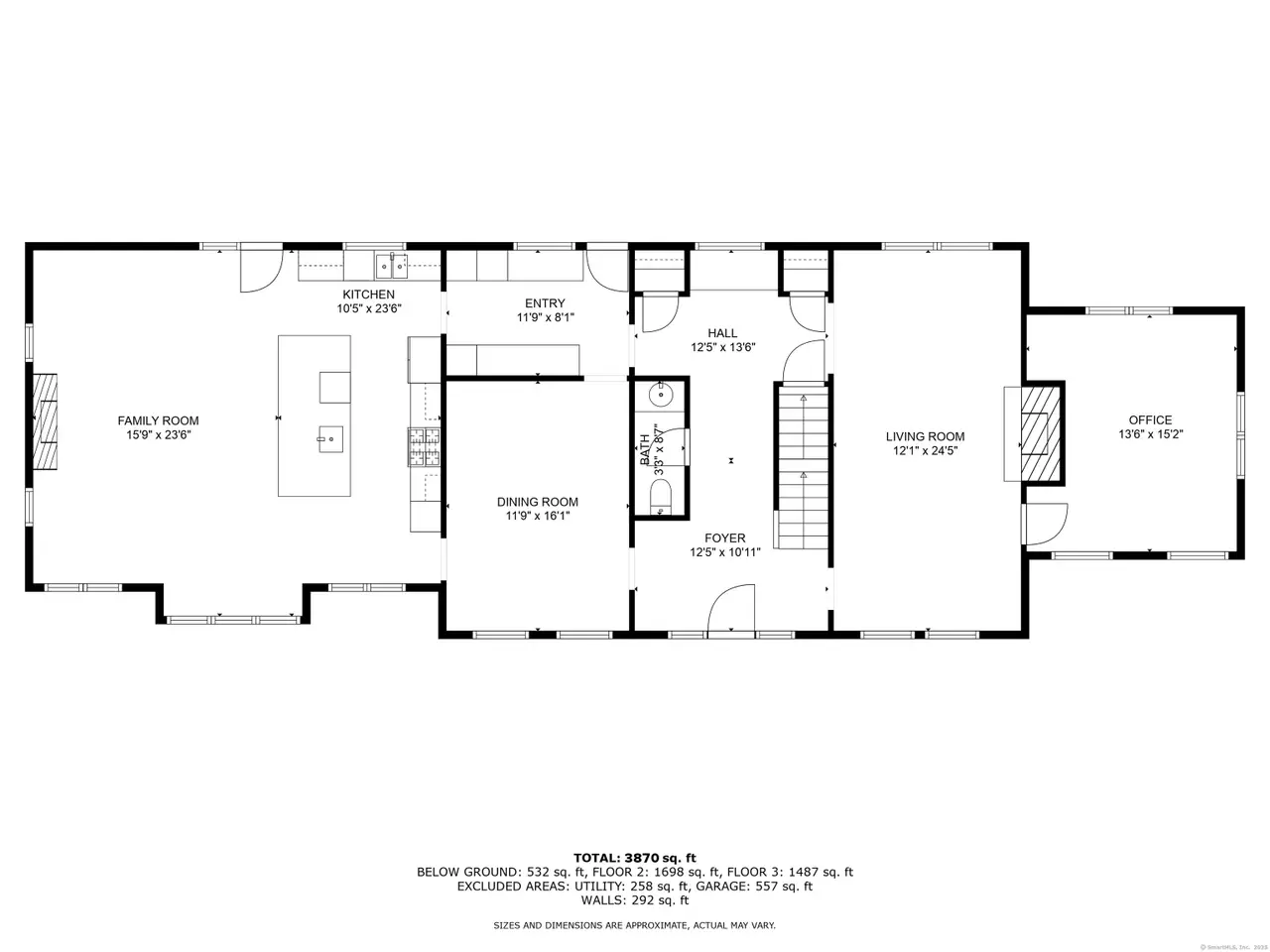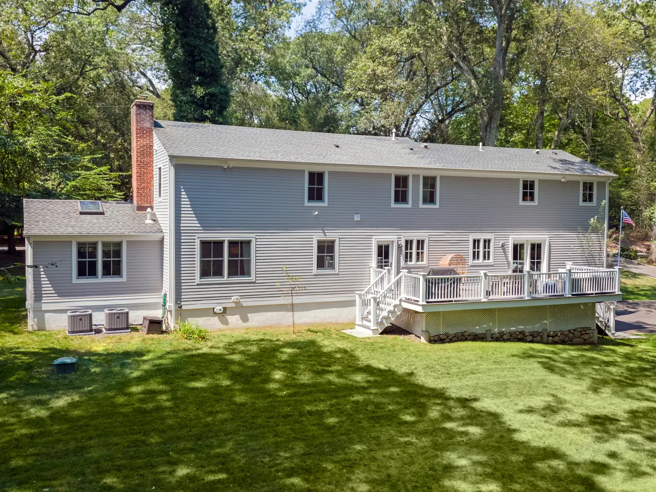 This beautifully renovated colonial, rebuilt in 2019, offers a perfect blend of classic charm and modern luxury in a highly sought-after neighborhood. Live the dream. Seamless Open Concept: The heart of this home is the expansive kitchen, breakfast nook, & family room combination, bathed in natural light and anchored by a cozy fireplace. Perfect for both casual living & grand entertaining, this space boasts a center island, ideal for gatherings. A dedicated service pantry adds convenience and elegance to your entertaining endeavors. Classic & Sophisticated: A traditional living room, also featuring a fireplace, offers a welcoming space for relaxation, while the formal dining room sets the stage for memorable meals. Work & Rest in Style: A main-floor office with a vaulted ceiling provides a private and inspiring workspace. Unwind in the tranquil and luxurious owner's suite, complete with a vaulted ceiling, a spacious ensuite bathroom with a soaking tub, and a generous walk-in closet. Family Fun: The lower level offers a versatile playroom, providing extra space for recreation and relaxation. Outdoor Paradise: Enjoy the privacy and beauty of a large deck overlooking the level back yard perfect for outdoor activities. A storage shed and swing set add convenience and fun for the whole family. This colonial blends modern amenities with classic charm, offering the perfect blend of luxury and comfort in a highly sought-after location. Don't miss out on this incredible opportunity. Move-in Ready: No need for renovations or updates - this home is meticulously maintained and updated. Dream Kitchen: The expansive kitchen/breakfast/family room combination is a true showstopper, boasting a bright and open floor plan, a cozy fireplace, a central sitting island perfect for casual meals or entertaining, and a convenient service pantry. Formal Entertaining: A classic living room with its own fireplace and a separate formal dining room provide elegant spaces for entertaining guests. Dedicated Workspace: Enjoy the convenience of a main floor office featuring a stunning vaulted ceiling, creating a spacious and inspiring work environment. Luxury Owner's Suite: The tranquil and luxurious owner's suite is a private retreat, featuring a vaulted ceiling, a full en-suite bathroom with a relaxing soaking tub, double sinks, and a spacious walk-in closet. Lower Level Fun: A finished playroom on the lower level provides additional versatile space for recreation or hobbies. Outdoor Oasis: The property boasts a great level front and back yard, perfect for outdoor activities, complete with a convenient storage shed and a swing set. Neighborhood Appeal: Colonial homes are particularly popular in the Northeast & this home's prime location in a desirable neighborhood makes it even more attractive. This property offers a fantastic combination of classic style, modern amenities, and a sought-after location, making it an ideal choice.