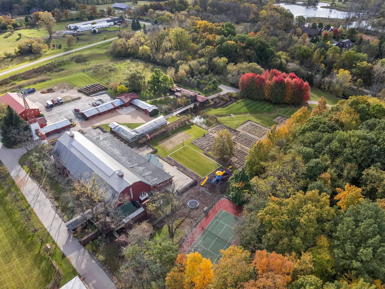 The Retreat at Turtle Point is an extraordinary blend of architectural design and a peaceful setting, creating a private oasis that is only 7 minutes from the City of Ann Arbor. This one-of-a-kind estate features 3 custom homes including a main residence, in-law quarters, and a caretaker's house, plus: a full rec building, ice rink, pavilion, greenhouse, and various outbuildings. Frank Lloyd Wright-inspired main home w/ nearly 10,000 SF of exceptional living leaves no detail spared. The rec building houses a full sports court, indoor pool, fitness center, racquetball court, spa, sauna, hot tub & game room. This serene retreat is designed for maximum enjoyment & entertainment & offers the lifestyle of a private resort. Additional acreage, including a golf course & riding arena could be available.