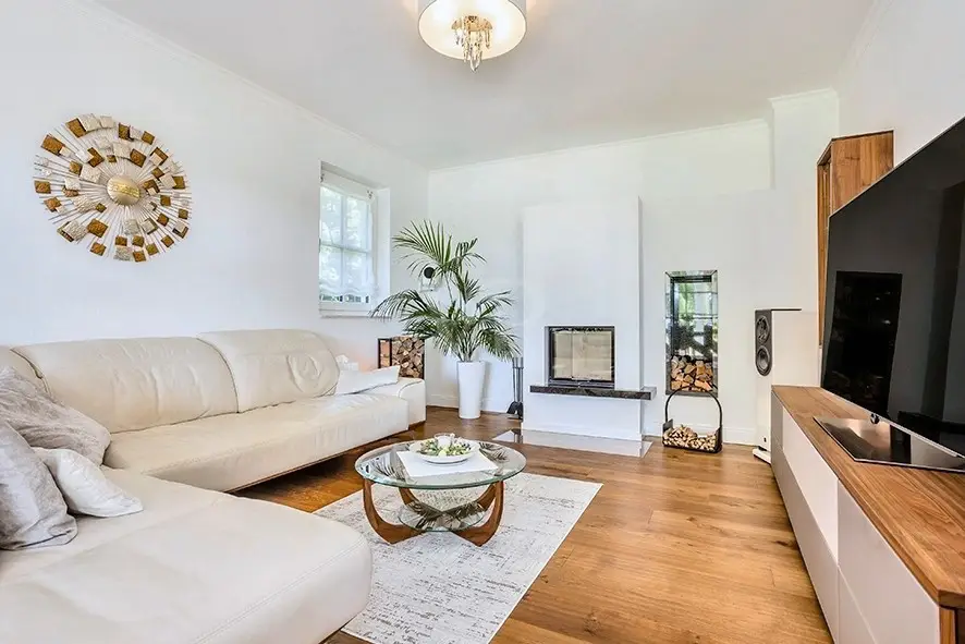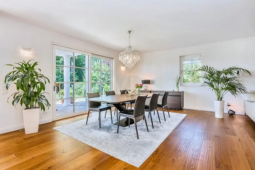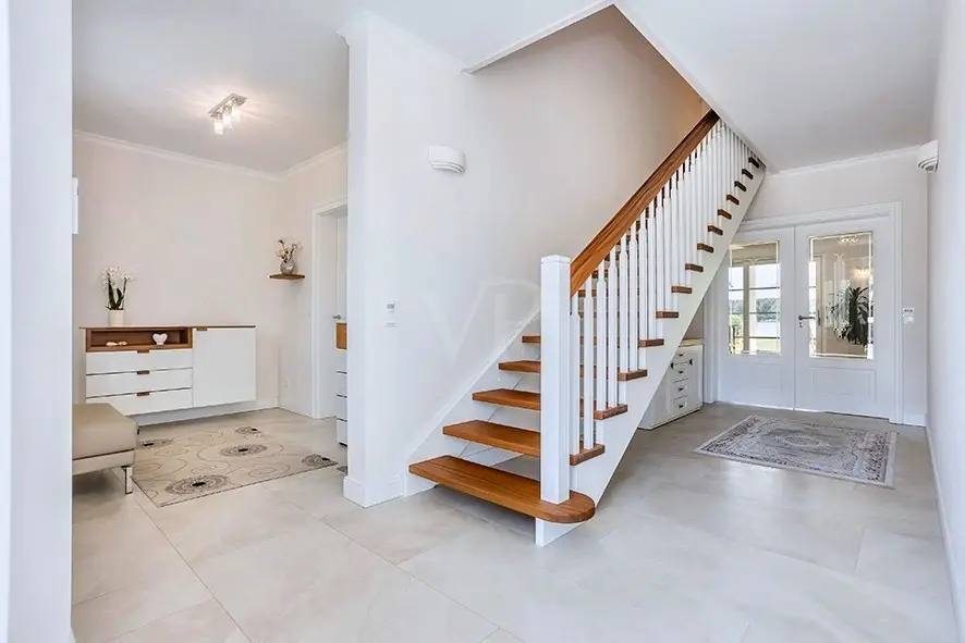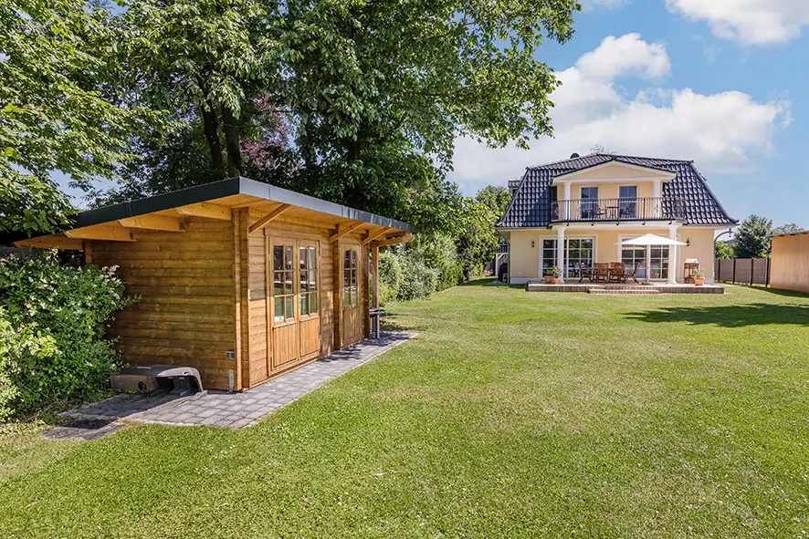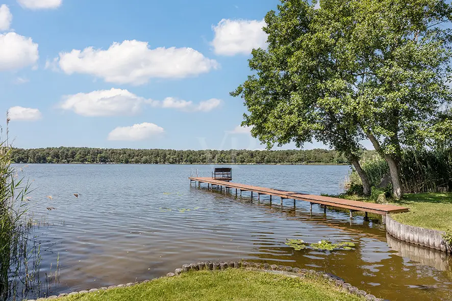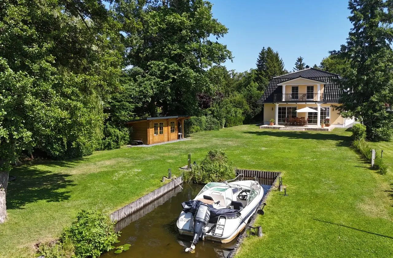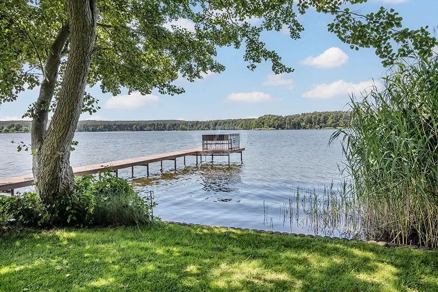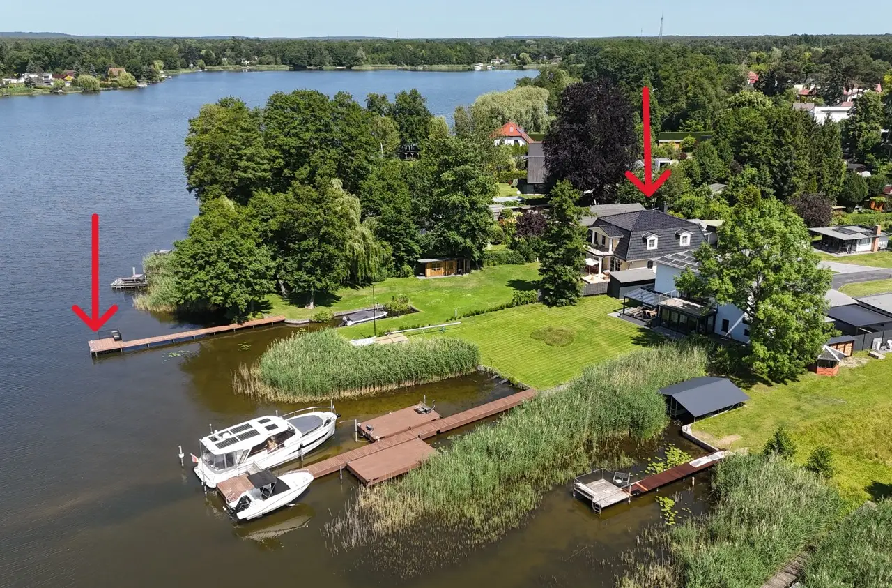 A special property on the HALBINSEL! A high-quality villa with direct access to Lake Schwerin is being sold on a unique lakeside property. The property is in a prime location on the Teupitz and Schwerin chain of lakes, making it one of the top lake locations on Berlin's federal waterways. The villa was built in 2021 in solid construction as a permanent residence for an entrepreneurial family. At the time, the owners paid great attention to the energy efficiency and high-quality furnishings of the property. As soon as you enter the entrance hall, you can see directly through the bright living area to the garden and Lake Schwerin. Floor-to-ceiling windows facing the lake create an incredible atmosphere on the first floor and second floor. You are welcomed here with a feeling of freedom, openness and sunshine. Many high-quality details have been incorporated into the property, such as the attractive real wood staircase in the entrance area. To the left of the entrance is a spacious checkroom area and the utility room with access to the kitchen. To the right is the tasteful guest WC with shower. The entrance hall leads directly into the bright living room with an open fitted kitchen, lounge and entertainment area with a fireplace. Direct access to the house's large lakeside terrace is possible from the living room. A high-quality fitted kitchen with all electrical appliances has an open design and offers a wonderful opportunity to enjoy cooking with family and friends as an event. The direct connection to the lakeside terrace creates an excellent connection. The upper floor has three bedrooms and a master bathroom with a large shower, double washbasin and WC. Two children's rooms and a bedroom have been designed here. A special highlight is the large balcony with lake view, which can be accessed from both sides of the bedroom and children's room. High-quality fittings throughout the interior design, whether in the fitted kitchen, the bathrooms or the sanitary ceramics, ensure a stress-free move into the property. Nothing needs to be done, everything is perfect. The current owners have attached great importance to high-quality and correct construction.
