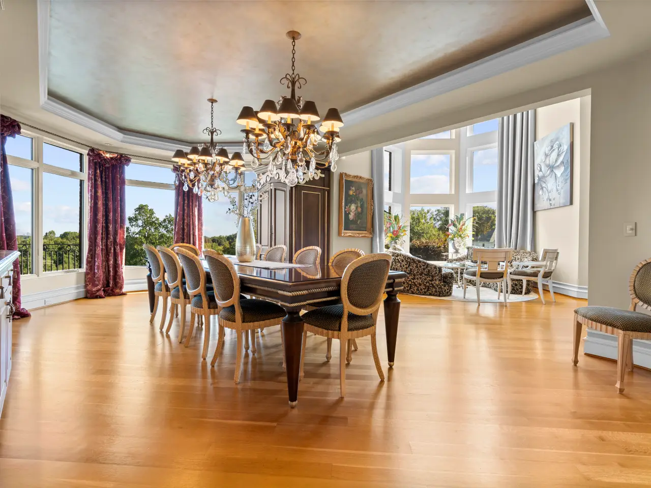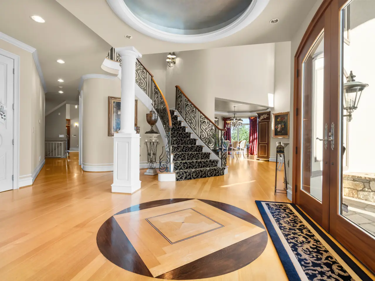 A true masterpiece of architecture and design, this one-of-a-kind estate commands attention from every angle. Perched in an exclusive enclave, the residence boasts breathtaking, unobstructed views of the Hartford skyline, offering a rare combination of elegance, privacy, and city vistas. The stately brick exterior, accented by soaring turrets and expansive walls of glass, exudes timeless grandeur. By day, the home is filled with natural light that pours through oversized windows, while by night, dramatic architectural lighting transforms the estate into a glowing landmark. Inside, craftsmanship meets modern luxury at every turn. The grand foyer makes a striking first impression with intricate inlaid flooring, sweeping staircase, and custom ironwork. Multiple living areas showcase floor-to-ceiling windows framing skyline views, while the gourmet kitchen is a chef's dream, outfitted with rich custom cabinetry, premium appliances, and granite counters. Designed for both intimate living and large-scale entertaining, the home features a lower-level entertainment suite complete with stone archways, a full bar, and game room. Luxurious bathrooms, elegant finishes, and curated design details elevate every space. Outdoor terraces and balconies extend the living experience, perfect for morning coffee with city views or evening gatherings under the stars. This estate is not simply a home-it's a statement. One of one.