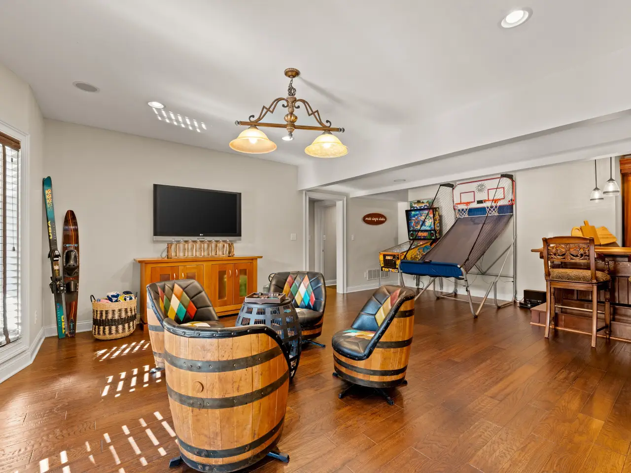 Welcome home to your Entertainers Dream! This ONE of ONE custom residence is a true showpiece, complete with a DEEDED BOAT DOCK with a LIFT, Indoor Basketball Court, Gunite Swimming Pool, and a prime location on a quiet CUL-DE-SAC in the coveted Cambridge community. Welcome to 13637 Golden Ridge Lane in Geist. The main level welcomes you with a Private Study, an Elegant Dining Room, and a Soaring Great Room anchored by 1 of 3 fireplaces. The Remodeled Kitchen features stunning cabinetry, a Center Island, and flows seamlessly into the Hearth Room for gatherings. The Luxurious MAIN-LEVEL Primary Suite is a retreat of its own, offering a Fireplace, Deck Access, Spa-Style bath, and not 1 but 2 Walk-in Closets. Upstairs, discover a Versatile Loft, three additional bedrooms with convenient bath access, one boasting a private deck, and another showcasing a Unique INDOOR BASKETBALL COURT and study area-perfect for active lifestyles. The Walkout Basement is an Entertainer's Paradise in and of its self. With a Full Bar, Billiards area, Theater room, Exercise Studio, a 5th bedroom with private bath, and a 6th bedroom which can be transformed into a Bonus/Playroom. The Outdoor Living Spaces are Absolutely Unmatched. Featuring A Freshly Remodeled Pool Deck, an Outdoor Bar/Kitchen with Gas Grill to match, Cozy Fire Pit, and Multiple Lounge Areas that capture the Beauty of the Private Homesite. Along with the home, the sellers are also offering for sale a 2021 Axis Surf Boat (perfect for enjoying Geist Lake just steps away) and an Electric Golf Cart for neighborhood or lakefront cruising-making this property the COMPLETE PACKAGE for recreation and relaxation. And a prime location on a quiet CUL-DE-SAC in the coveted Cambridge community. There's No Place Like a New Home at Geist!