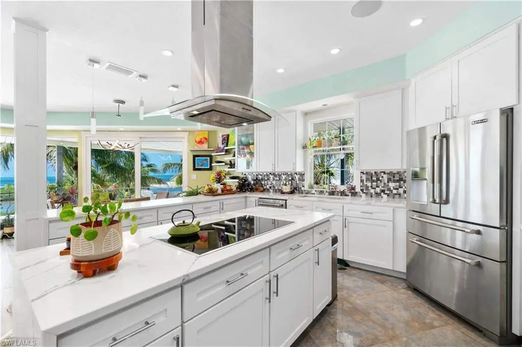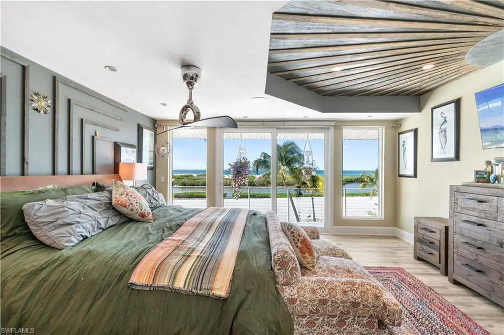 Beautifully renovated direct beachfront home on South Estero Island with breathtaking Gulf views! Sits on a rare stretch of beach with an ultra-private backyard with no passersby to be seen, providing optimal privacy. This 4 bed/4.5 coastal delight has been completely remodeled and features a NEW METAL ROOF, Generac whole house generator (2021), 2 new HVACS (2020), new instant water heater (2020), hurricane impact windows/sliders throughout, and new interior staircase. Step outside onto your open-air wraparound balcony and enjoy endless views of the turquoise waters of the Gulf of Mexico. Stunning chef's kitchen contributes to the wide-open floor plan and offers custom-built white cabinetry, gorgeous white quartz countertops, waterfall island, walk-in pantry, and new high-end Jenn-Air appliances (2020) including double ovens and induction cooktop. The spacious primary bedroom is a tranquil haven with floor to ceiling windows/slider to fully indulge in the Gulf views and has a spa-like bath with dual vanities, large jetted soaking tub, and separate walk-in shower with multiple shower heads. The top floor is perfect for a private guest wing or an extra bonus room with an ensuite bathroom and top floor sun deck for picture-perfect sunsets over the Gulf. Just steps from the beach, your outdoor oasis awaits - featuring a fenced-in heated saltwater pool and spa, along with a brand-new summer kitchen ideal for poolside dining and sunset entertaining. Other features include a Lutron lighting system, Savant sound system upstairs, tile flooring, and coffered ceiling details. This is a fantastic vacation home or investment opportunity located in a weekly rental zone allowing for maximum rental income if desired! Perfectly situated on the coveted South-end of Estero Island near Lovers Key, Bonita Beach & the South bridge to the mainland with dining and shopping walking distance.