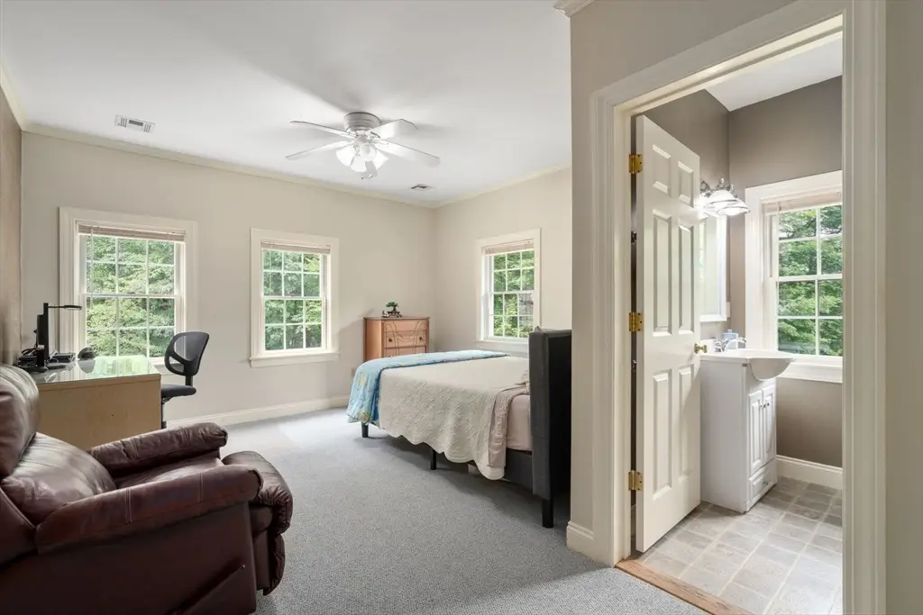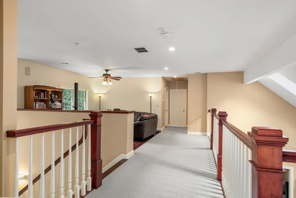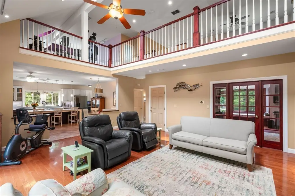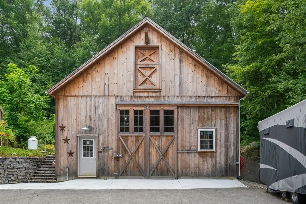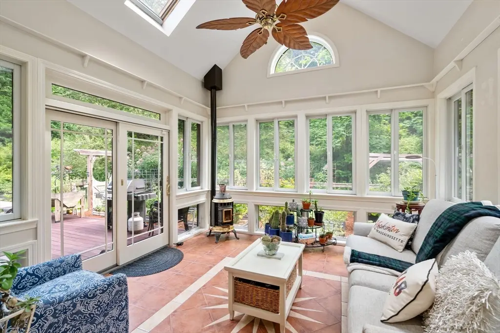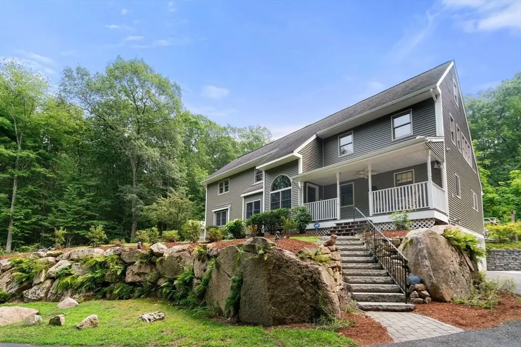 Tucked away in a stunning natural setting, steps from trails & Hopkinton State Park, this beautiful sun-splashed home impresses with thoughtful design throughout. The gorgeous chef's kitchen with a fabulous walk-in pantry flows seamlessly into a cathedral-ceiling family room and a spectacular four-season sunroom filled with natural light & picturesque views. Incredible office with built-ins provides the perfect work-from-home setup. The first-floor primary suite has soaring ceilings, walk-in closets, and an enchanting spa-like bath with radiant heat. Upstairs, you'll find a two spacious bedrooms, one with an ensuite bath. A large bonus room, a den/potential fourth bedroom and an additional bath complete this level. This property is an outdoor lover's dream with impressive gardens, mature plantings, chicken coop and a spectacular four-car heated barn with 14-ft ceilings and loft. Enjoy ultimate privacy, yet be just a short walk to the South Boro train, a commuter's dream. Don't miss this one-of-a-kind opportunity!