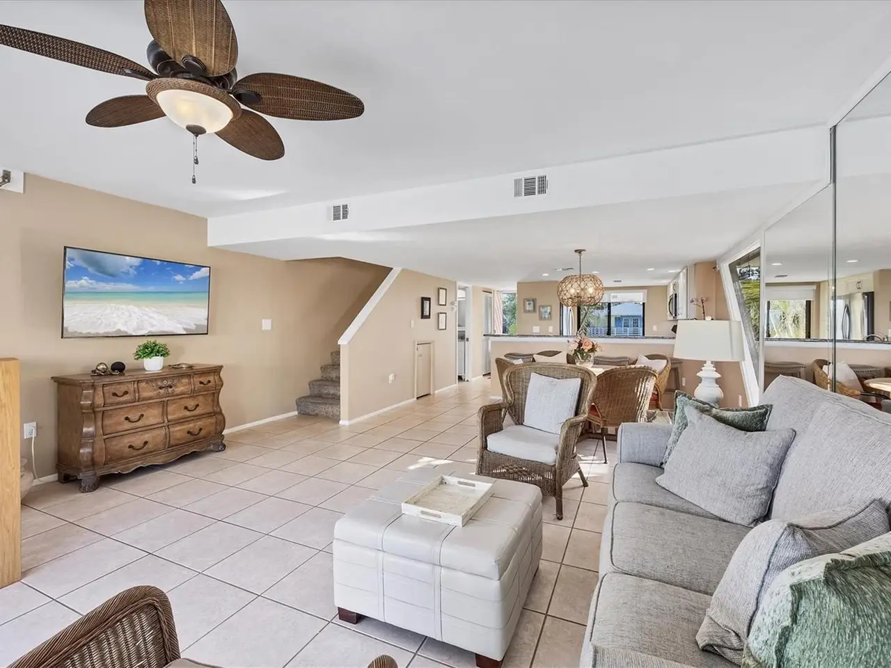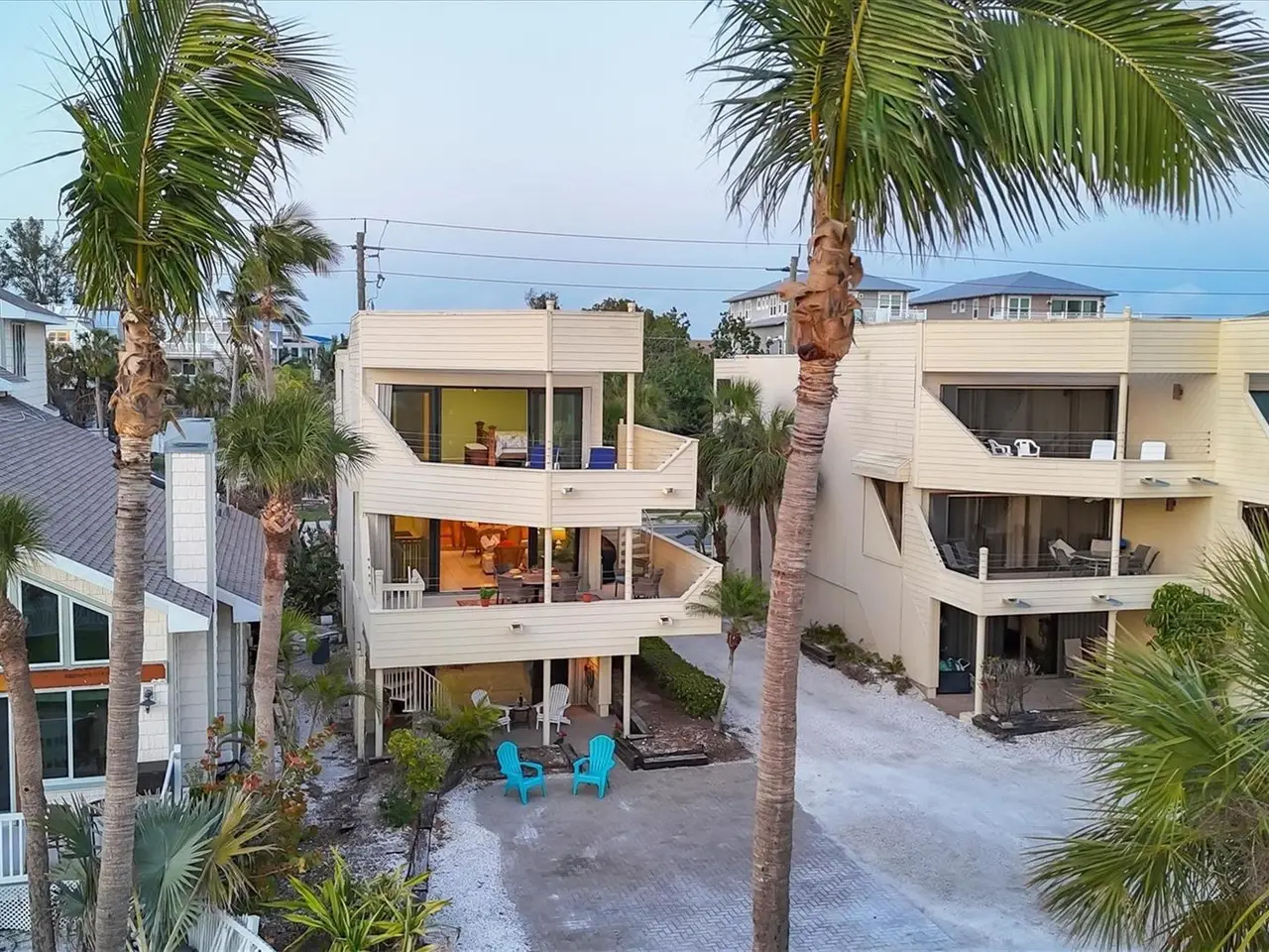 A beachfront home for the price of a condo. 540 Beach Road on Siesta Key is a three-story standalone Gulf front residence with private beach access and breathtaking views directly on famed Siesta Key Beach. Privacy and exclusivity await at Tiffany Sands, an enclave of only 9 units. With expansive Gulf views from the moment you open the front door, 540 Beach Road is a detached single-family condo overlooking the sandy shores of the #1 beach in America. This meticulously maintained 2 bedroom, 3 ½ bath home features a bonus cabana room and one-car attached garage. With pride of ownership and nearly 1,900 sq ft under air, this maintenance-free standalone villa features private beach access. Every floor boasts floor-to-ceiling sliding glass doors and expansive terraces with stunning unobstructed views of the shimmering shores of the Gulf. With just over 3,000 sq ft total combined living space, the light-filled, open-plan main level consists of a recently remodeled kitchen, half bath, living room and dining area. 16-foot newly installed sliding glass doors provide access to the main covered deck, a great spot for your morning coffee and perfect for entertaining or relaxing as you revel at the majestic views of the beach and stunning sunsets. On the upper floor you will find 2 large en-suite bedrooms with private, newly updated full baths. The main suite has spectacular views with floor-to-ceiling sliding glass doors that open to a private deck, the perfect spot for sunning or reading a book. Main suite has 3 large closets and an oversized bathroom with double vanities and skylights. The 2nd bedroom features a cozy deck with sliders and a private bath with skylight. On the upper floor you will find a large laundry closet with new washer & dryer. The downstairs cabana room is complete with full bath and storage, floor-to-ceiling sliders and a covered patio with direct access to the beach. 540 Beach comes with private parking for 5 cars and additional guest parking. 540 Beach is situated precisely one-half mile to the heart of Siesta Key Village and a half mile to world renowned Siesta Key Public Beach. You have the option to make this your forever home or a lucrative vacation rental, as the present owners enjoy months of using the residence for their personal pleasure and rent it for a portion of the year, garnering substantial rental income. Home is equipped with 2 A/C units- one of which is BRAND NEW, new sliders on the upper levels, new hot water heater and storm shutters. 15+ years remain on the roof warranty. A one-of-a-kind property, 540 Beach is a private beachfront residence that feels like a home but is priced like a condo. Available turnkey furnished.