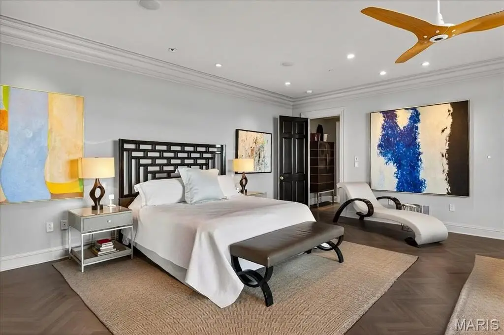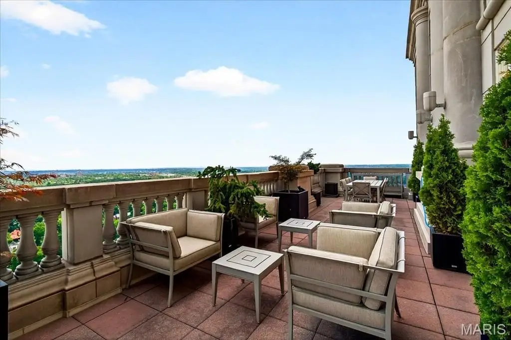 Welcome to the crown jewel of luxury living: this full-floor penthouse features 2800 square feet of outdoor living space across four expansive terraces with panoramic views in every direction. From your private elevator foyer, enter a residence of timeless architecture and refined design, showcasing exceptional millwork and custom walnut and ebony inlaid chevron floors. The Venetian-plastered living room serves as the elegant centerpiece, flanked by a formal dining room and a handsomely paneled library. Designed for entertaining and daily living, the kitchen boasts bold black-and-white marble floors, Wolf and Sub-Zero appliances, a large center island, and flows into the breakfast and family rooms. A lacquered Butler’s Pantry and Bar provides added serving space, while the 500-bottle wine room is ideal for collectors and hosts alike. The primary suite offers spectacular northern views, a sitting area, an office, and three oversized walk-in closets. The ensuite bath features dual water closets, a soaking tub, and a walk-in shower, creating a tranquil escape. Two additional bedroom suites provide comfort for family or guests, while a large laundry room with custom cabinetry and a full bath (formerly a fourth bedroom suite) adds flexibility. This extraordinary lifestyle includes 24-hour concierge service, valet parking, pool, fitness center, dog park, and four parking spaces, with Clayton’s finest eateries and boutiques just moments from your doorstep.