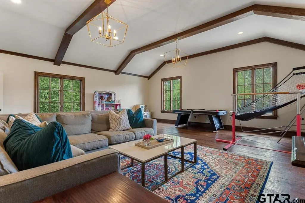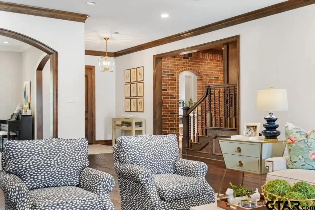 Welcome to 2202 Woodlands of Hollytree West, where timeless elegance meets modern luxury. This meticulously maintained and thoughtfully designed custom-built 4-bedroom, 3.5-bathroom residence offers an unparalleled living experience. Upon entry, the elegant hand-scraped wood floors flow into a bright formal dining room, perfect for gathering. The generous-sized living room is inviting with natural light highlighting the beautiful built-ins and overlooking the pristine backyard. The kitchen exudes charm while being highly functional. Light through the leaded glass window enhances the gorgeous coffered ceiling with hand-hewn beams, Taj Mahal countertops, butcher block island and brick floors. Wolf and Sub-Zero appliances accompany. Enjoy meals and drinks at the bar or breakfast area. Nearby, freshly painted laundry room and office. Down stairs is also host to a half bath and the master bedroom. The vaulted ceiling will catch your eye until you see the completely remodeled spa-like bathroom. The walk-in closet offers built-ins and pull-down extensions for efficiency and convenience. Hardwood oak stairs and barely twist spindles lead you upstairs to 3 bedrooms and 2 bathrooms and an oversized game room. You'll find fresh paint and wallpaper, new countertops and flooring throughout. You will love the abundant, climate-controlled storage too! The house sits on a steel-reinforced slab with 65-drilled piers, 30 seer insulation, 2 new tankless water heaters and 3 easily accessible HVAC units. Solid-core doors with Baldwin hardware, wood-clad energy-efficient windows and copper flashing and gutters provide beauty and function. The new gated driveway, privacy fencing and landscaping enhance the recently constructed pool, hot tub and patio that create an ideal backyard retreat. There is a mosquito misting system too! This exceptional property offers a rare combination of luxury, comfort, and thoughtful design. Schedule your private showing today.