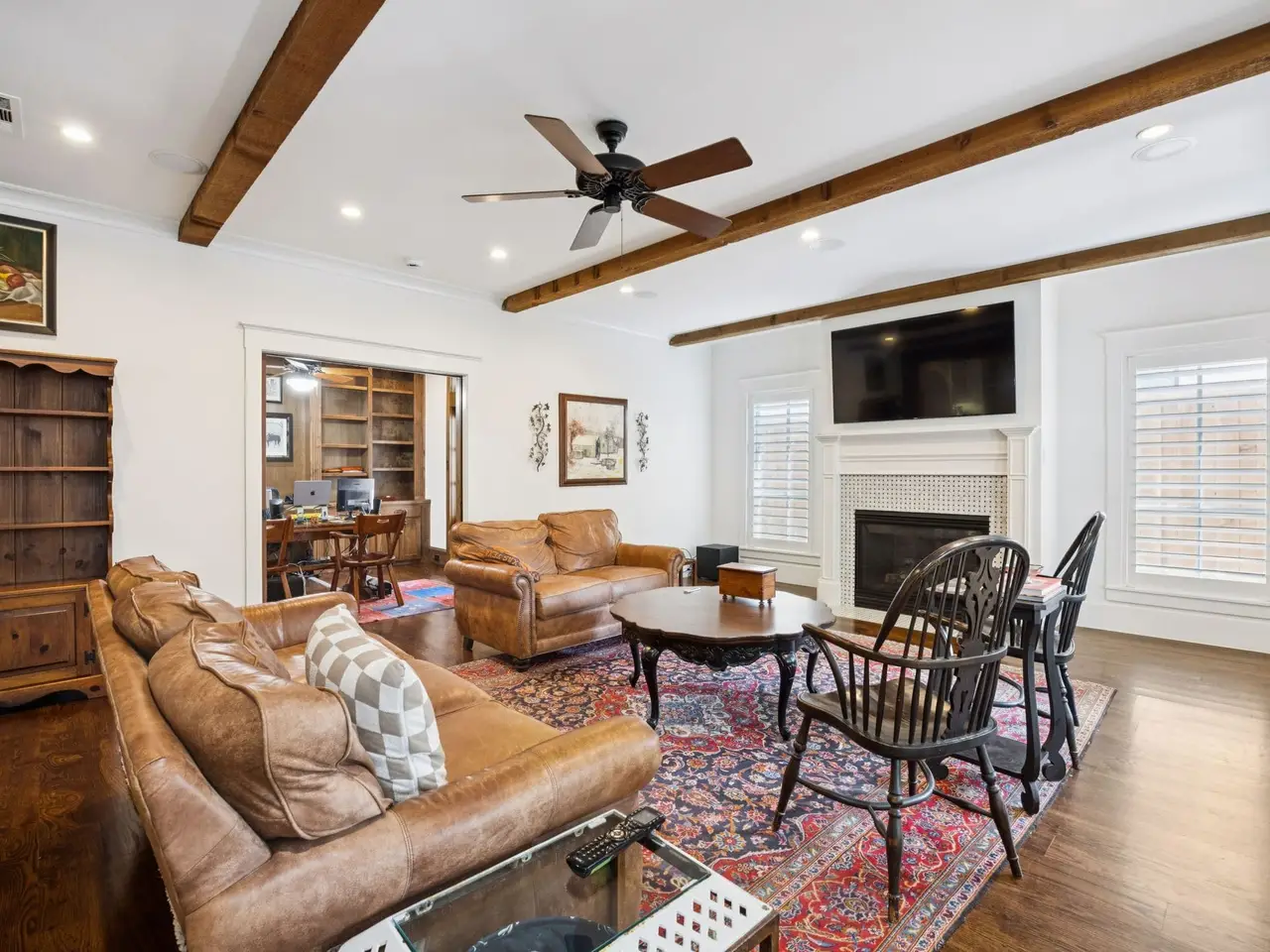 This custom architectural beauty was designed by award-winning architect Eddie Maestri in 2015. This stunning custom home blends luxurious living with thoughtful functionality. From the moment you enter, youre welcomed by hand-scraped wood floors and a cozy fireplace in the main living roomsetting the tone for the warmth and elegance found throughout the home. This four bedroom, four and a half bath features designer finishes throughout. The Chefs Kitchen is an entertainers Dream. It's many features include quartz countertops, a 6 burner DACOR range with Dual Oven, two Miele dishwashers, a Sub-Zero refrigerator and a 150 bottle Sub Zero wine refrigerator. This space flows seamlessly into the inviting family room with rough-hewn beams, built-in surround sound with subwoofer, a gas fireplace, and French doors that lead to the covered back porchperfect for indoor-outdoor entertaining. This home features 4 spacious bedrooms and four and a half beautifully appointed finishes - ideal for guests or multi-generational living. You have your own private retreat in the primary with vaulted ceilings, a luxurious bath with a two way fireplace and oversized shower. A dream walk-in closet featuring an island, makeup mirror and ample storage. An oversized laundry room has custom cabinetry, built-in desk, sink and a floored walk-in attic.Other features include a full house generator, tankless hot water heater, tornado-safe room rated to F-5 This one of a kind home combines elegance, and comfort in one of Dallas most desirable neighborhoods. Nearby shopping and restaurants at NorthPark and Preston Center.