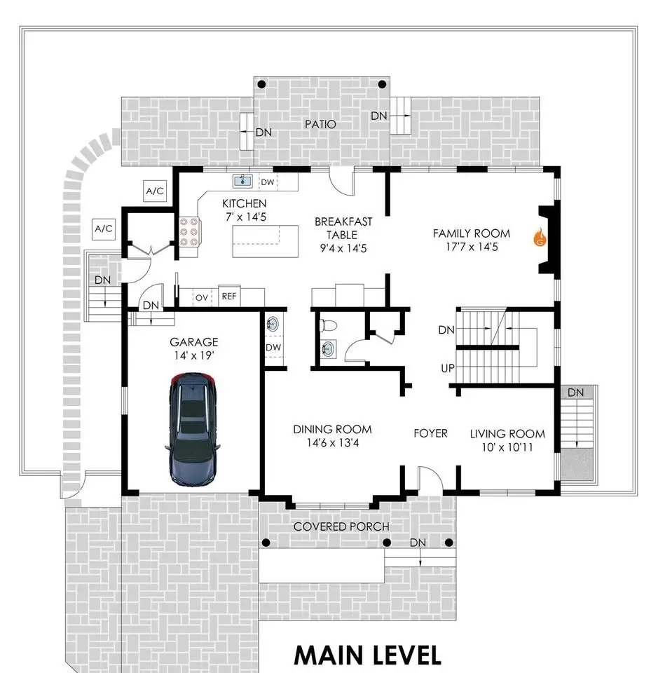 • Cozy gas fireplace in family room