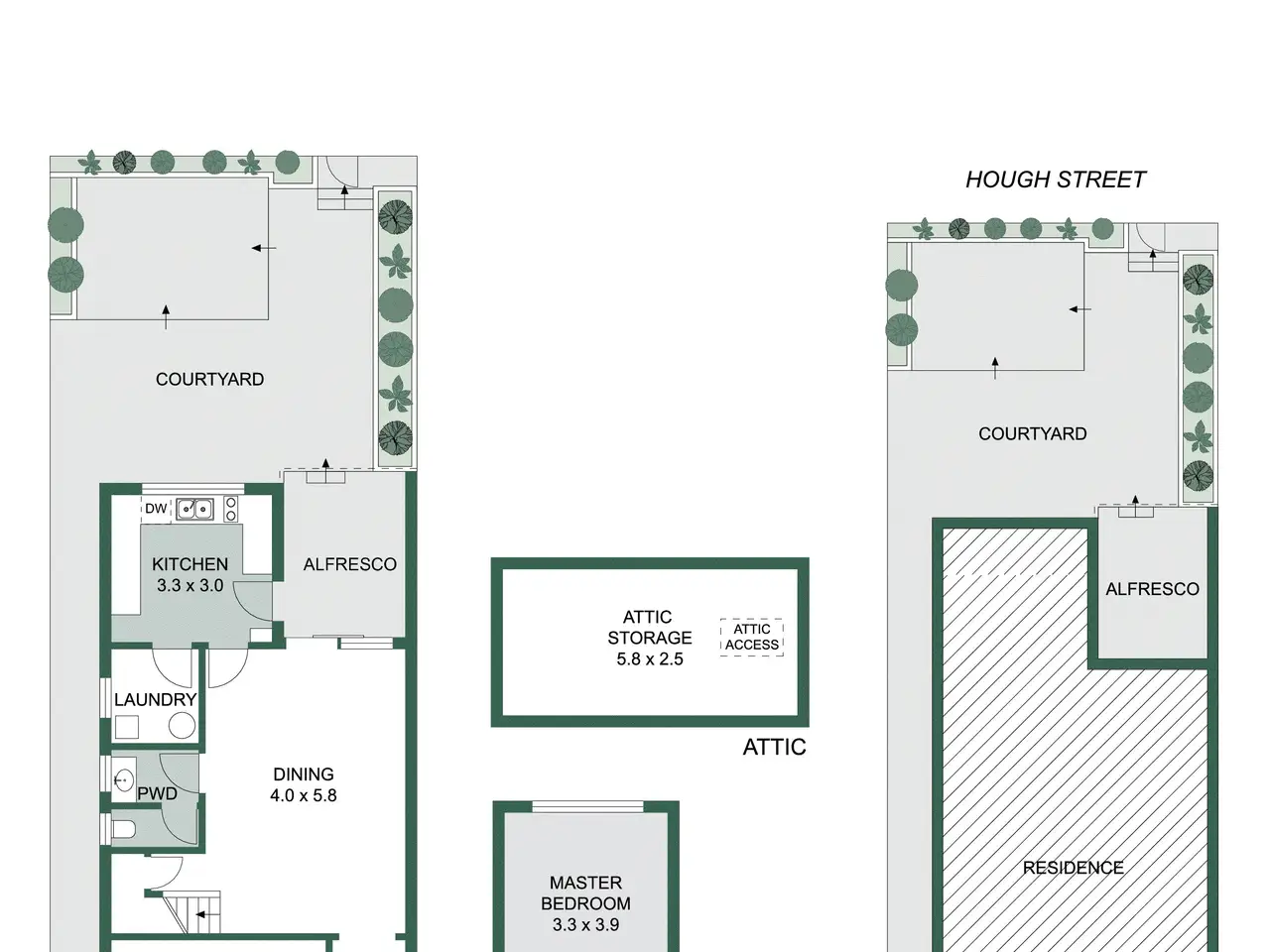 Freestanding to the north and hidden behind a landscaped walled courtyard, this double-brick semi combines space, sunlight and family comfort in a prized parkside pocket. Built in 1978 and offered for the first time, the two-storey home has been newly refreshed for modern living with a family-focused layout and whole-floor living and entertaining flowing to a private courtyard with pedestrian access to Hough Street and the Mill Hill precinct. Clean architectural lines and generous proportions deliver an inviting sense of warmth and functionality with four upper-level bedrooms including two opening to a balcony, plus two new designer bathrooms, a powder room and invaluable garaging. On one of Bondi Junction's top streets in the catchment for Woollahra Public School, this is the best of parkside living and urban convenience with Centennial Park Cafe at one end and Oxford Street's retail hub at the other. • Wide frontage and a solid double-brick • 4 double bedrooms with built-in robes on the upper level • 2 open to a balcony, the main with a stylish designer ensuite • Living with French door to a front verandah, reverse air • Huge dining/2nd living opens to a covered dining terrace • Bright modern kitchen and a private entertainer's courtyard • Stylish family bathroom, powder room, internal laundry • Attic storage with pull down staircase • Green-roofed garaging, Woollahra Public School catchment • 300m to Centennial Park's sports facilities and nature trails • 850m to Bondi Junction station, mins to the city and beaches