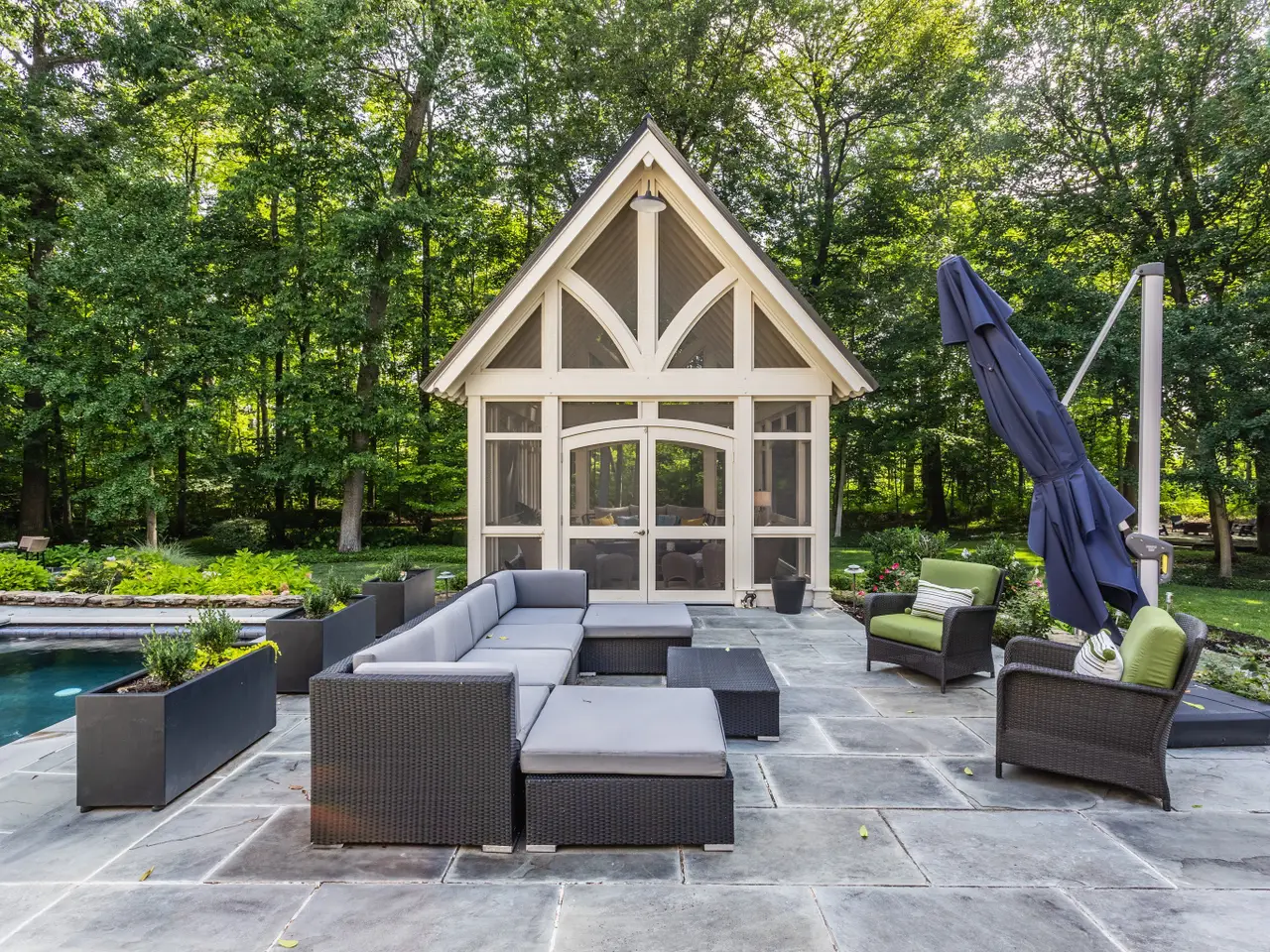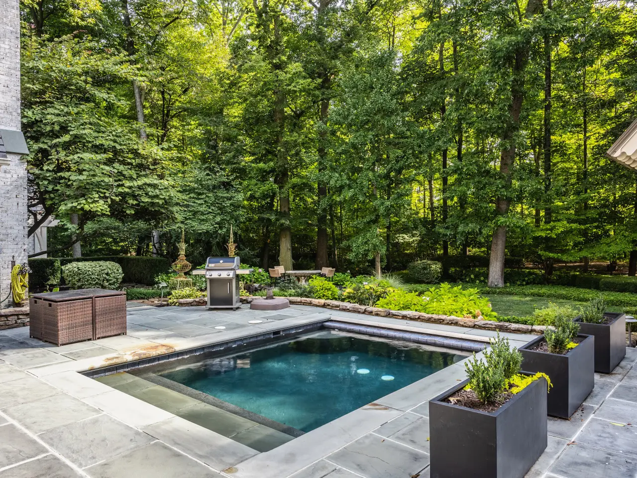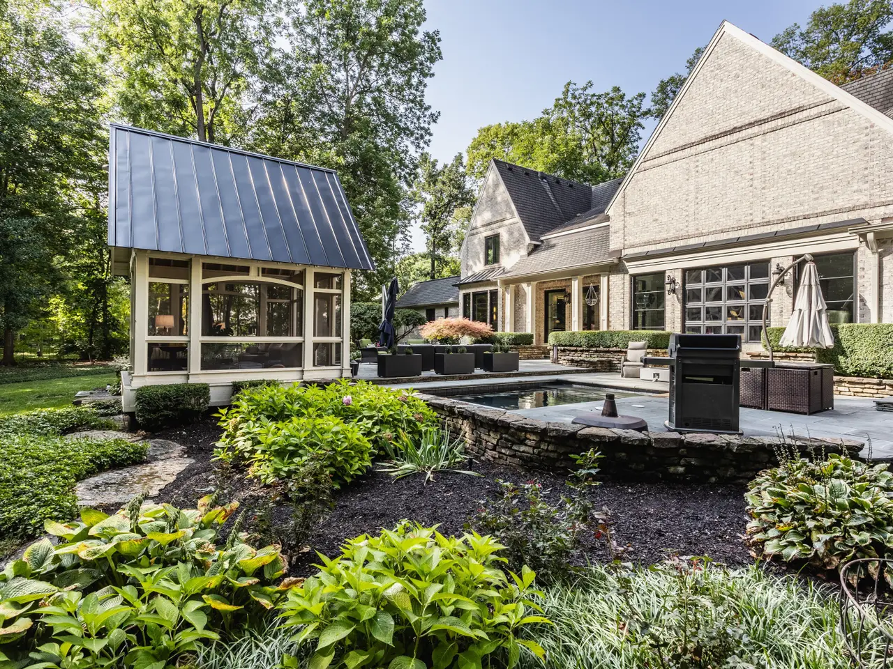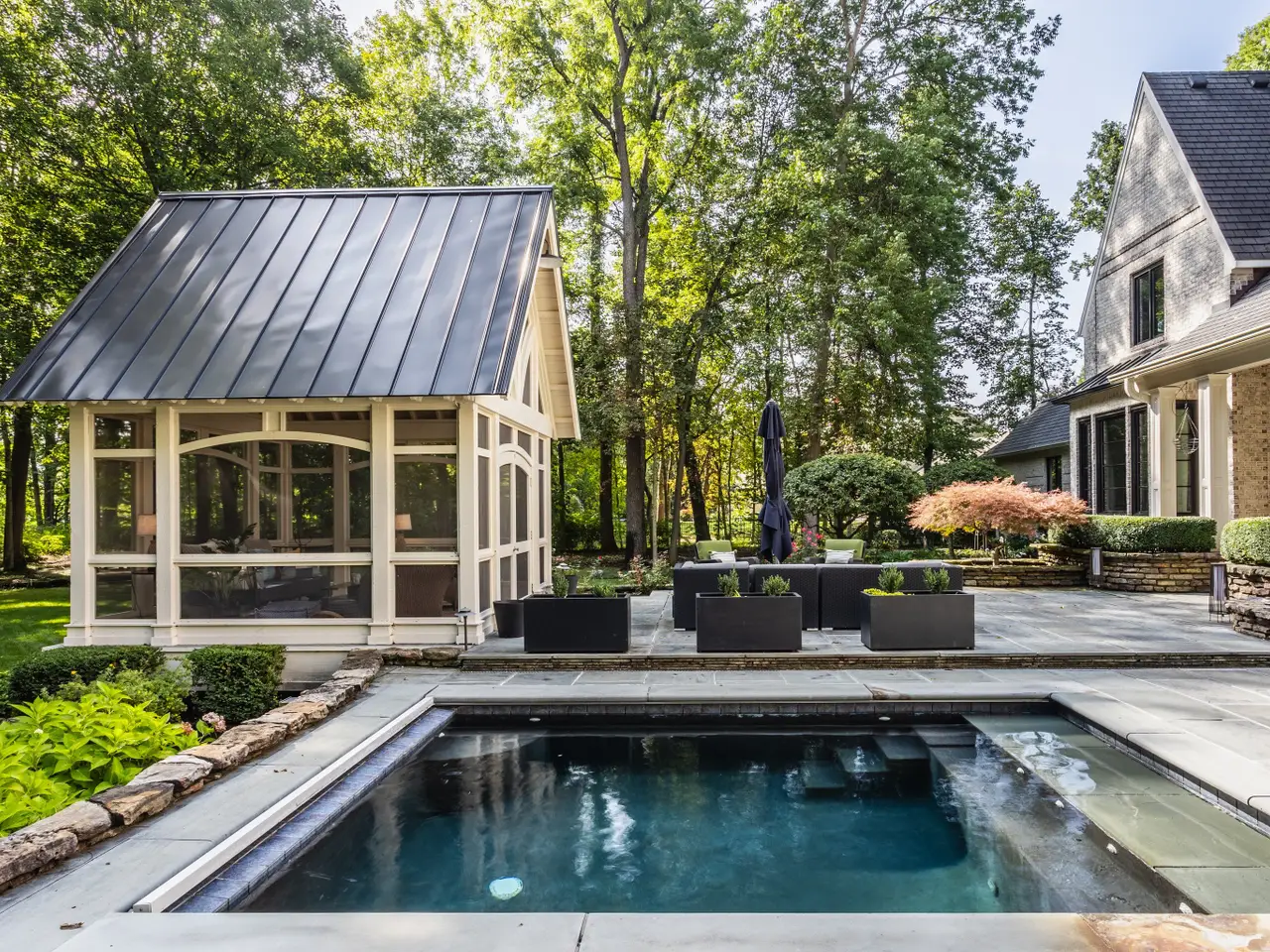Set on 1.3 acres of meticulously landscaped, park-like grounds, this distinguished estate is the epitome of elegance, comfort, and resort-style living. The outdoor sanctuary beckons with a sparkling plunge pool, a charming gazebo, and a fireside lounge, perfect for al fresco dining and refined entertaining. Inside, a dramatic two-story foyer sets the stage for an open, light-filled floor plan. The formal dining room dazzles with a barrel-vaulted ceiling and soaring windows that frame serene views of the outdoor living space. The chef's kitchen is a masterpiece of design and function, showcasing dual islands, a Wolf oven, Sub-Zero refrigeration, a 6-burner gas cooktop with griddle, and a sunlit breakfast nook. The great room impresses with wall-to-wall windows and a striking copper fireplace, while the vaulted living room offers its own fireplace and seamless access to the backyard. The main-floor primary suite is a private sanctuary, capturing sweeping views alongside custom built-ins and dual spa-inspired baths, one with a soaking tub beneath a skylight, the other with a custom rain shower and tailored cabinetry, each with its own walk-in closet. Upstairs, four spacious bedrooms and three full baths provide luxurious accommodations. The finished lower level is crafted for leisure and wellness, featuring a family room, recreation space, bonus room, exercise area, spa room, and wet bar. Every detail of this home has been thoughtfully curated to deliver an extraordinary lifestyle, offering a flawless blend of sophistication, functionality, and spaces designed for both grand entertaining and everyday living. Also available for rent: $8,000/month.