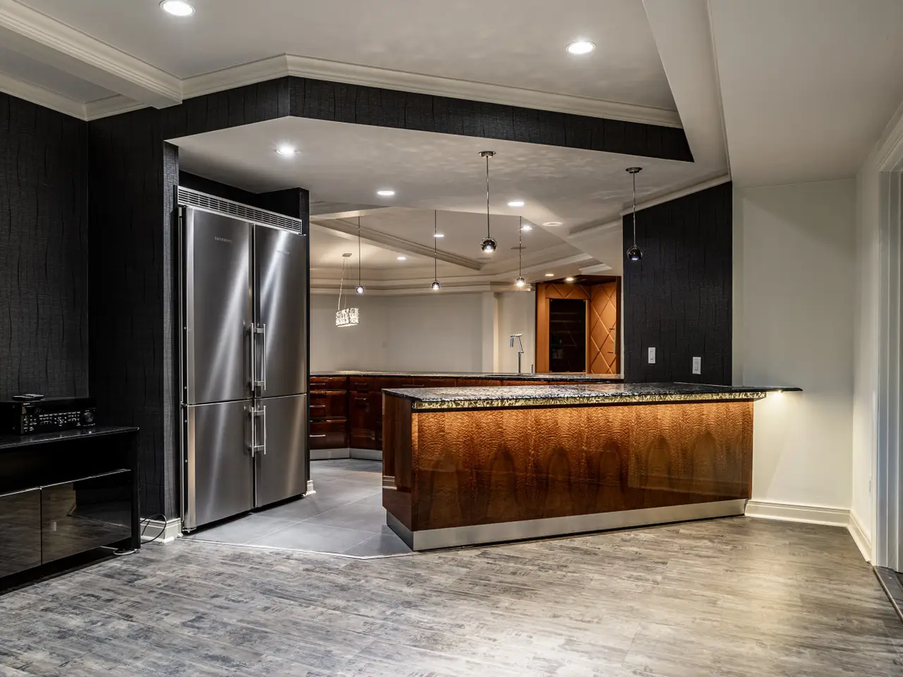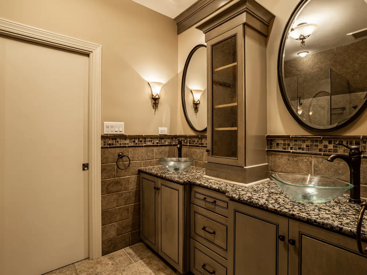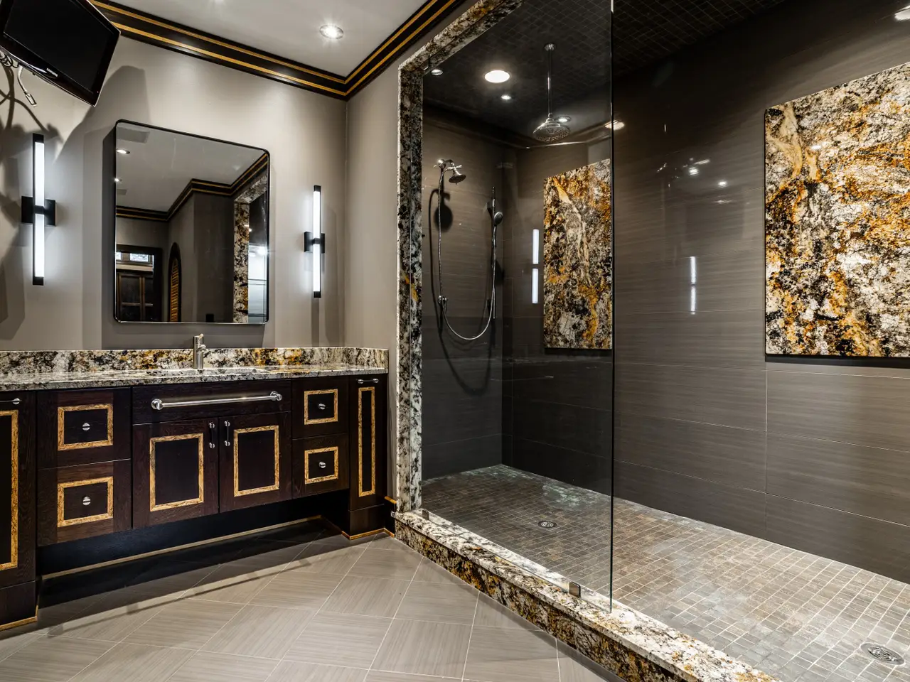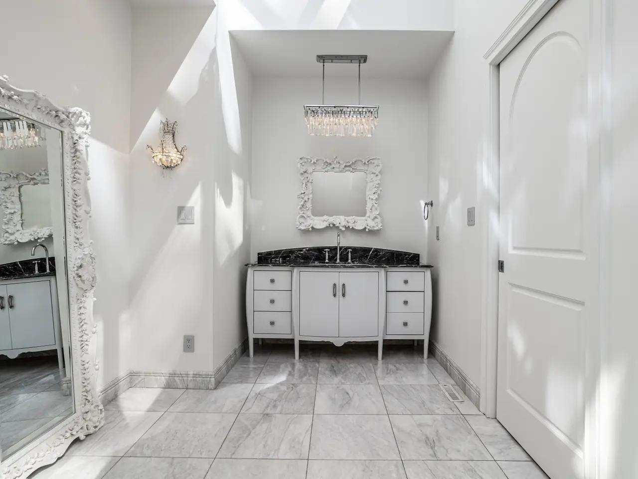 Set on 1.3 acres of meticulously landscaped, park-like grounds, this distinguished estate is the epitome of elegance, comfort, and resort-style living. The outdoor sanctuary beckons with a sparkling plunge pool, a charming gazebo, and a fireside lounge, perfect for al fresco dining and refined entertaining. Inside, a dramatic two-story foyer sets the stage for an open, light-filled floor plan. The formal dining room dazzles with a barrel-vaulted ceiling and soaring windows that frame serene views of the outdoor living space. The chef's kitchen is a masterpiece of design and function, showcasing dual islands, a Wolf oven, Sub-Zero refrigeration, a 6-burner gas cooktop with griddle, and a sunlit breakfast nook. The great room impresses with wall-to-wall windows and a striking copper fireplace, while the vaulted living room offers its own fireplace and seamless access to the backyard. The main-floor primary suite is a private sanctuary, capturing sweeping views alongside custom built-ins and dual spa-inspired baths, one with a soaking tub beneath a skylight, the other with a custom rain shower and tailored cabinetry, each with its own walk-in closet. Upstairs, four spacious bedrooms and three full baths provide luxurious accommodations. The finished lower level is crafted for leisure and wellness, featuring a family room, recreation space, bonus room, exercise area, spa room, and wet bar. Every detail of this home has been thoughtfully curated to deliver an extraordinary lifestyle, offering a flawless blend of sophistication, functionality, and spaces designed for both grand entertaining and everyday living. Also available for rent: $8,000/month.