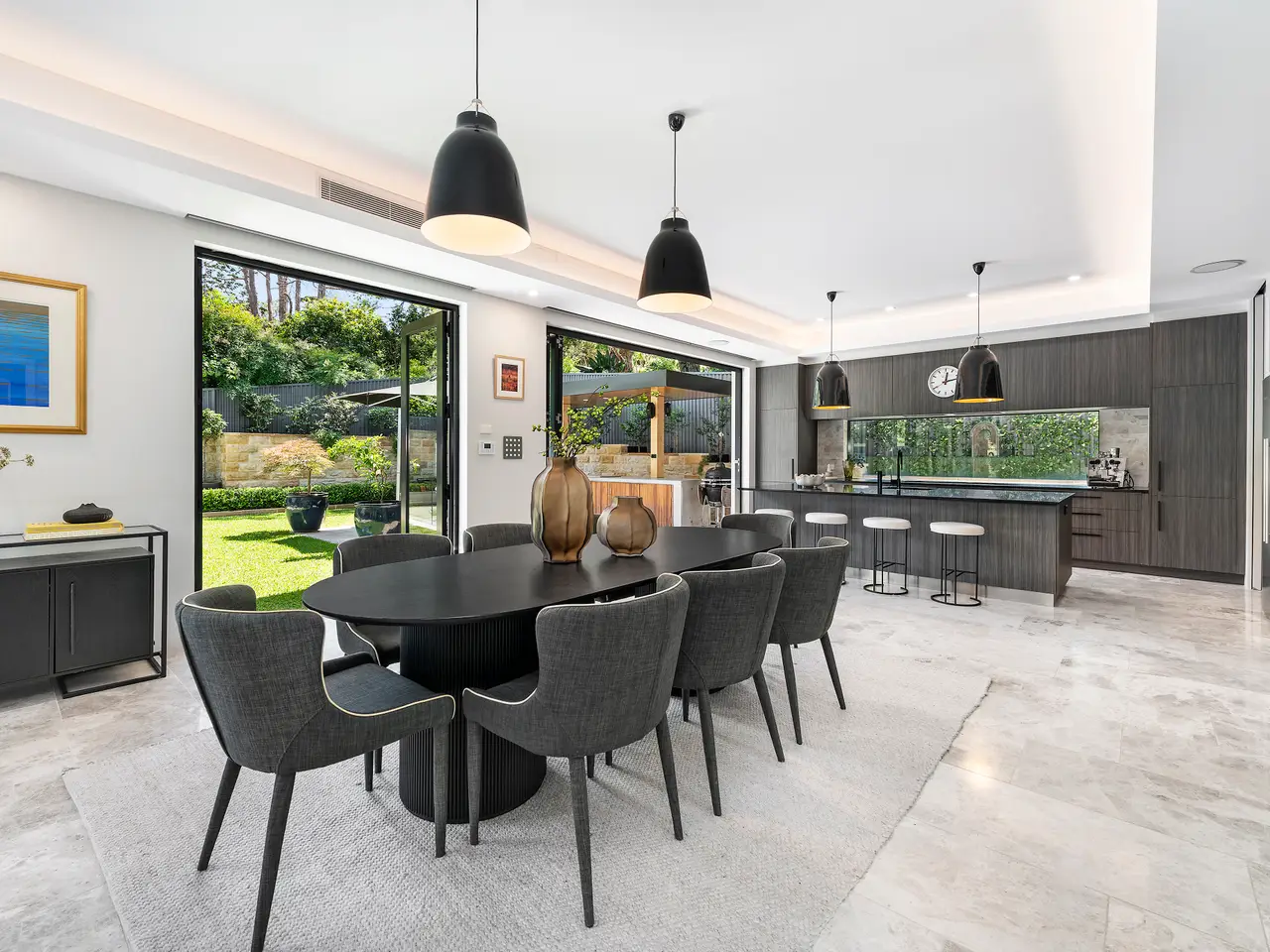 An executive triumph and a unique Greenwich opportunity, this grand offering boasts the sumptuous feel and boldness of vision found in only the very best residences. Embrace its timeless architectural flair and elevate your family lifestyle – with its luxurious comfort and tech features, fabulously flexible interiors and breathtaking outdoor entertaining spaces providing a home whose epic wow factor is equalled only by its premium convenience, approx. 450m from village cafes and the K-2 primary school and approx. 500m walk from Wollstonecraft station. - Proud and prominent approx. 651sqm corner block setting of leafy serenity - Tri-level layout plus rooftop BBQ terrace with scenic water & CBD view - Custom office, Daikin ducted air, 3 phase with garage EV outlet, lift access - Contemporary flow to travertine courtyard and poolside alfresco - Heated saltwater pool and spa, hardwired int/ext speakers with central control - Solid build with concrete walls, floors and Rockcote rendered finish, Hydronic heated floors throughout - Electric Blinds and louvers including rooftop access, fans in each bedroom - Chef's kitchen with two Neff ovens, butler's pantry and Zip tap