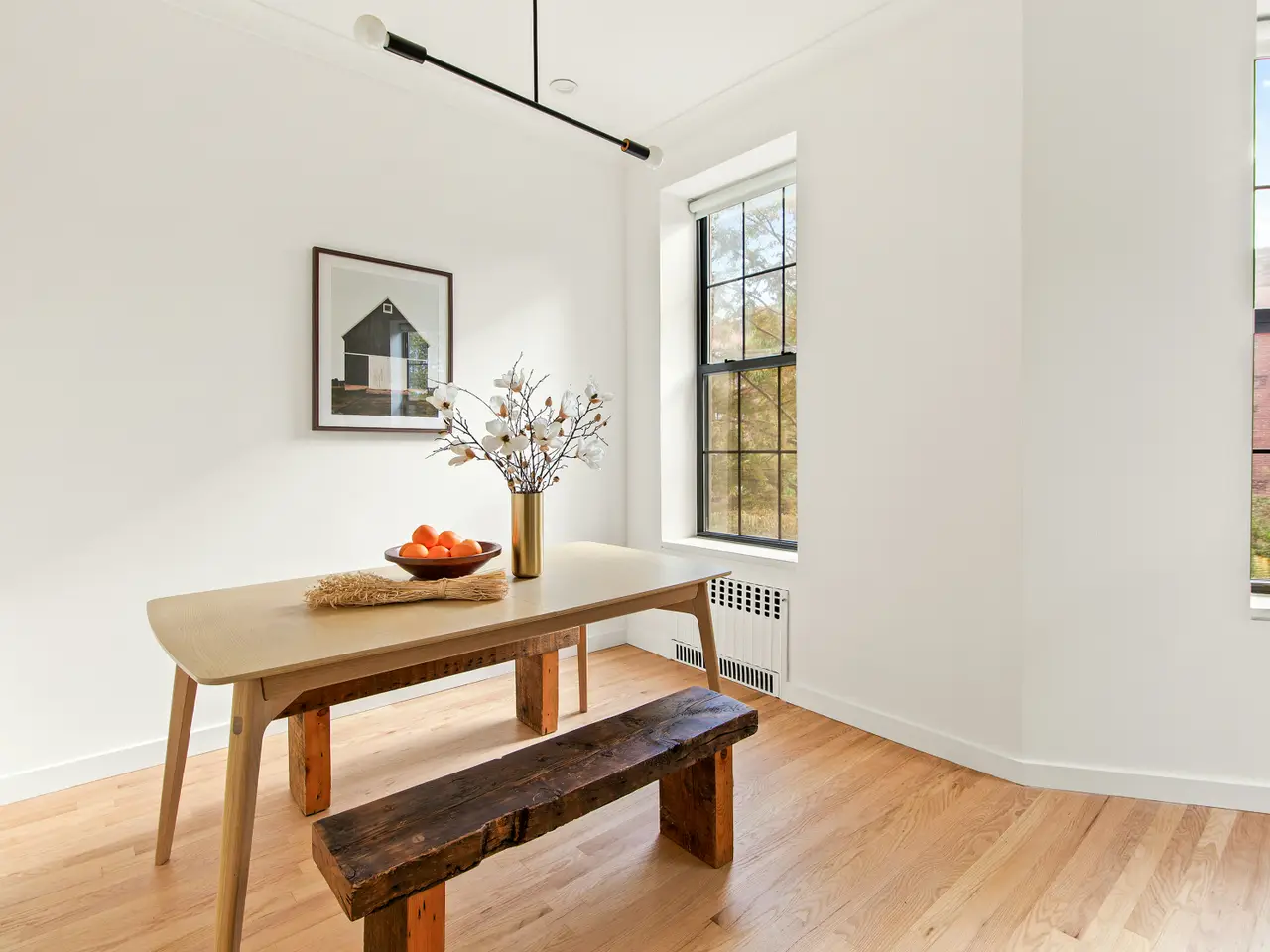 Spread out in this lovely two bedroom, two bath condo off 5th Avenue in prime Park Slope with prewar details and craftsman finishes. Just one flight up to the second floor where, as soon as you enter, you see bright southern light streaming in through mullioned bay windows onto the newly refinished white oak hardwoods. Entertain in the open concept layout showcasing high ceilings, a cozy wood burning fireplace, and a modern kitchen with striking Vermont Soapstone countertops. The separate windowed dining L and sizable office nook are bonus areas that add convenience and truly define this special space. Retreat to the primary bedroom with a beautifully designed ensuite marble bath with a modern shower stall. Exit out onto the bedroom balcony to take in the view of the garden with a cup of coffee. This stunning home is complete with the second bathroom with a bathtub and a second bedroom that easily accommodates guests as well as an additional workspace. Other modern perks include an in-unit washer/dryer, ample closet spaces outfitted by Elfa and a new HVAC split system. 667 Degraw Street, a charming pet friendly boutique 3-unit pre-war condominium, is self-managed and offers spacious apartments within a fiscally responsible community. Enjoy the quintessential Park Slope experience, with seamless access to the lush greenery of Prospect Park and a lively array of dining and shopping options on 5th and 7th Avenues and Union Street. Transit is a cinch with the nearby access to 2/3/4/5/B/Q/R trains and the LIRR at Atlantic station. For health and well-being, there are many local gyms, a lovely community garden just a block away and Union Market and the Food Coop just two short blocks away! This enchanting home is ready to welcome its new owners. Don't miss the chance to make it your own-schedule a showing today and explore all that this exceptional property has to offer in one of Brooklyn's most sought-after neighborhoods!